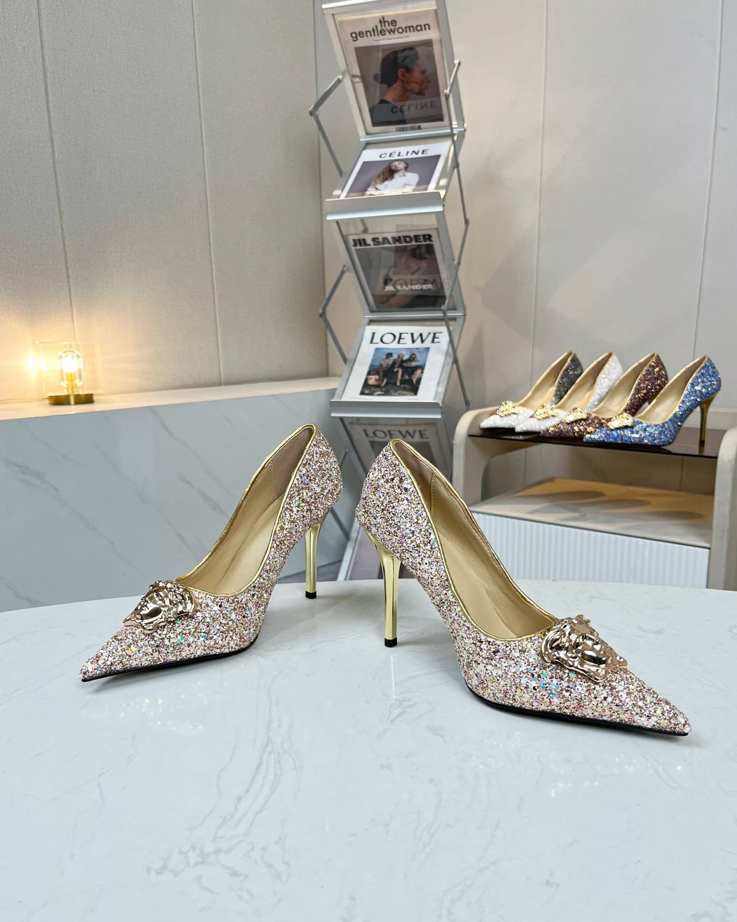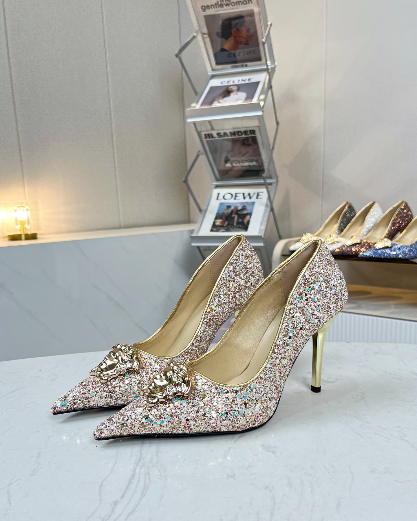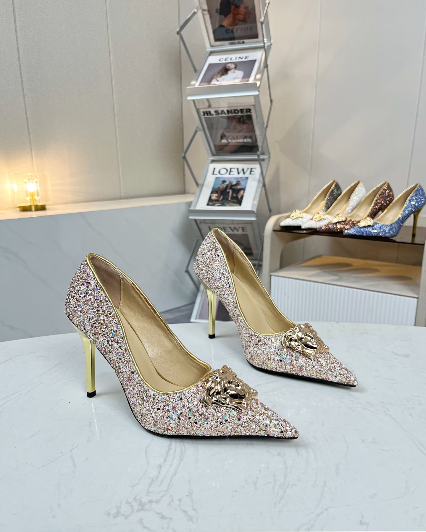 这款鞋子是AAAAA 1:1 质量 (非常棒). 使用了和原版一模一样的材料. 商标部分也保持了和范思哲/Versace一样. 图片拍摄是实物鞋子拍摄, 您所收到的实物保证和我们图片一模一样.