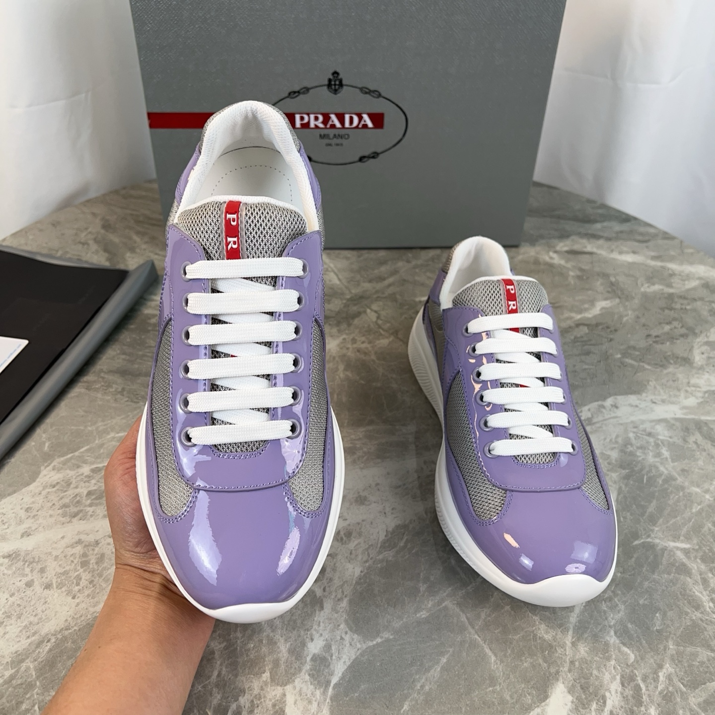 这款鞋子是AAAAA 1:1 质量 (非常棒). 使用了和原版一模一样的材料. 商标部分也保持了和普拉达/Prada一样. 图片拍摄是实物鞋子拍摄, 您所收到的实物保证和我们图片一模一样.