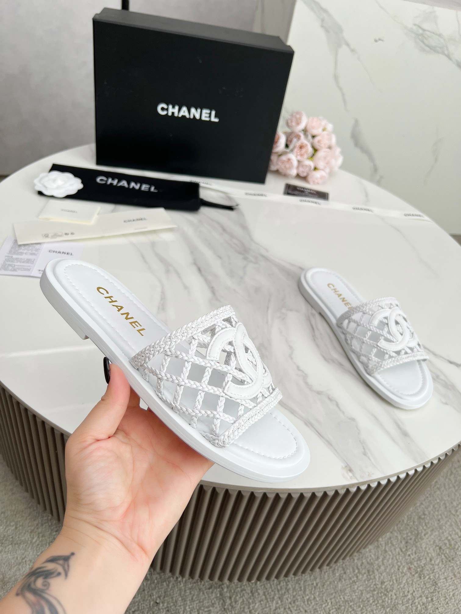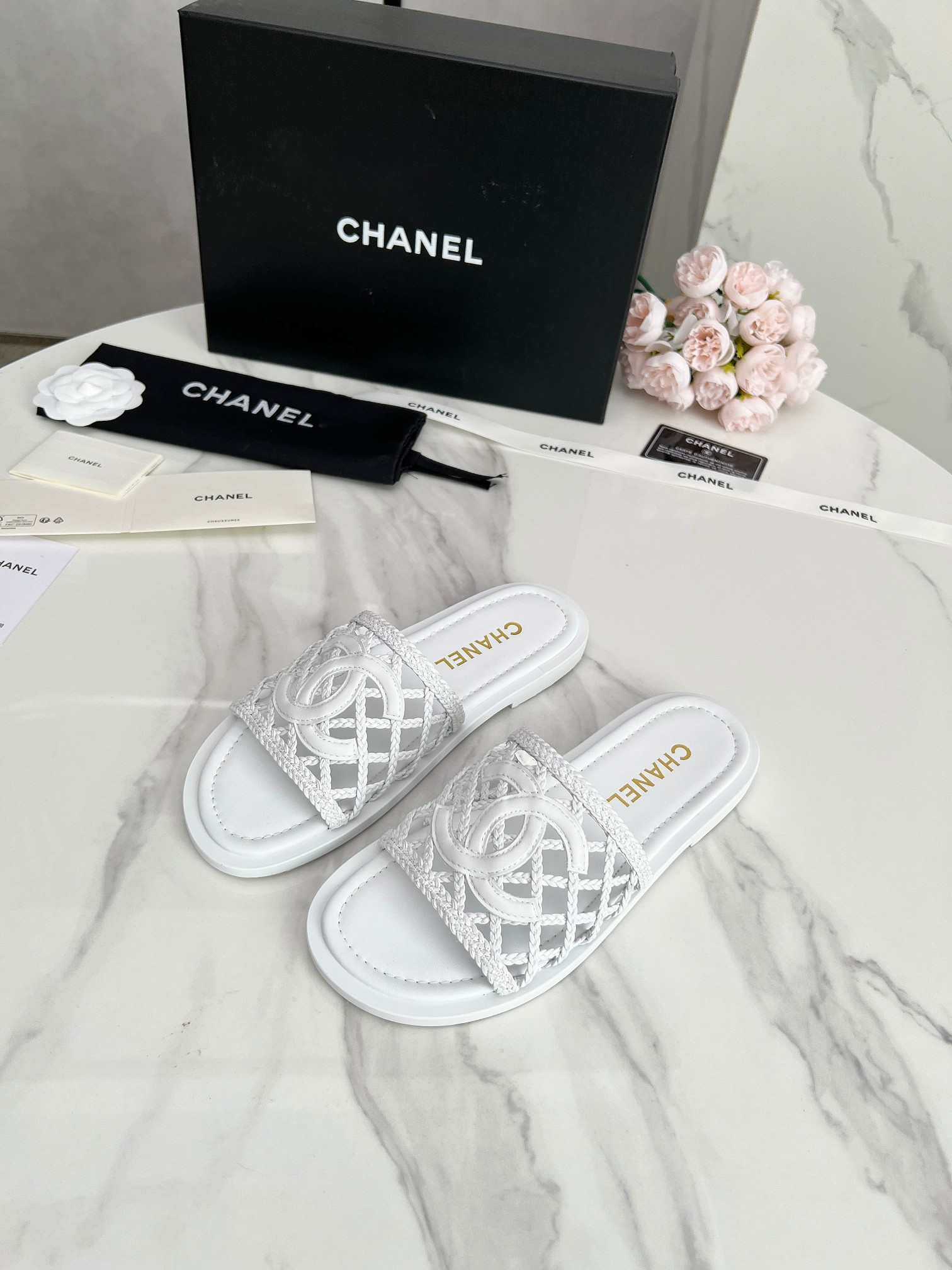 这款鞋子是AAAAA 1:1 质量 (非常棒). 使用了和原版一模一样的材料. 商标部分也保持了和香奈儿/Chanel一样. 图片拍摄是实物鞋子拍摄, 您所收到的实物保证和我们图片一模一样.