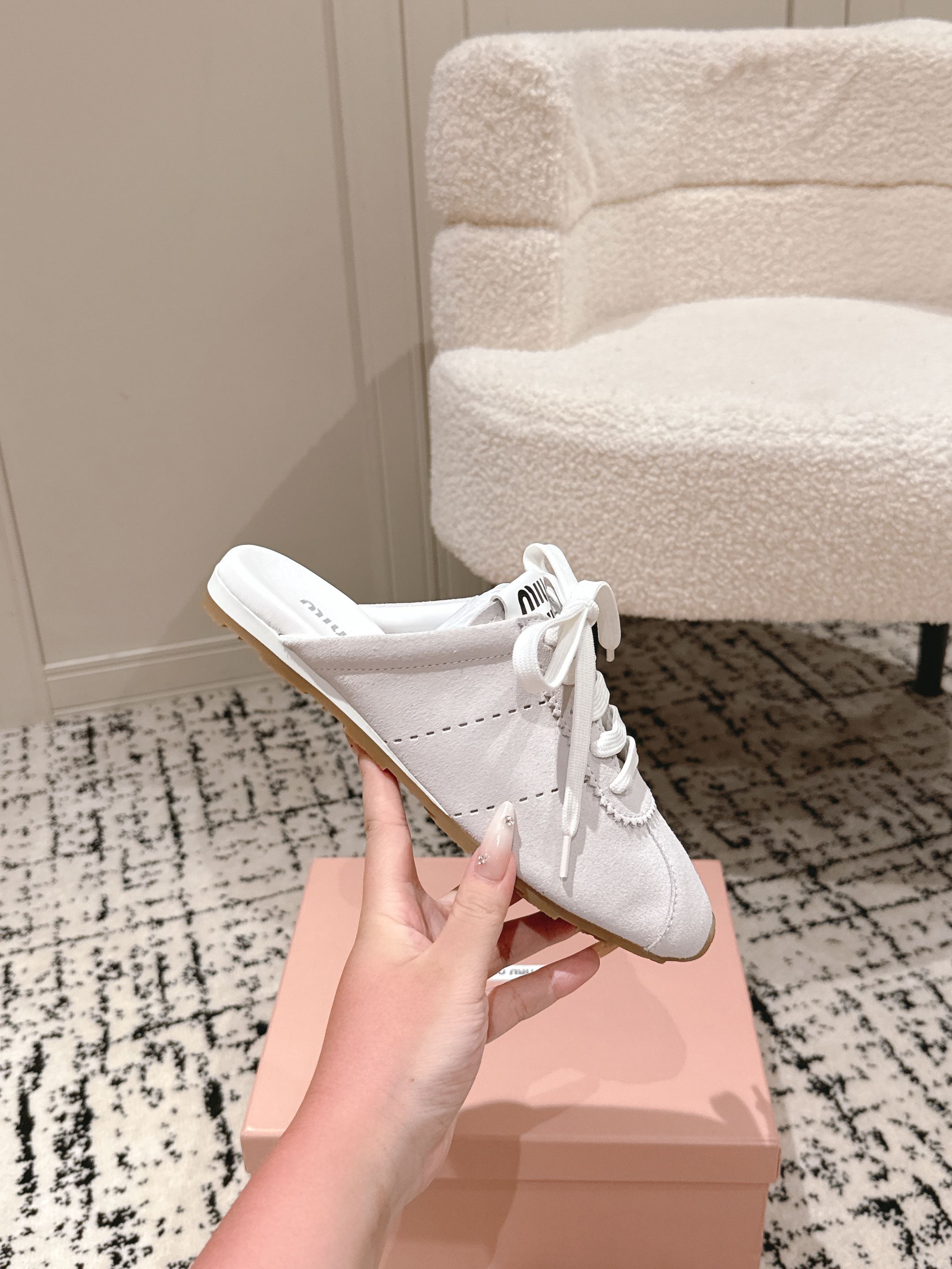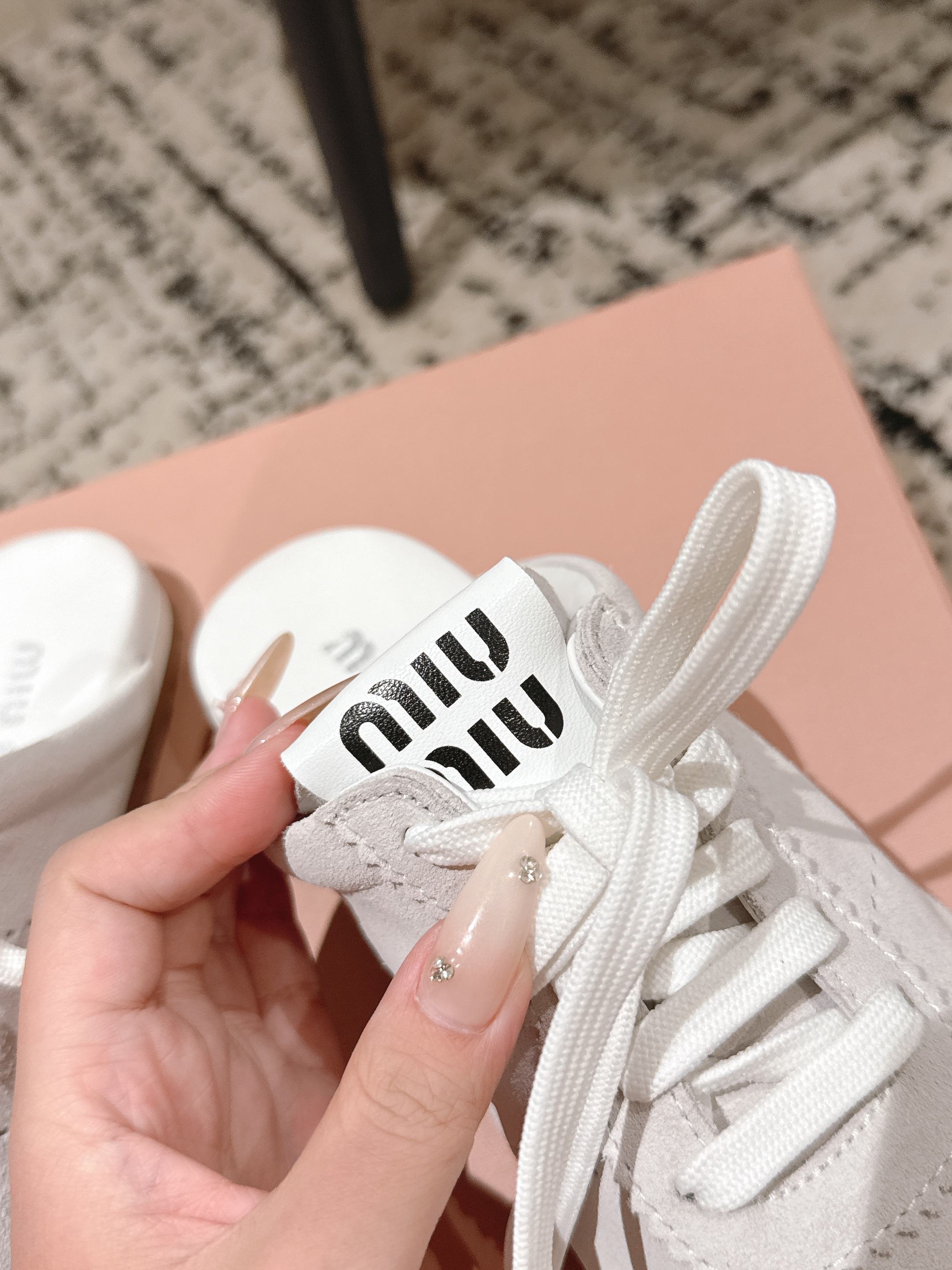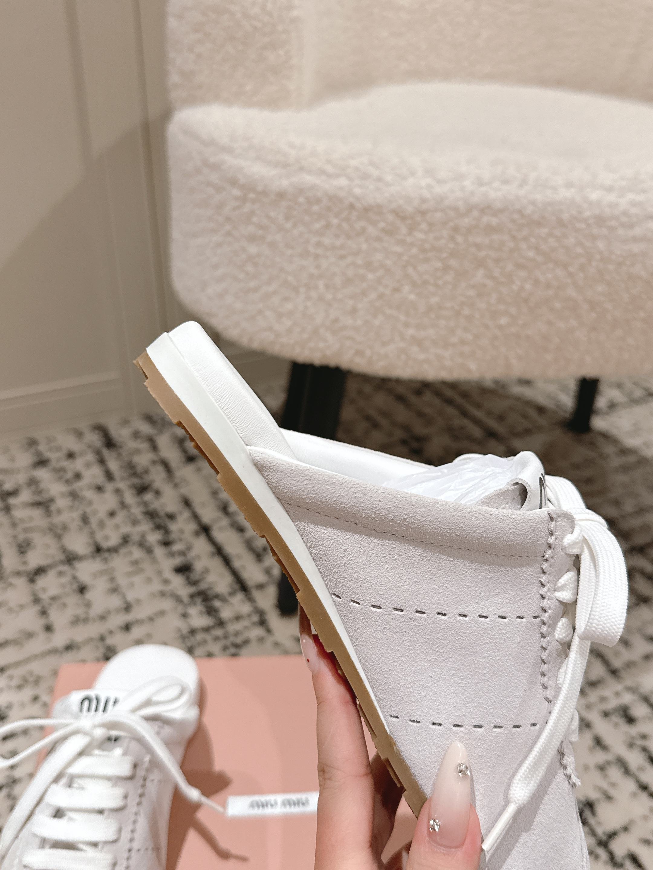 这款鞋子是AAAAA 1:1 质量 (非常棒). 使用了和原版一模一样的材料. 商标部分也保持了和缪缪/Miu Miu一样. 图片拍摄是实物鞋子拍摄, 您所收到的实物保证和我们图片一模一样.