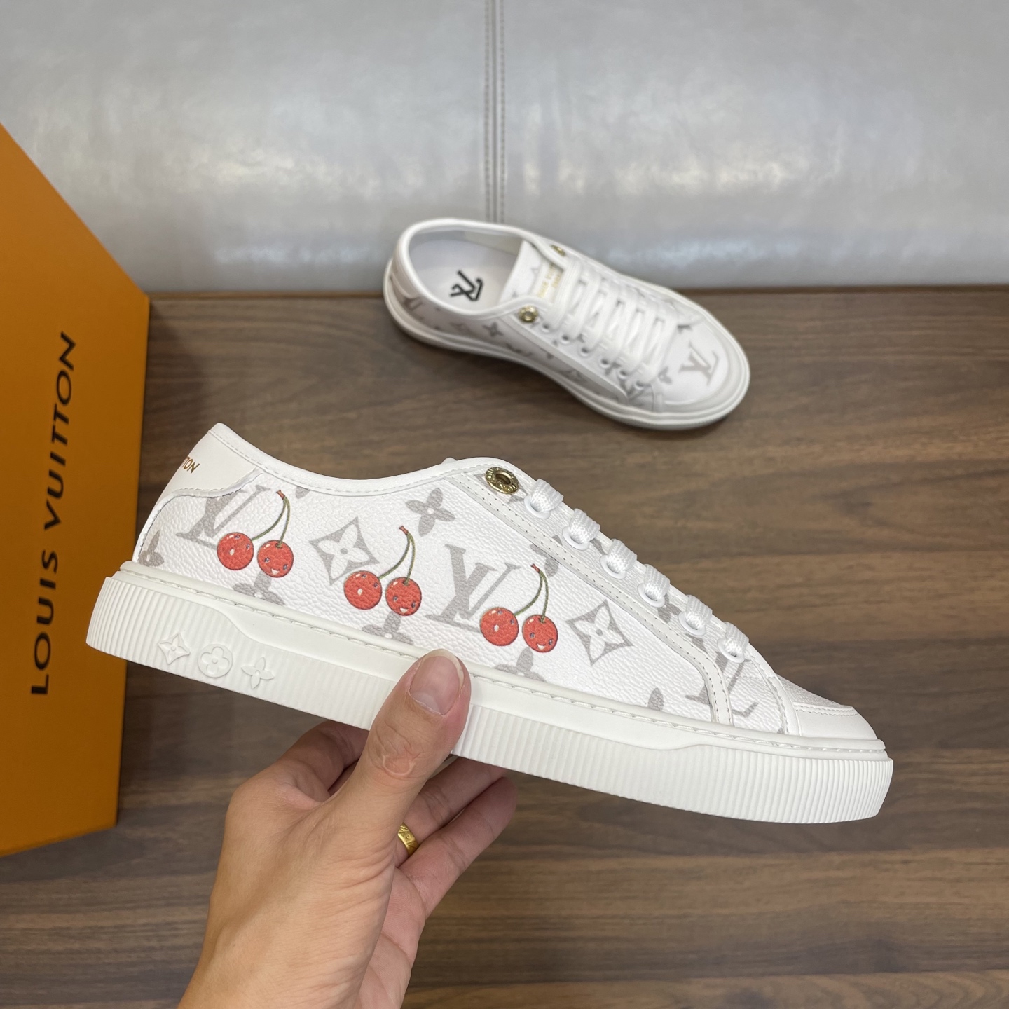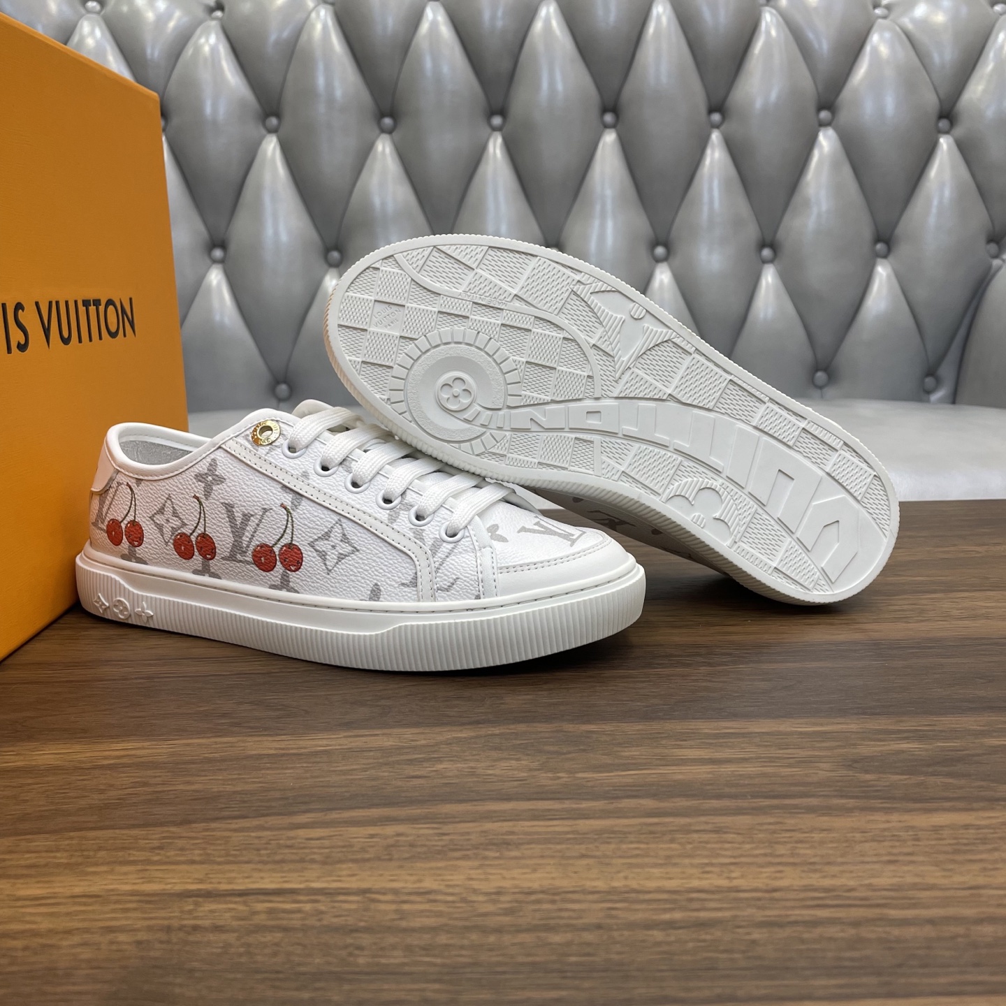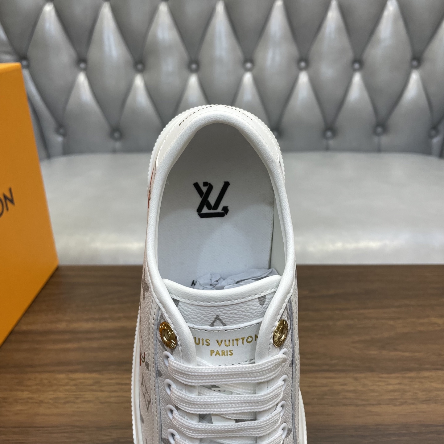 这款鞋子是AAAAA 1:1 质量 (非常棒). 使用了和原版一模一样的材料. 商标部分也保持了和路易威登/Louis Vuitton一样. 图片拍摄是实物鞋子拍摄, 您所收到的实物保证和我们图片一模一样.