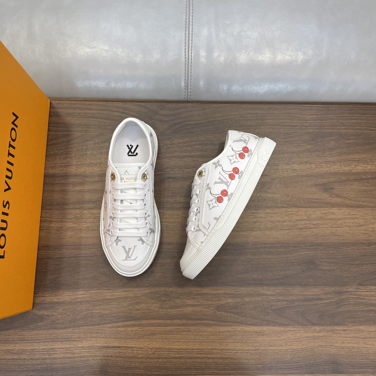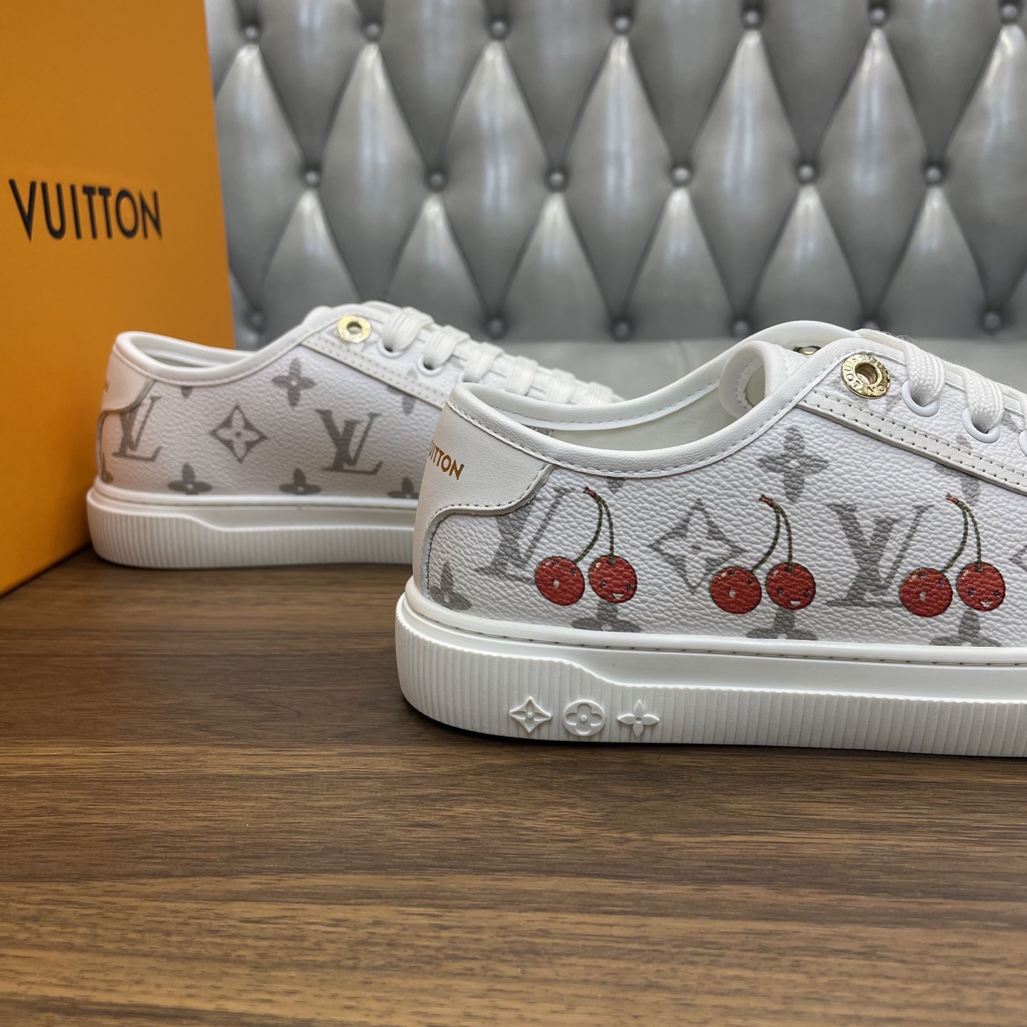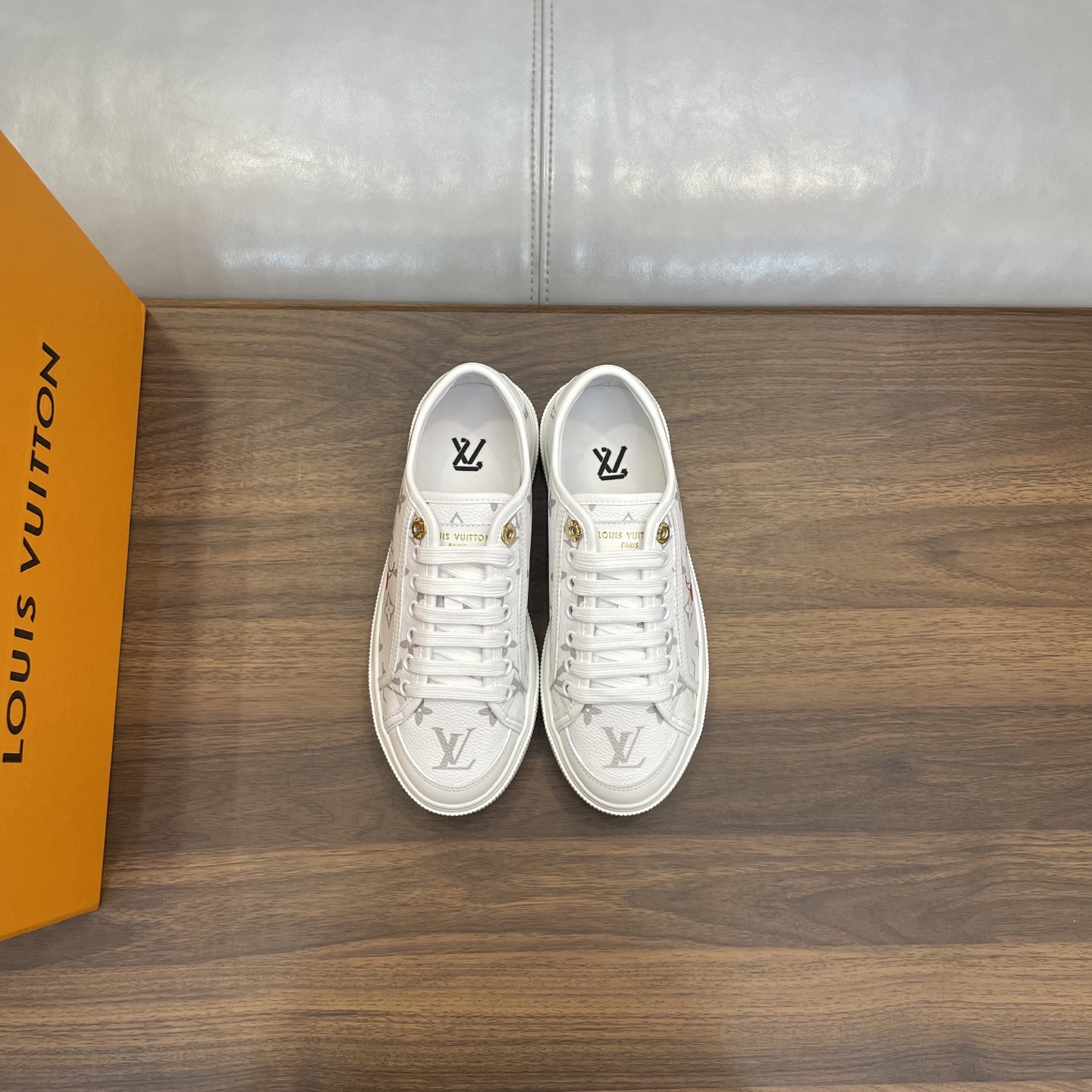 这款鞋子是AAAAA 1:1 质量 (非常棒). 使用了和原版一模一样的材料. 商标部分也保持了和路易威登/Louis Vuitton一样. 图片拍摄是实物鞋子拍摄, 您所收到的实物保证和我们图片一模一样.