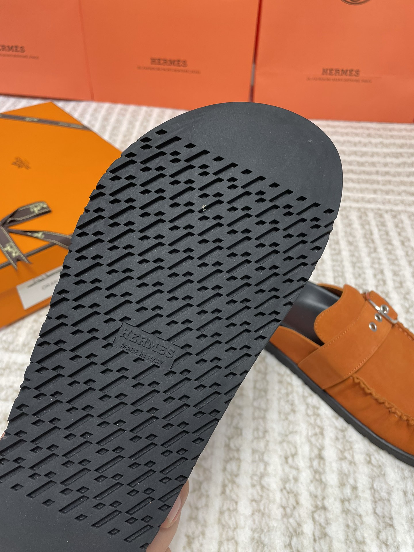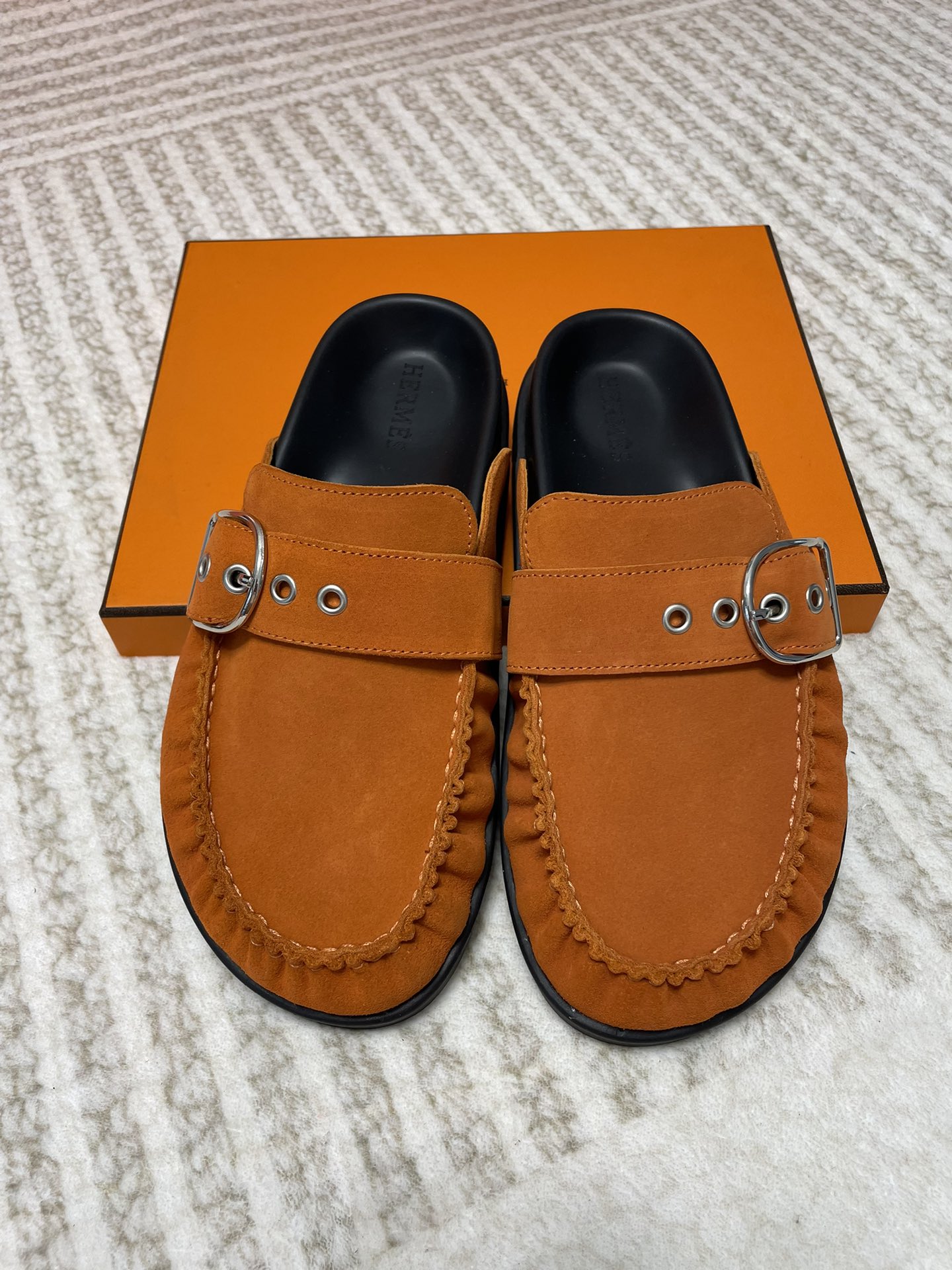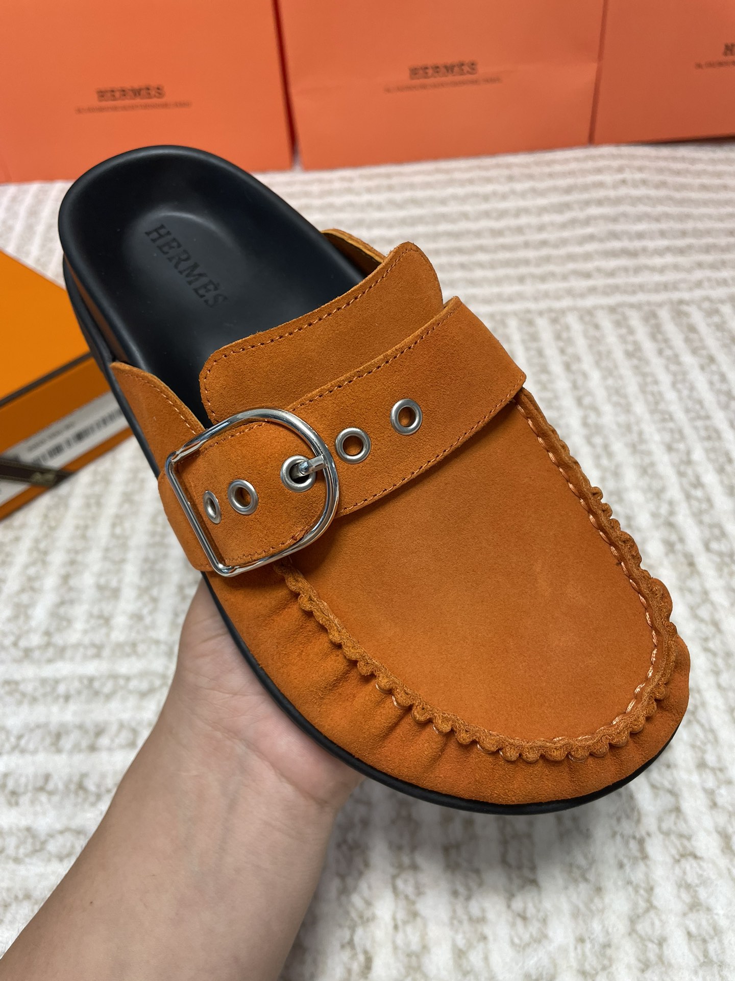 这款鞋子是AAAAA 1:1 质量 (非常棒). 使用了和原版一模一样的材料. 商标部分也保持了和爱马仕/Hermes一样. 图片拍摄是实物鞋子拍摄, 您所收到的实物保证和我们图片一模一样.