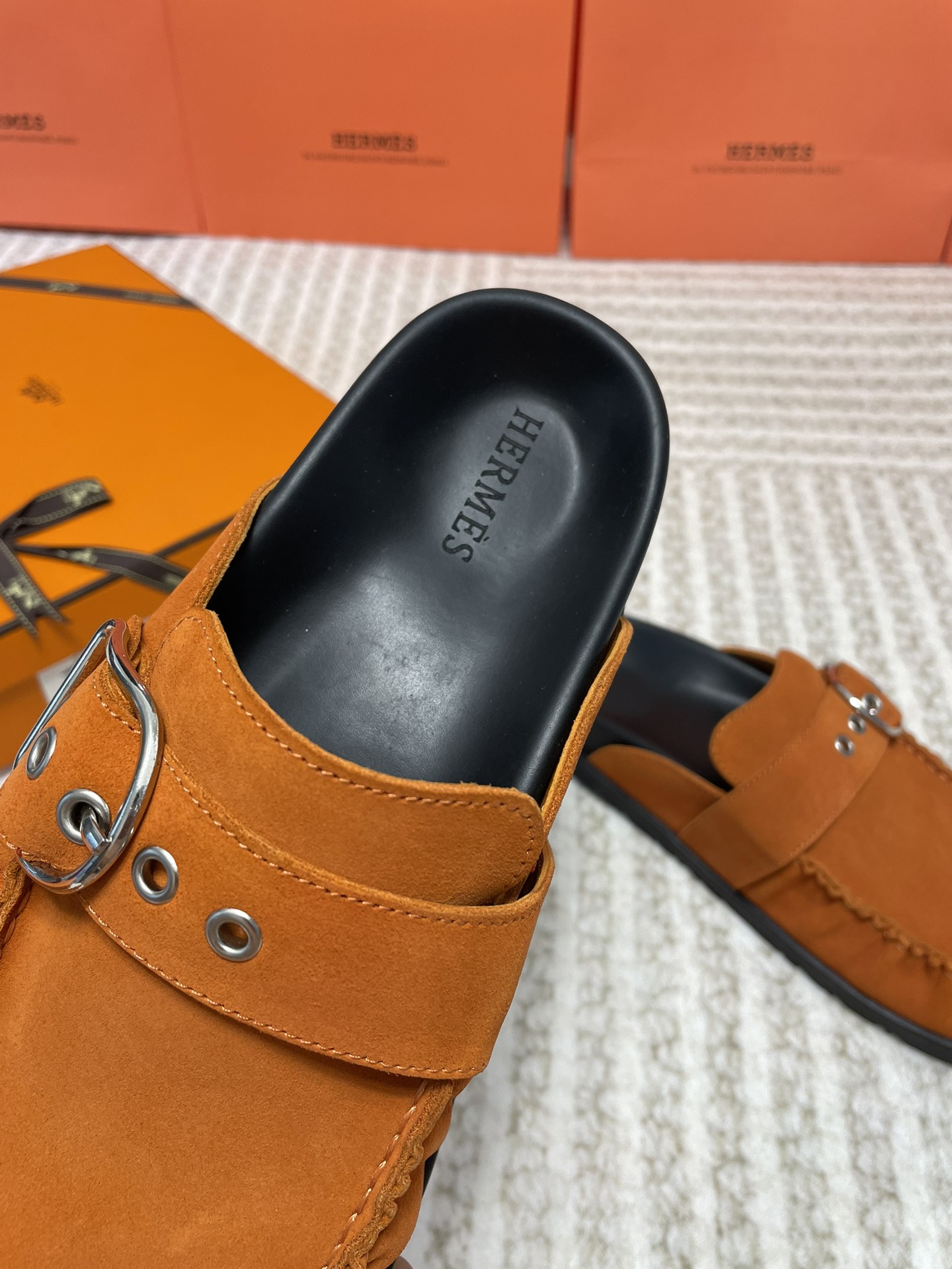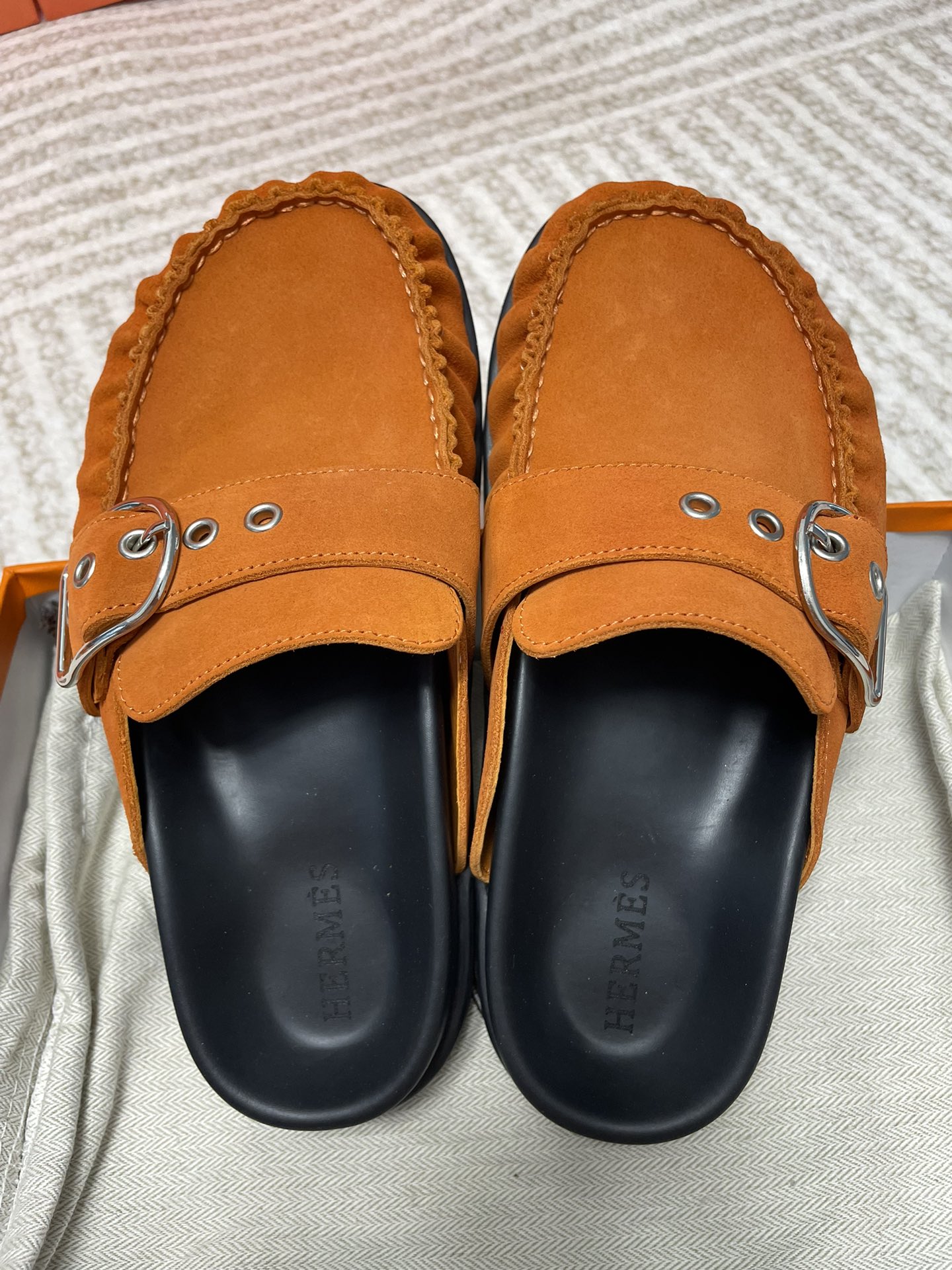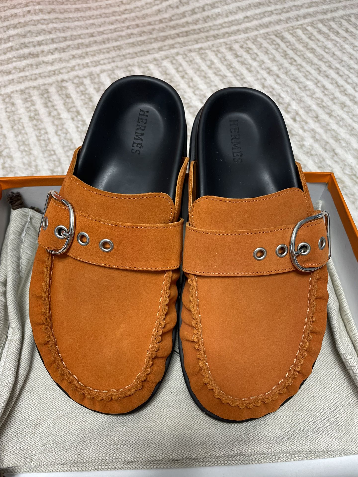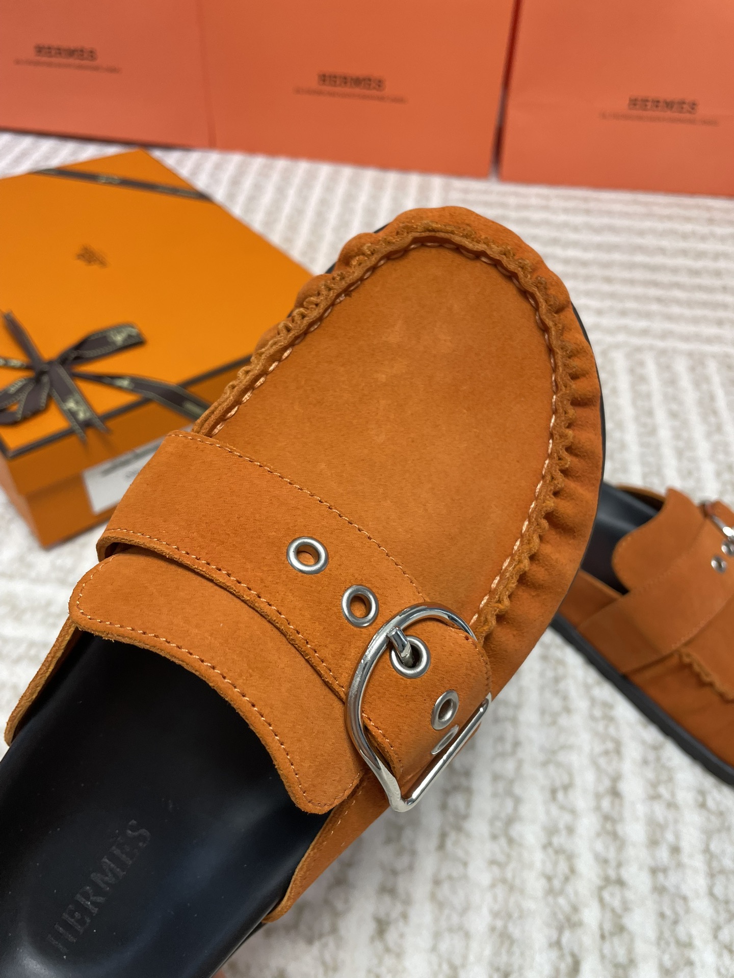 这款鞋子是AAAAA 1:1 质量 (非常棒). 使用了和原版一模一样的材料. 商标部分也保持了和爱马仕/Hermes一样. 图片拍摄是实物鞋子拍摄, 您所收到的实物保证和我们图片一模一样.