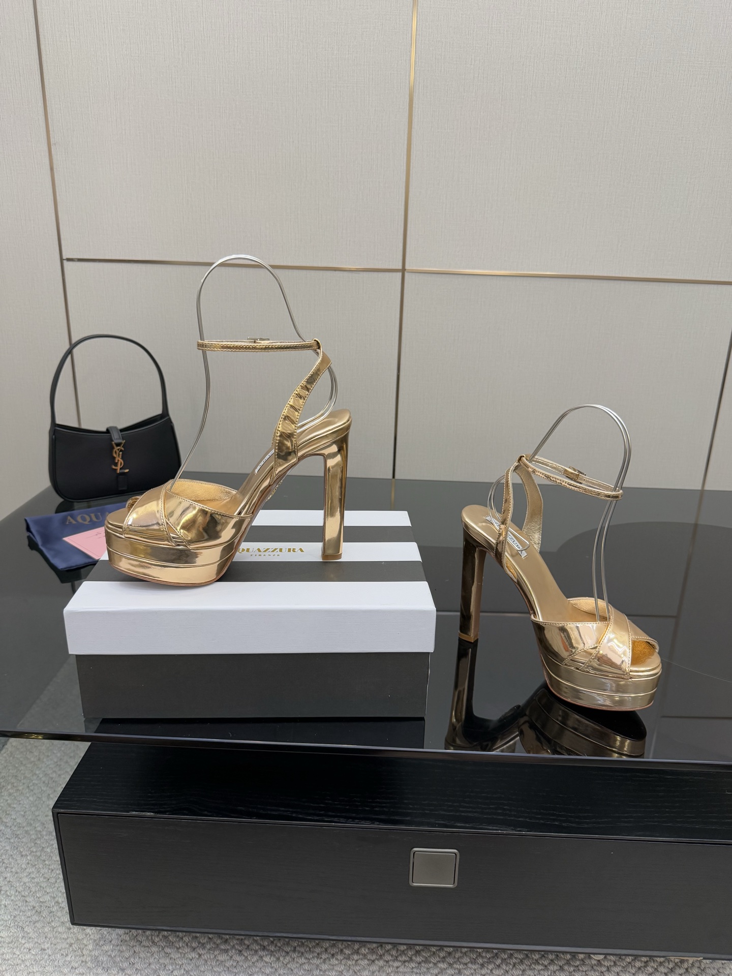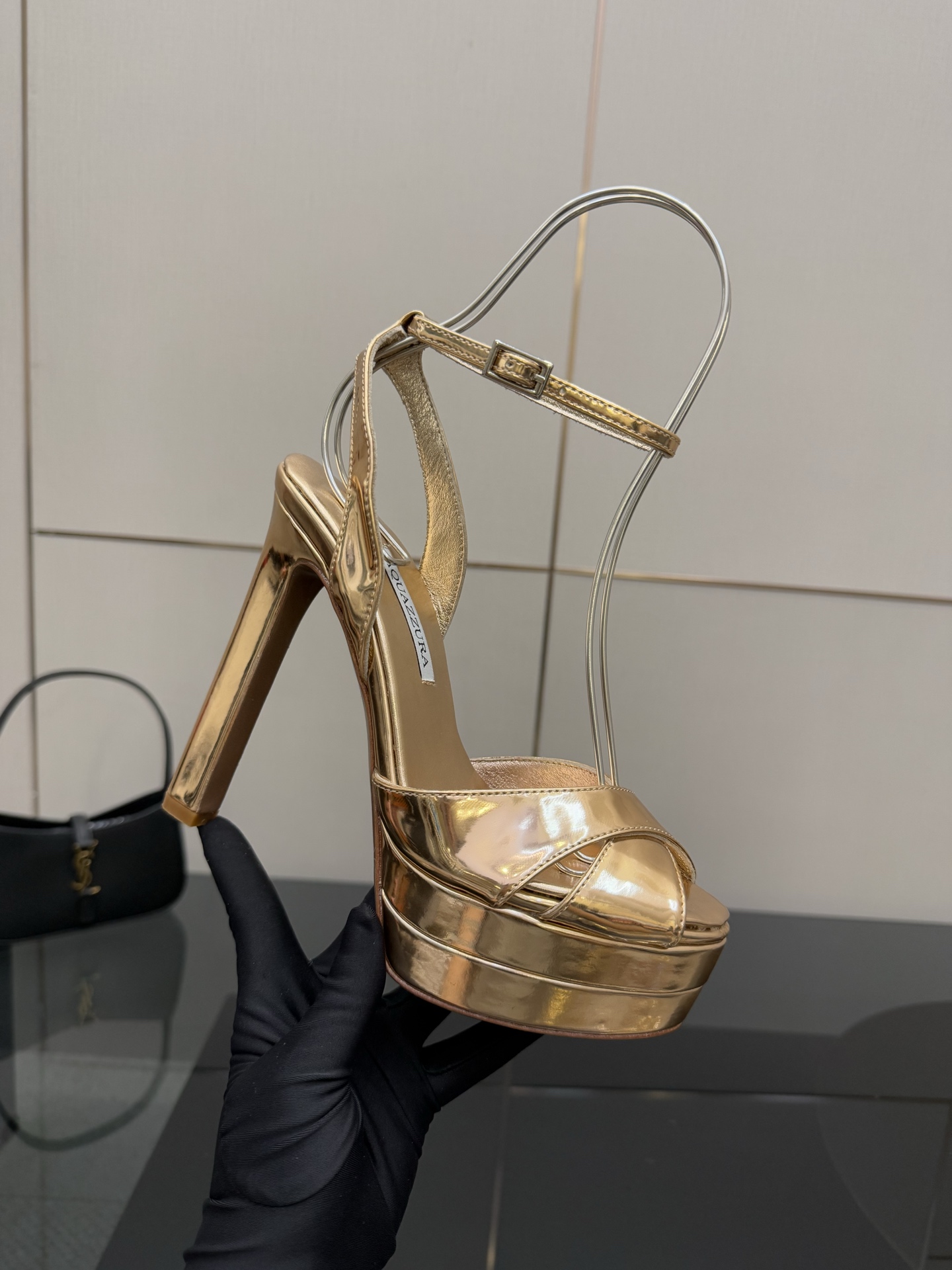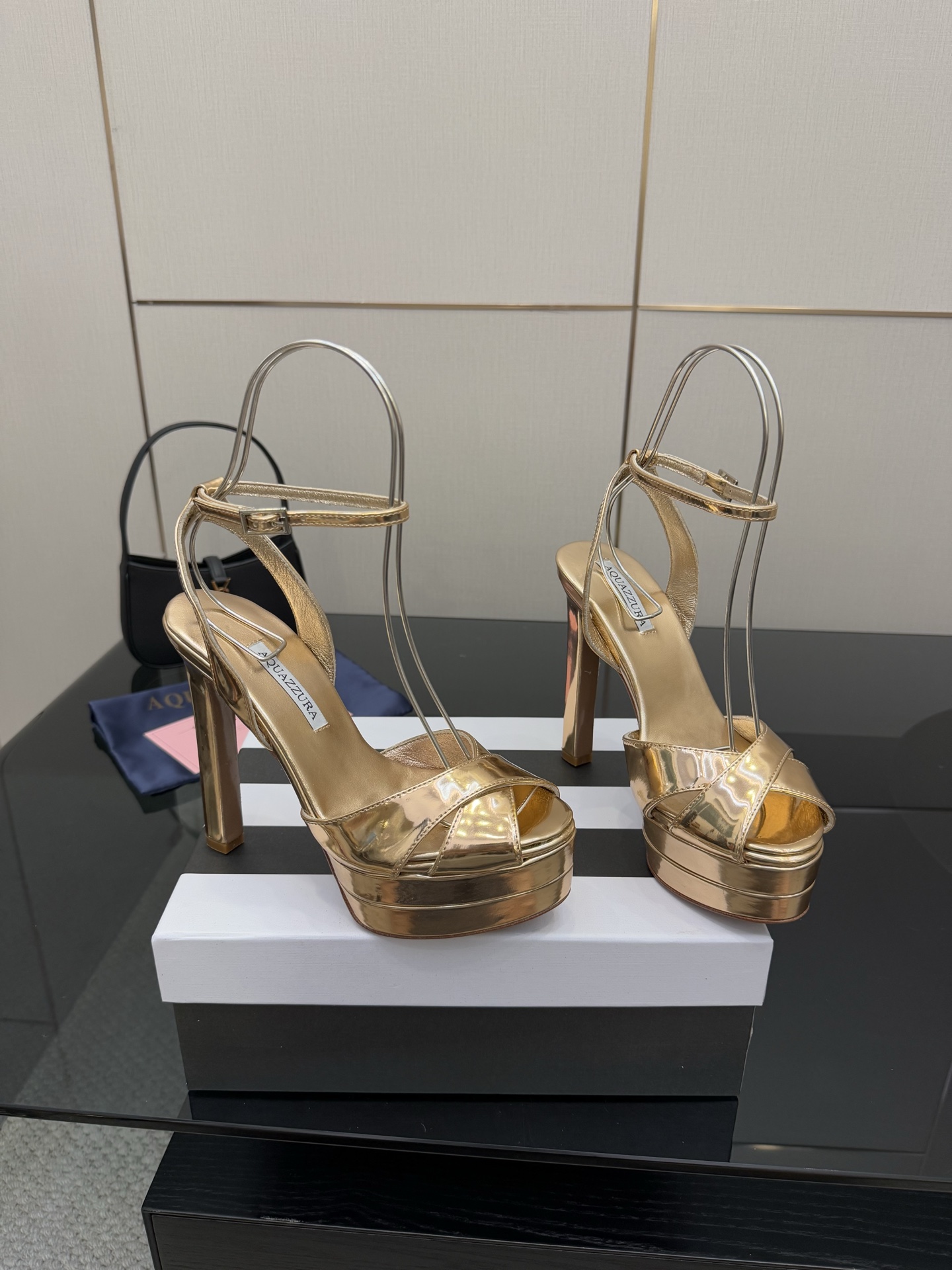 这款鞋子是AAAAA 1:1 质量 (非常棒). 使用了和原版一模一样的材料. 商标部分也保持了和Aquazzura一样. 图片拍摄是实物鞋子拍摄, 您所收到的实物保证和我们图片一模一样.