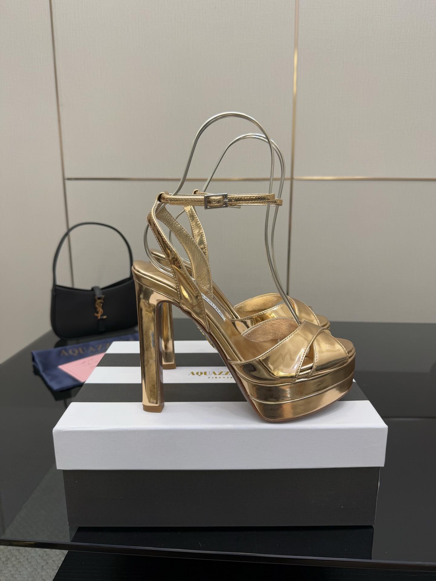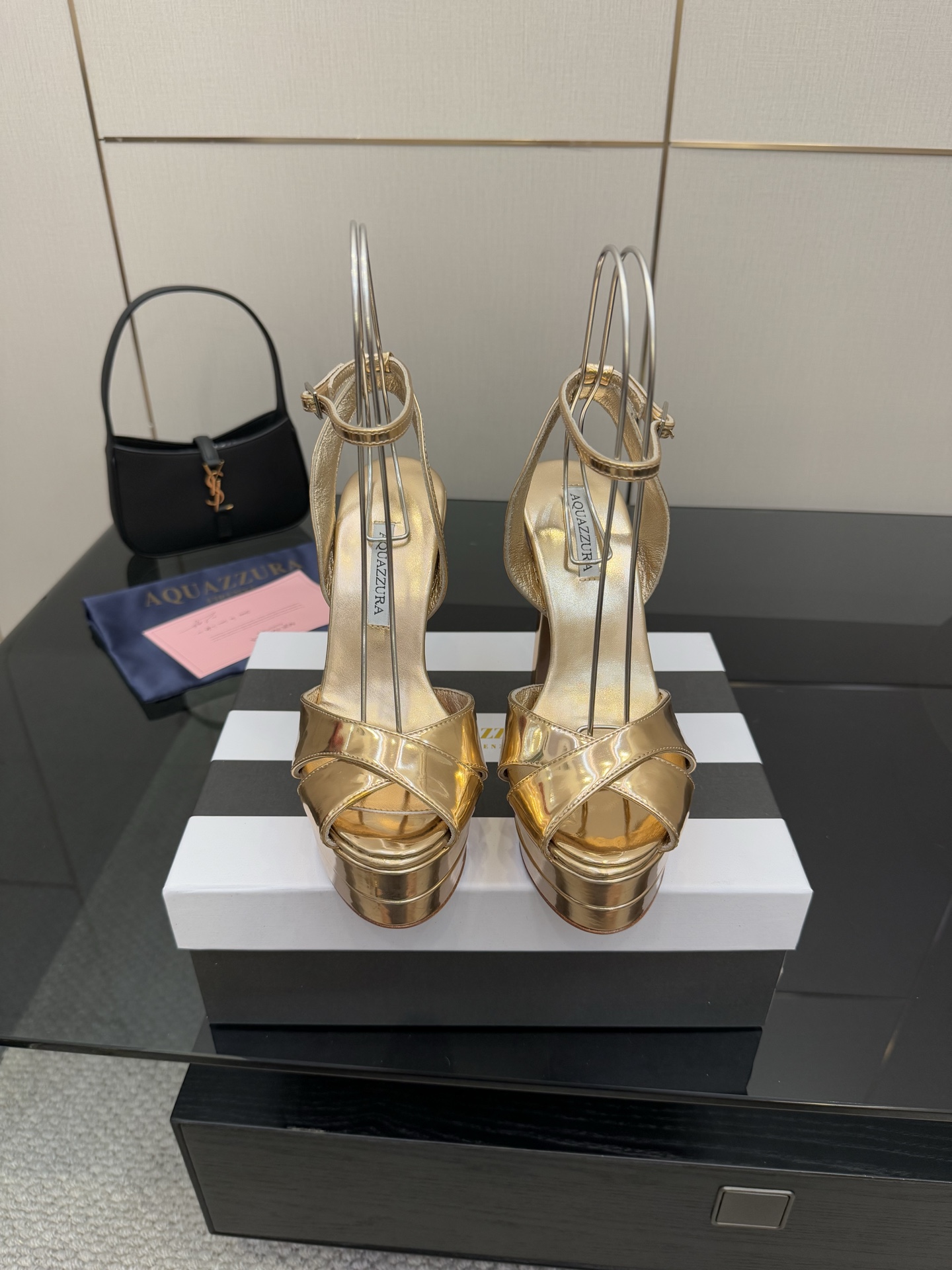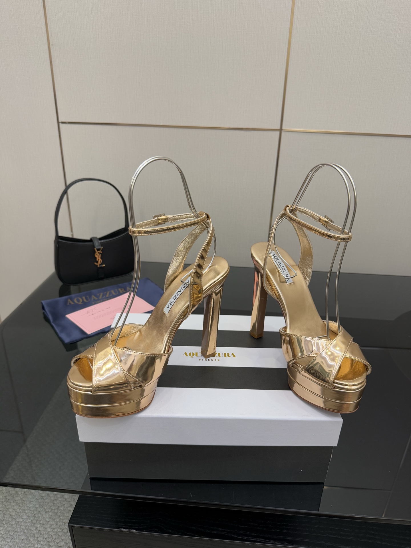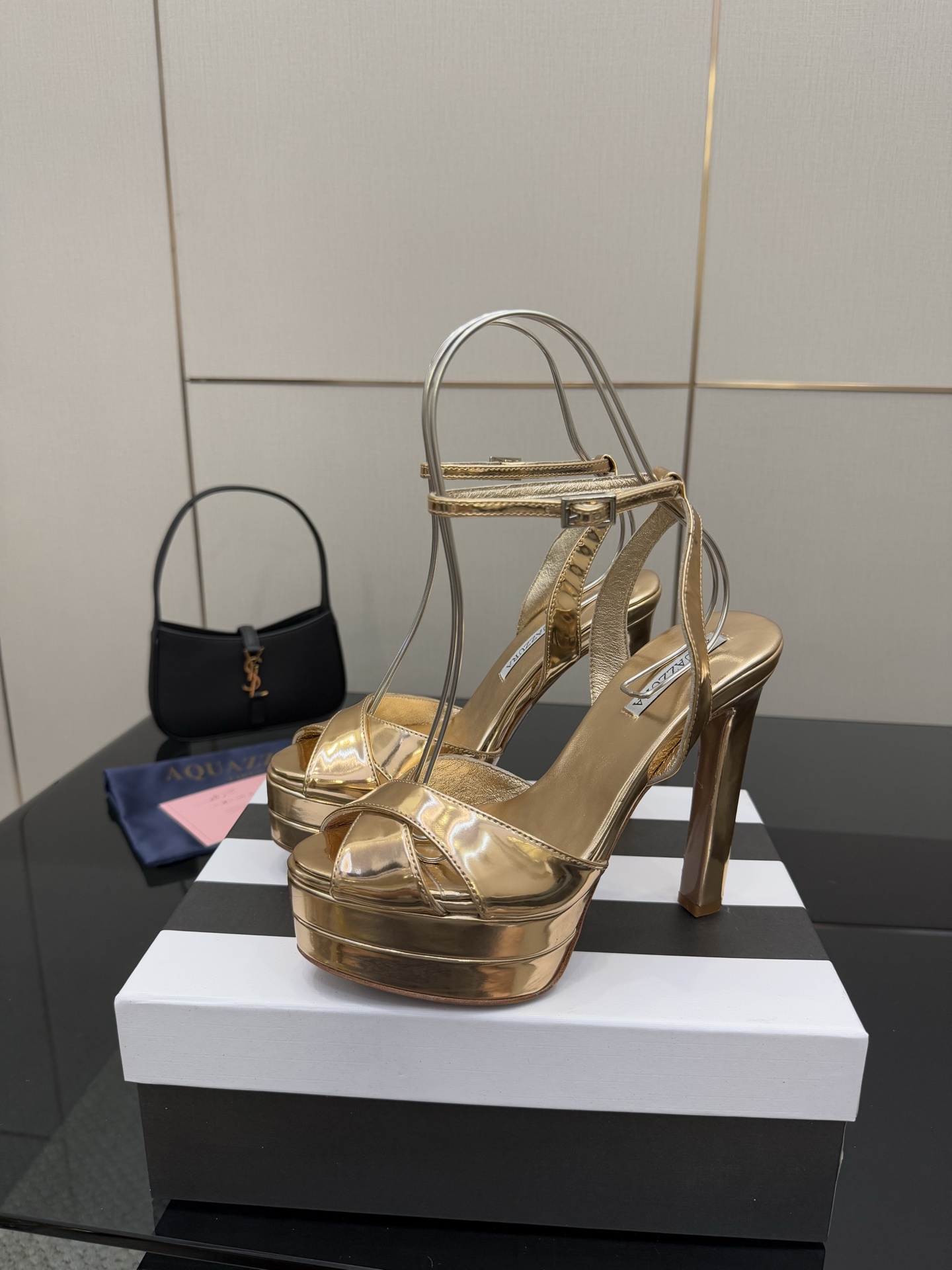 这款鞋子是AAAAA 1:1 质量 (非常棒). 使用了和原版一模一样的材料. 商标部分也保持了和Aquazzura一样. 图片拍摄是实物鞋子拍摄, 您所收到的实物保证和我们图片一模一样.