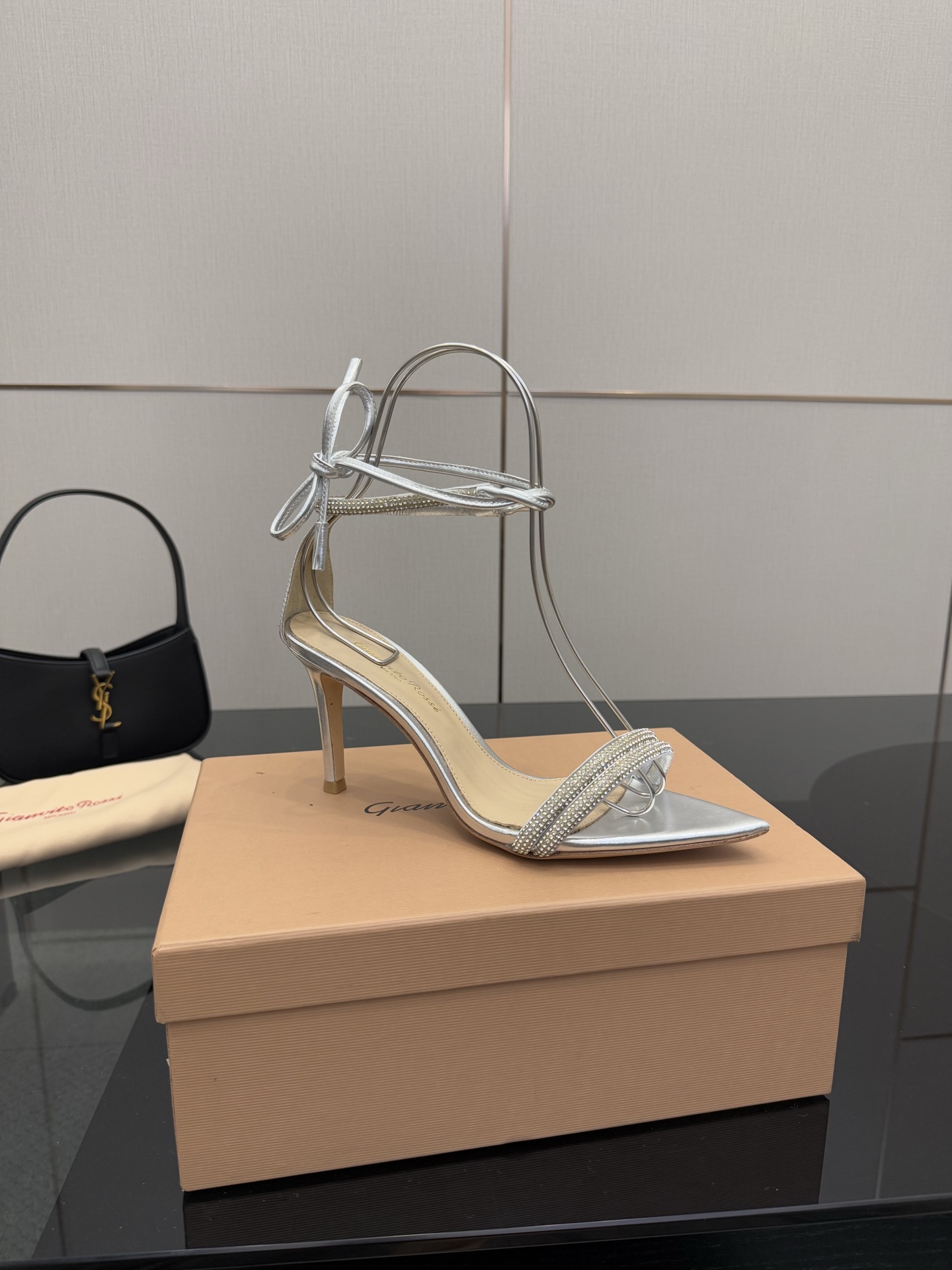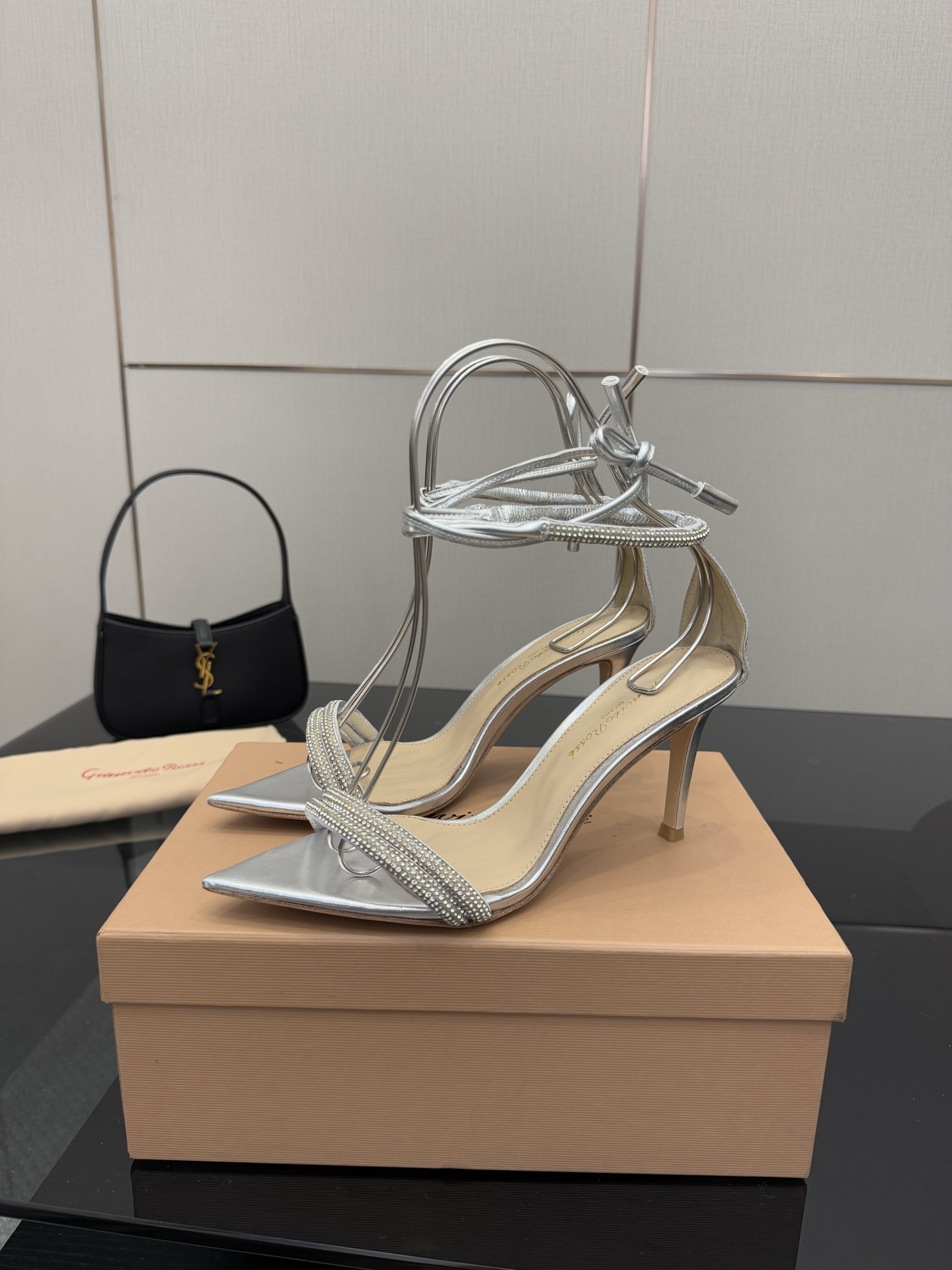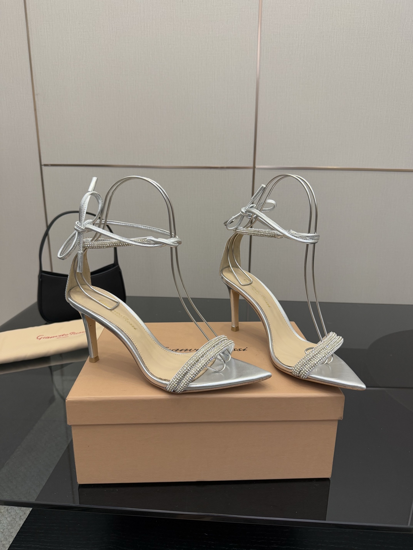 这款鞋子是AAAAA 1:1 质量 (非常棒). 使用了和原版一模一样的材料. 商标部分也保持了和Gianvito Rossi一样. 图片拍摄是实物鞋子拍摄, 您所收到的实物保证和我们图片一模一样.
