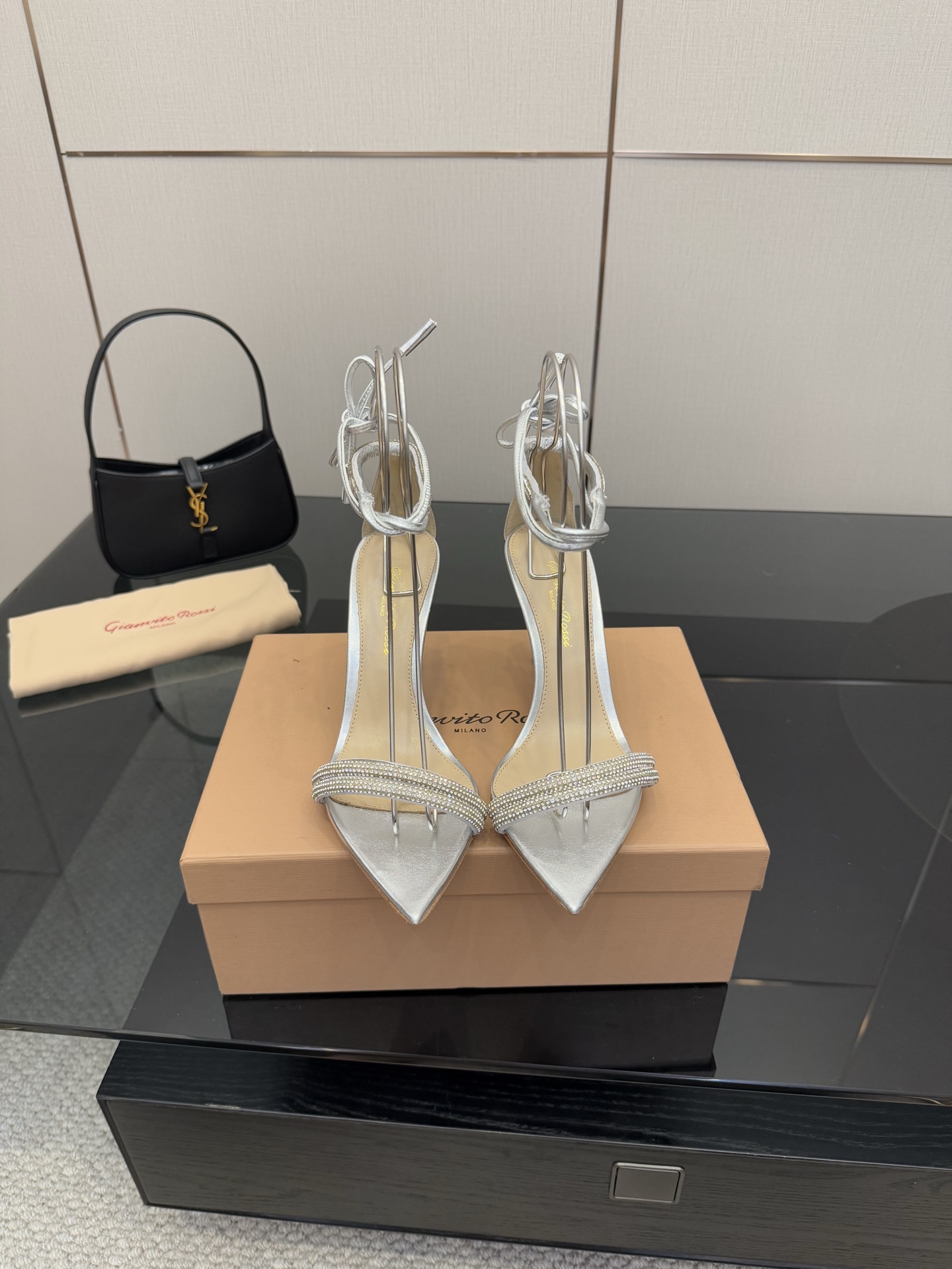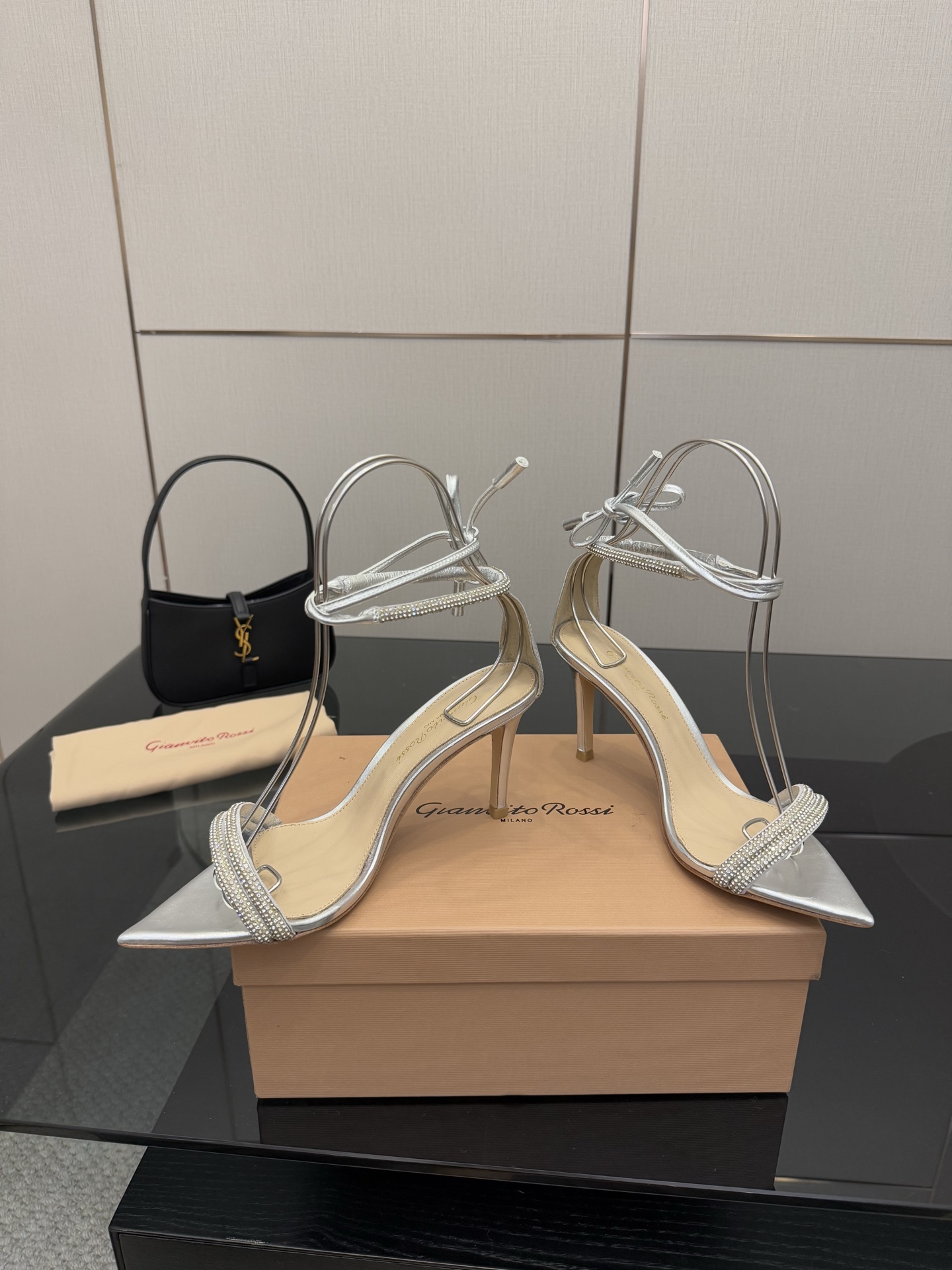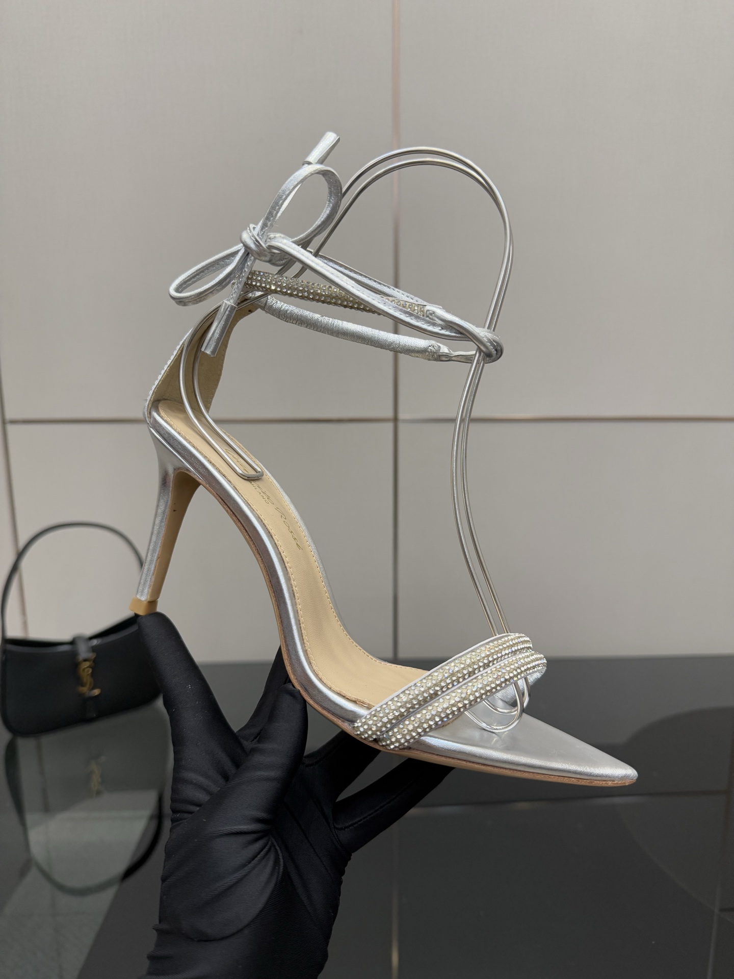 这款鞋子是AAAAA 1:1 质量 (非常棒). 使用了和原版一模一样的材料. 商标部分也保持了和Gianvito Rossi一样. 图片拍摄是实物鞋子拍摄, 您所收到的实物保证和我们图片一模一样.