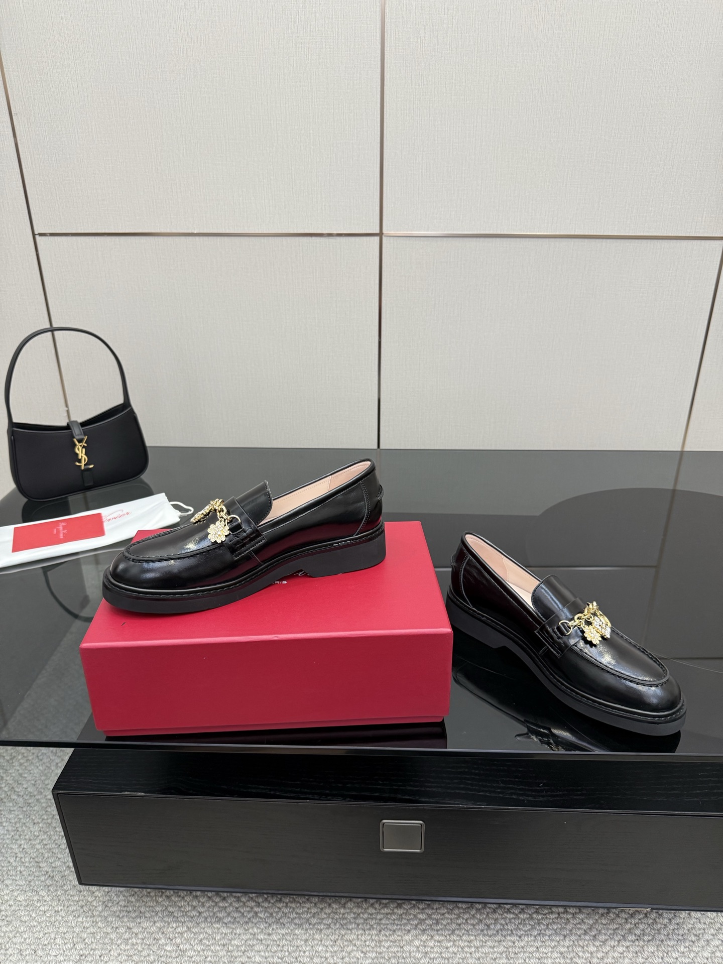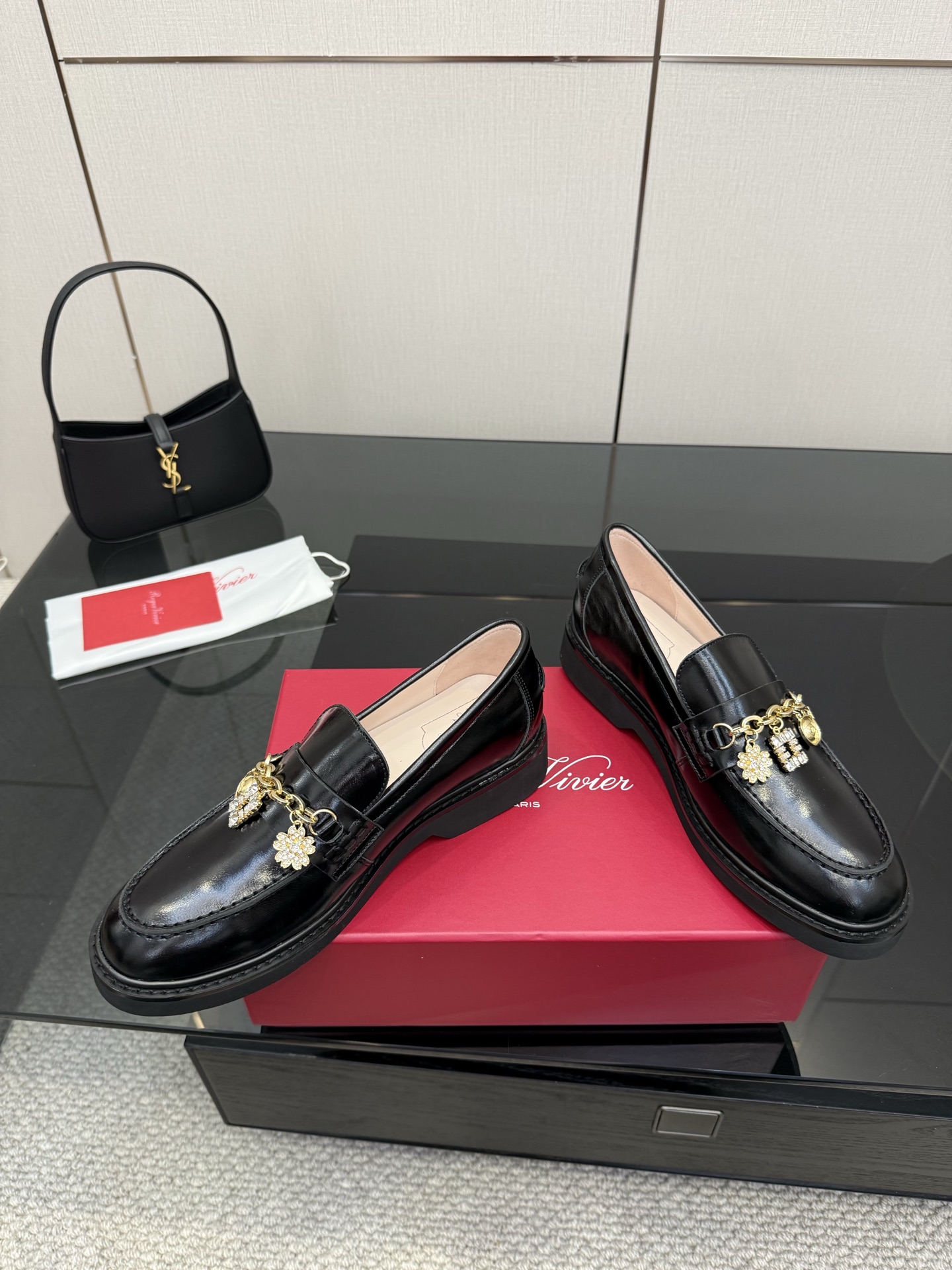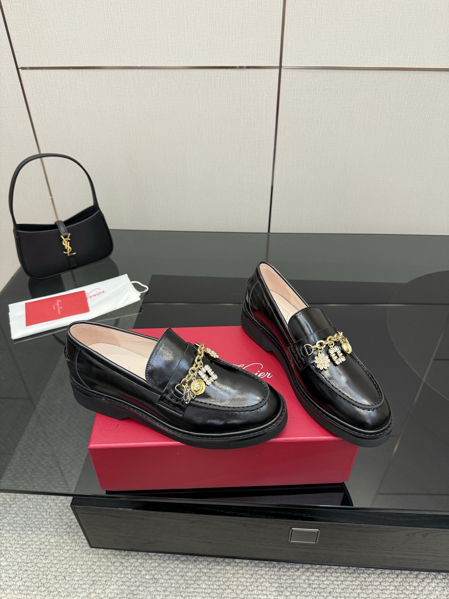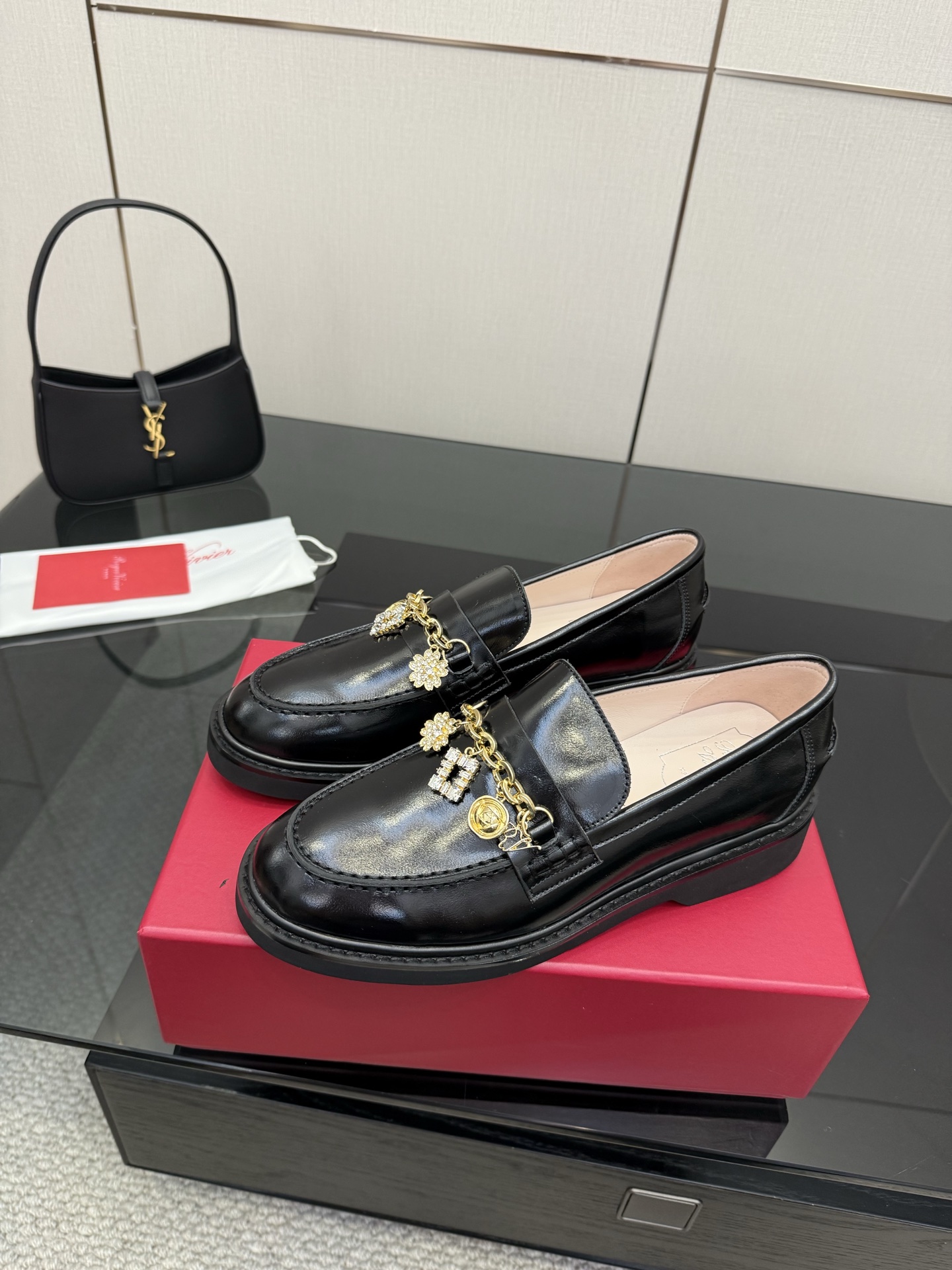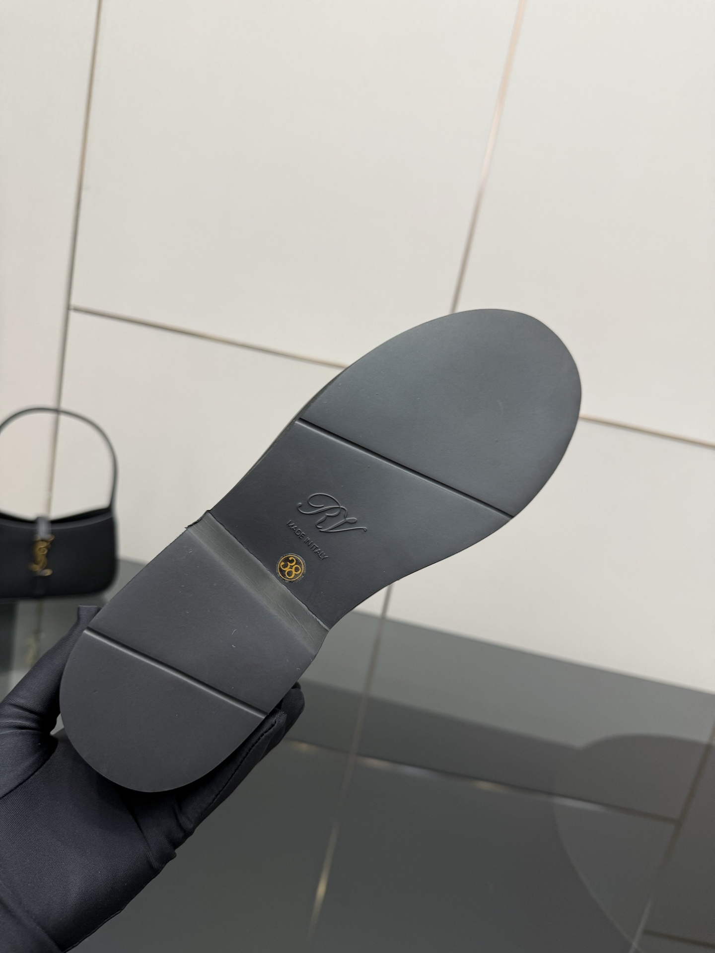 这款鞋子是AAAAA 1:1 质量 (非常棒). 使用了和原版一模一样的材料. 商标部分也保持了和罗杰维维耶/Roger Vivier一样. 图片拍摄是实物鞋子拍摄, 您所收到的实物保证和我们图片一模一样.