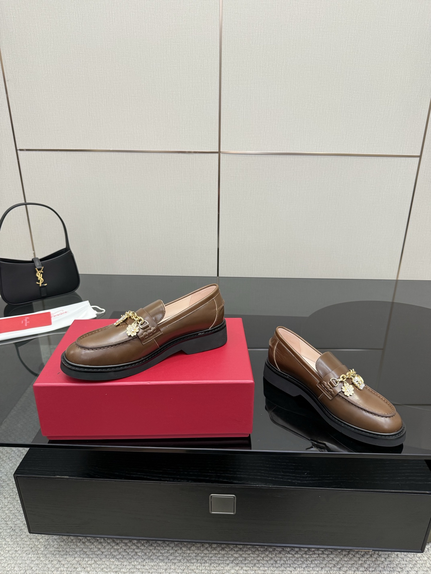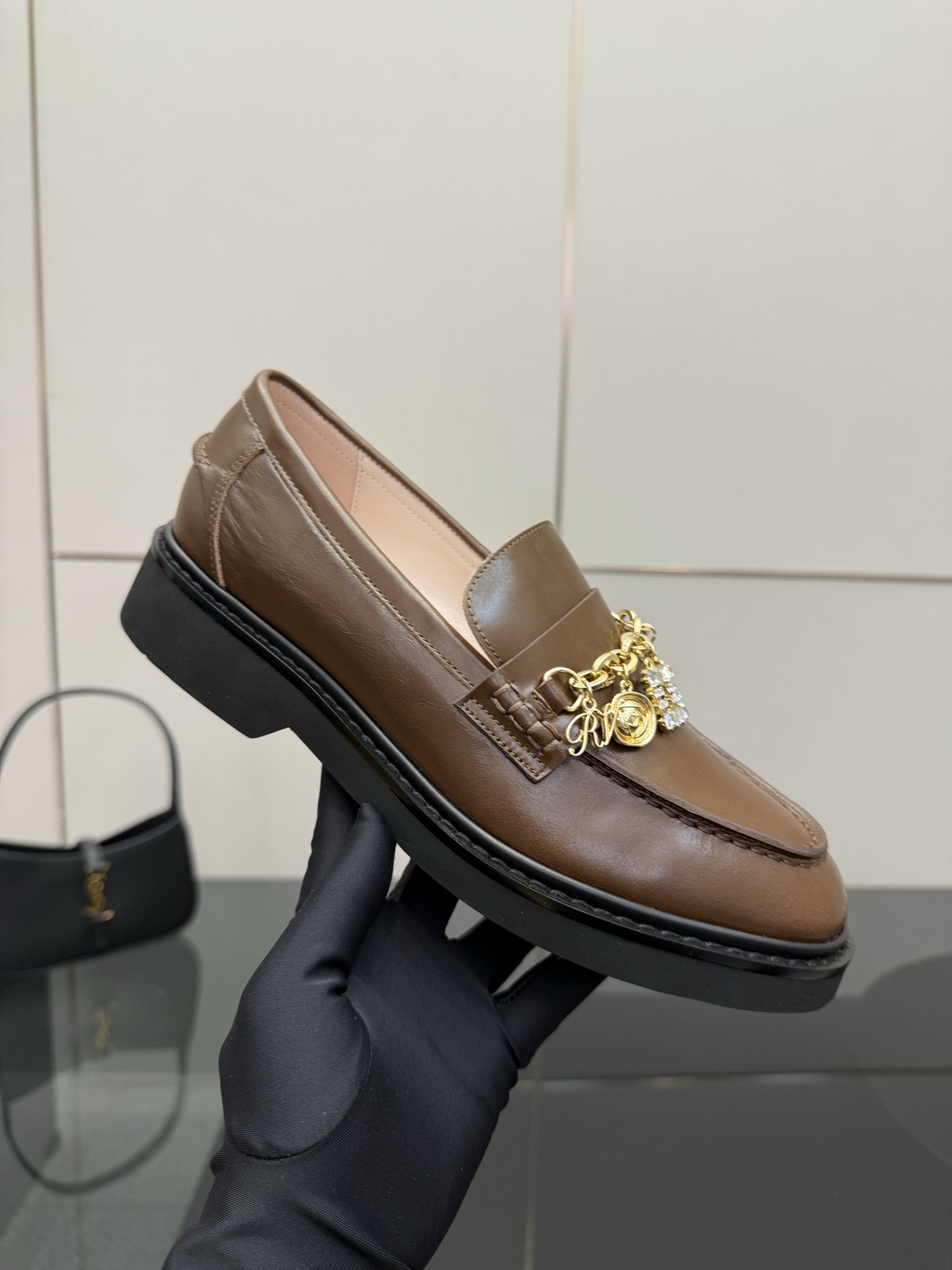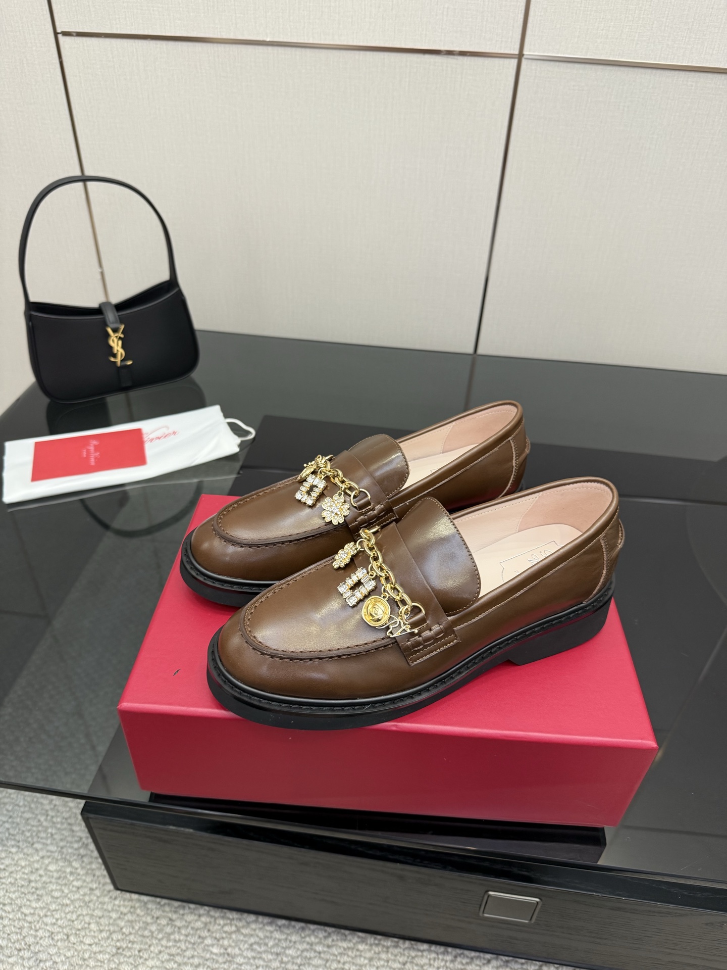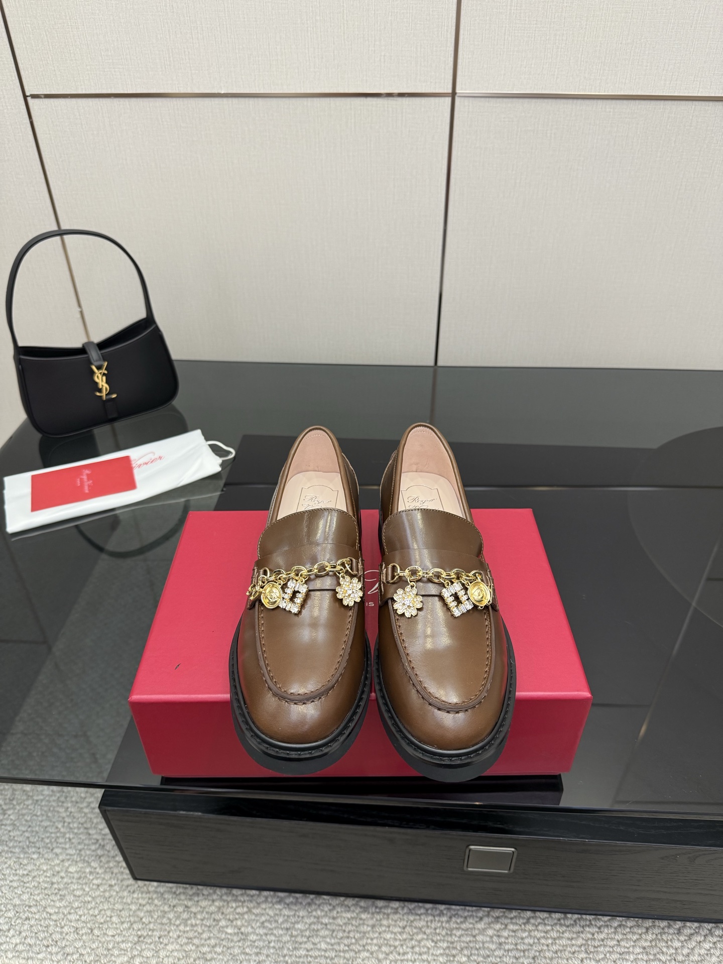 这款鞋子是AAAAA 1:1 质量 (非常棒). 使用了和原版一模一样的材料. 商标部分也保持了和罗杰维维耶/Roger Vivier一样. 图片拍摄是实物鞋子拍摄, 您所收到的实物保证和我们图片一模一样.
