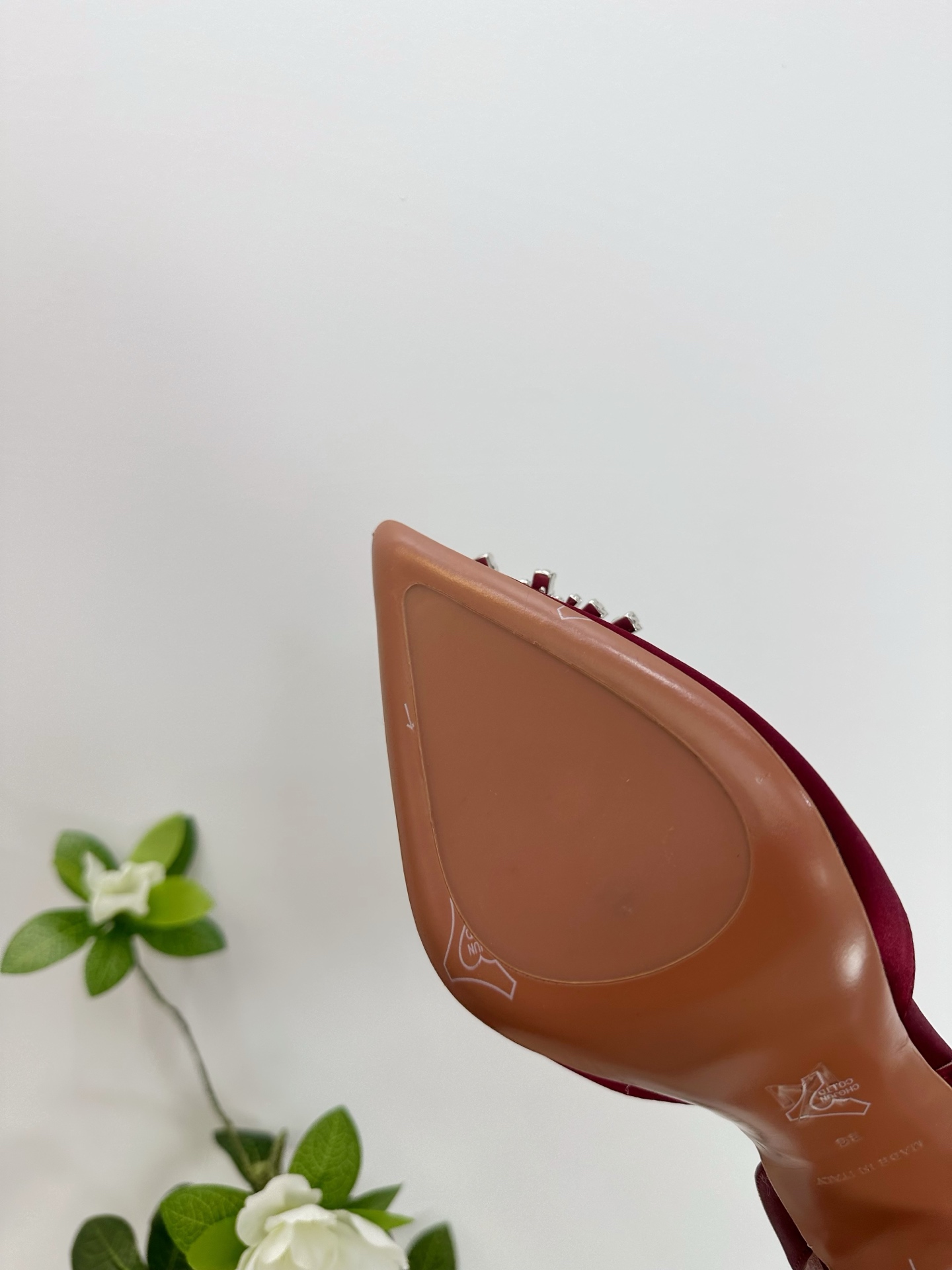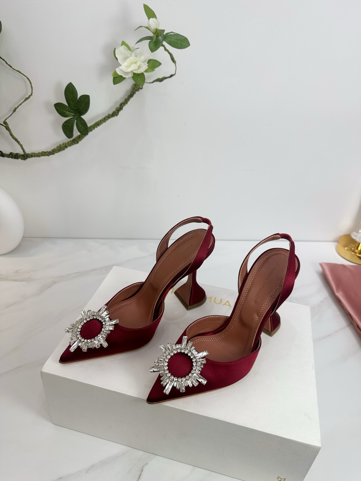 这款鞋子是AAAAA 1:1 质量 (非常棒). 使用了和原版一模一样的材料. 商标部分也保持了和Amina Muaddi一样. 图片拍摄是实物鞋子拍摄, 您所收到的实物保证和我们图片一模一样.