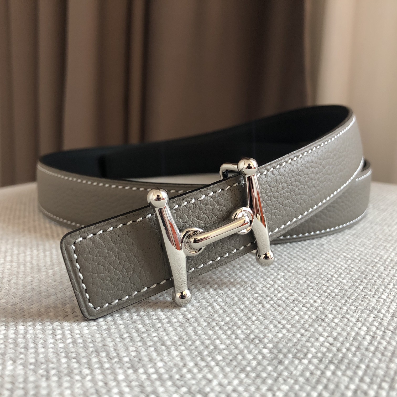 这款皮带是AAAAA 1:1 质量 (非常棒). 使用了和原版一模一样的材料. 商标部分也保持了和爱马仕/Hermes一样. 图片拍摄是实物皮带拍摄, 您所收到的实物保证和我们图片一模一样.