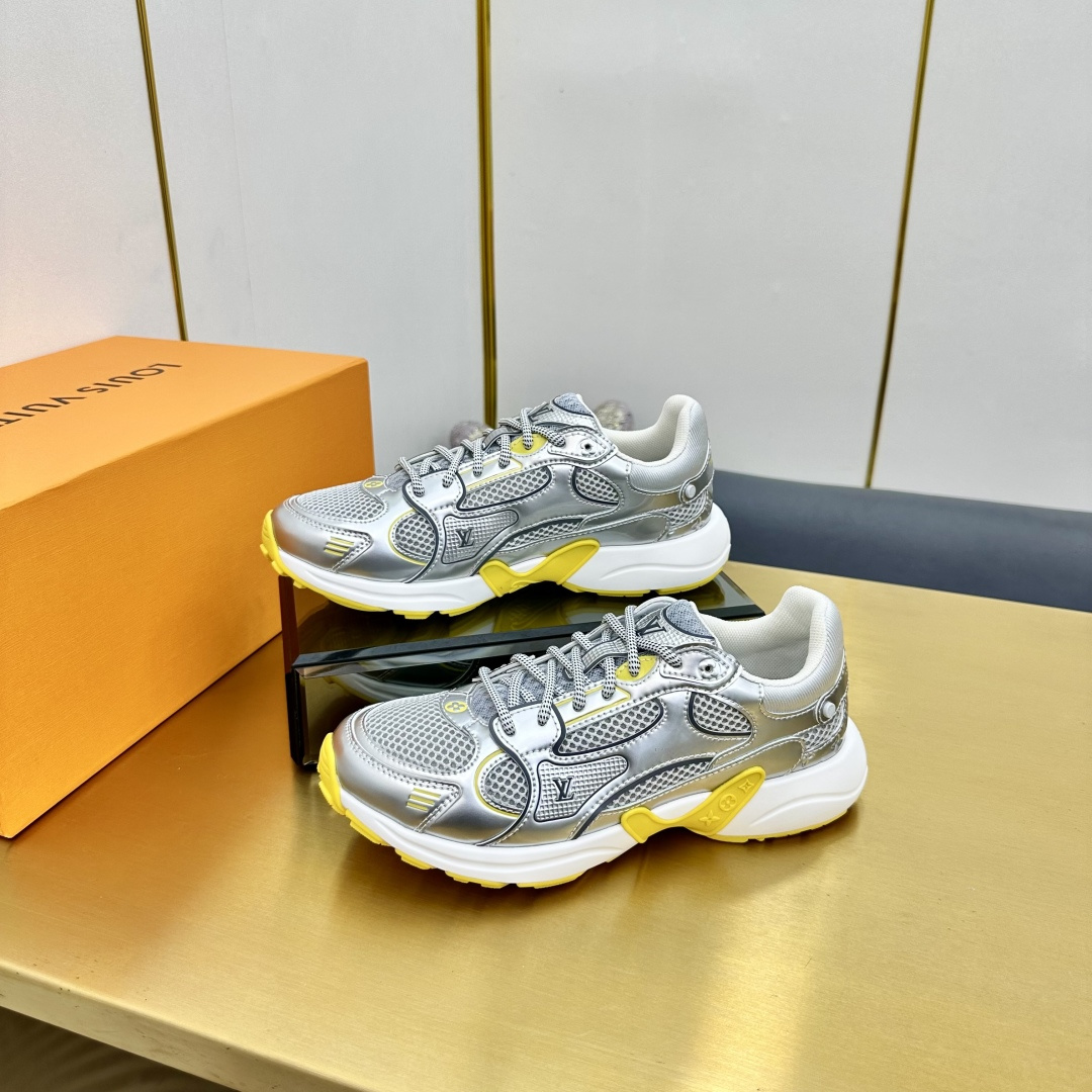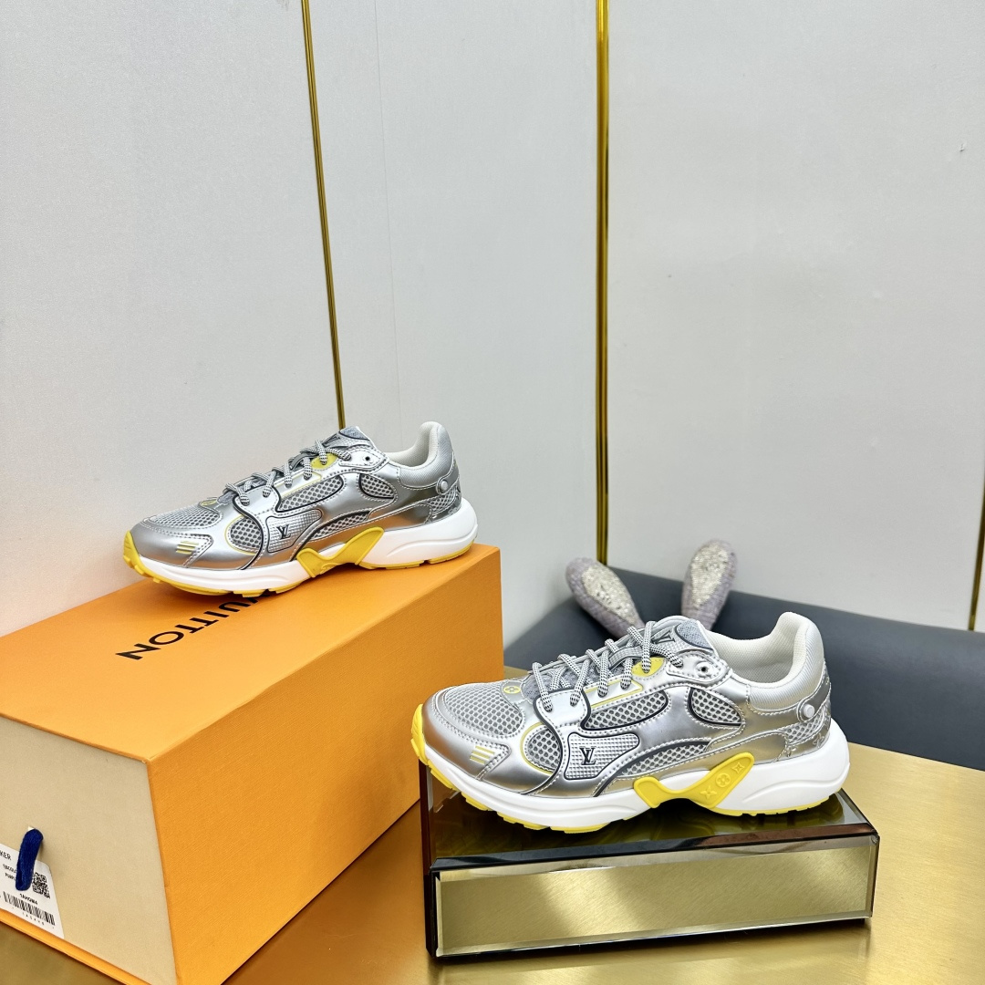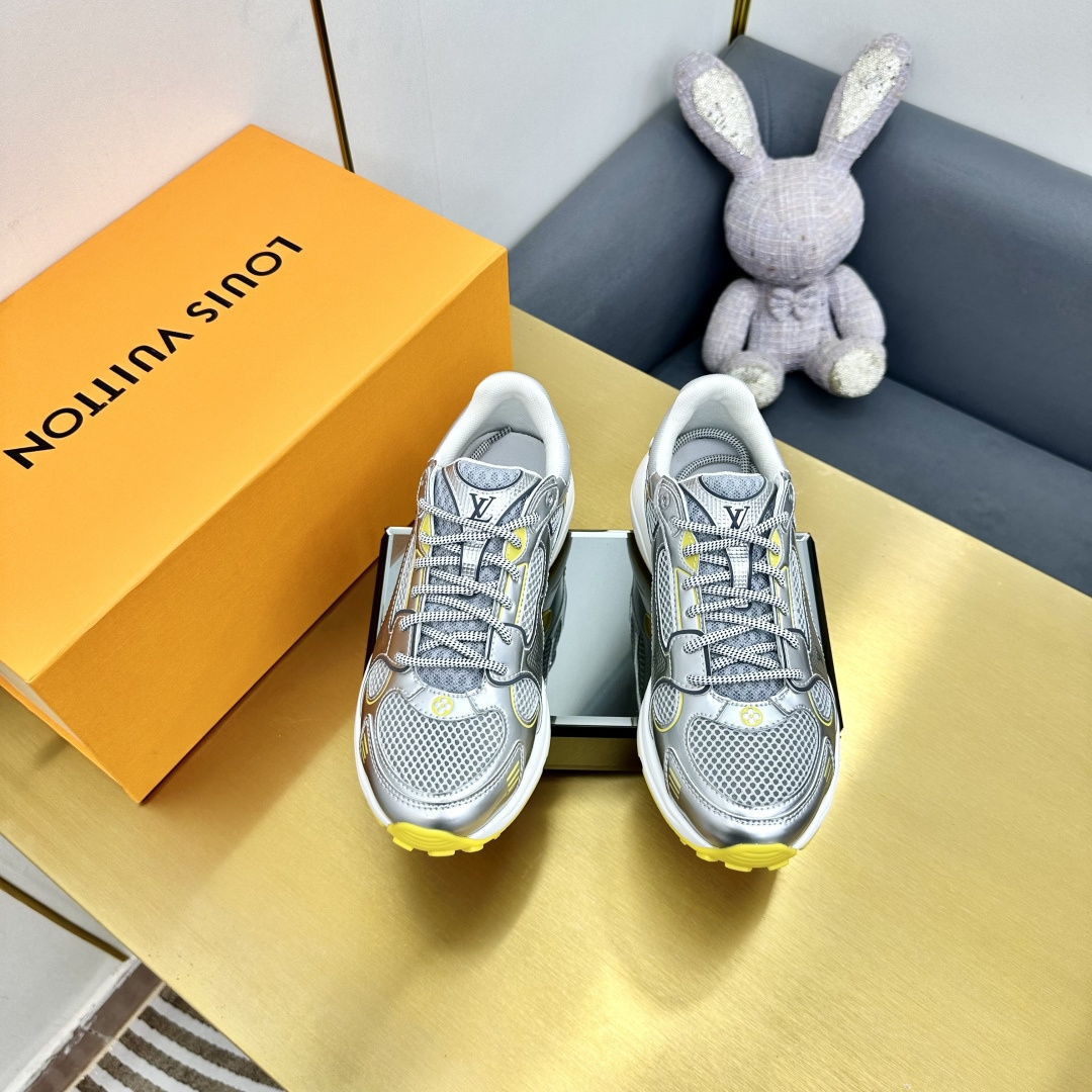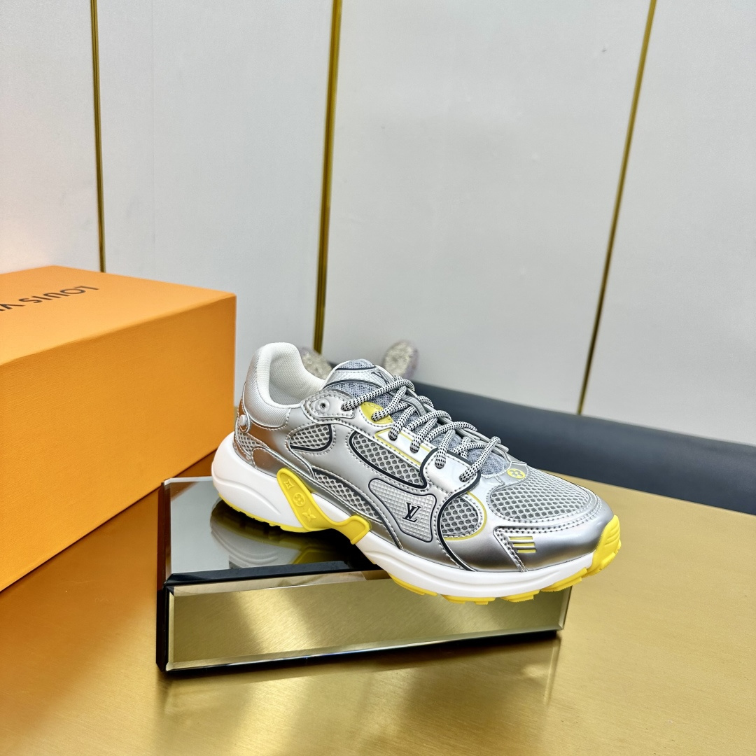 这款鞋子是AAAAA 1:1 质量 (非常棒). 使用了和原版一模一样的材料. 商标部分也保持了和路易威登/Louis Vuitton一样. 图片拍摄是实物鞋子拍摄, 您所收到的实物保证和我们图片一模一样.