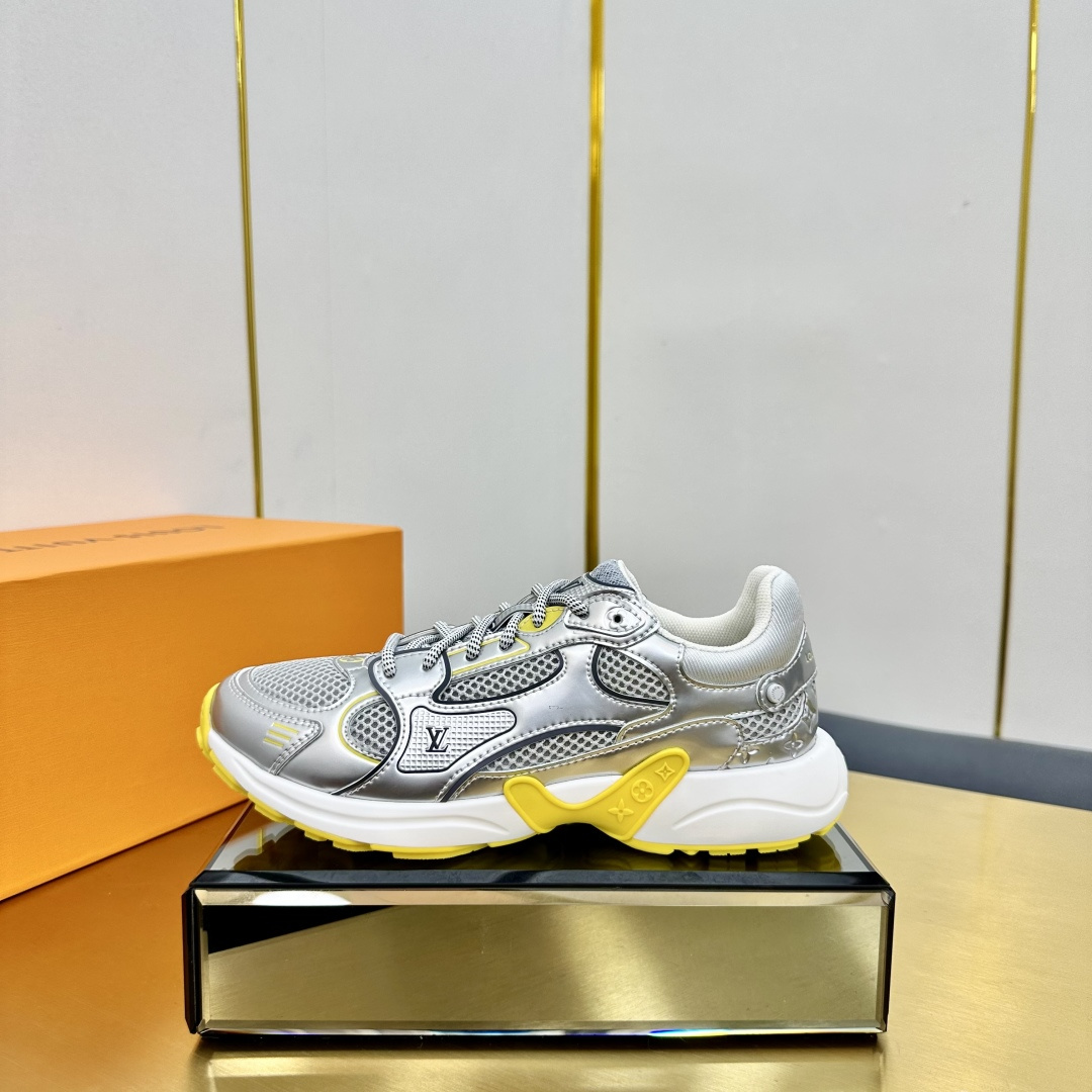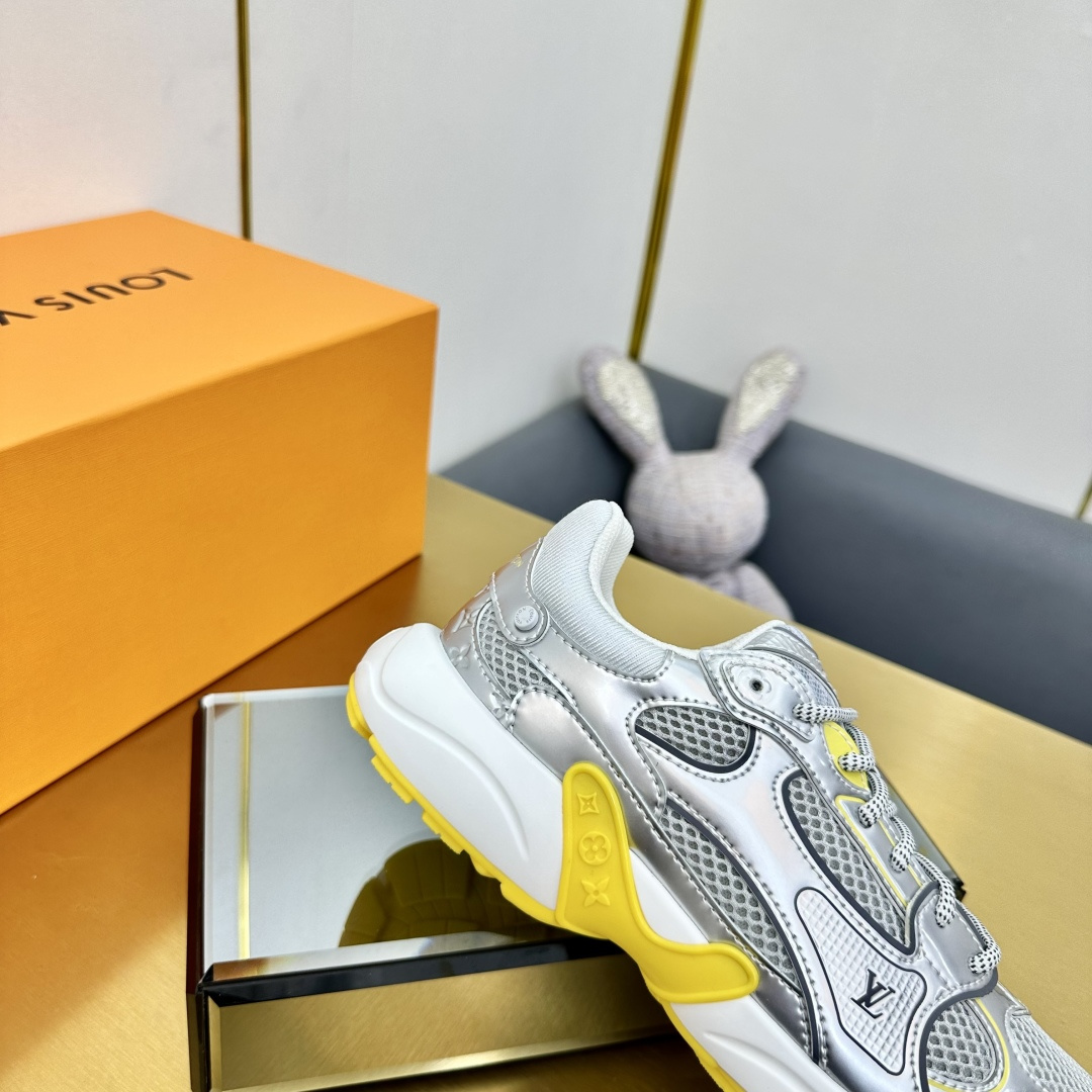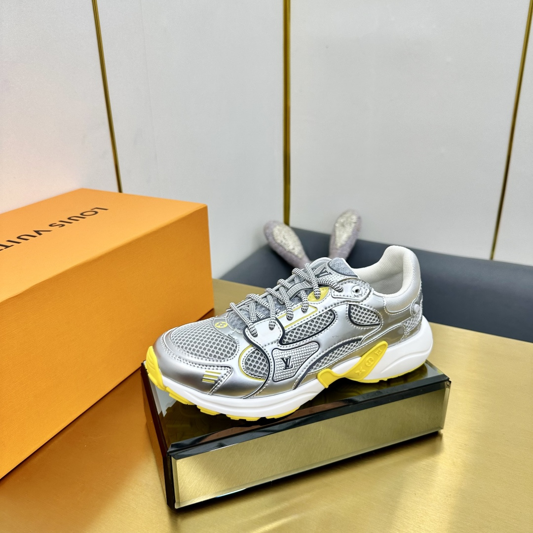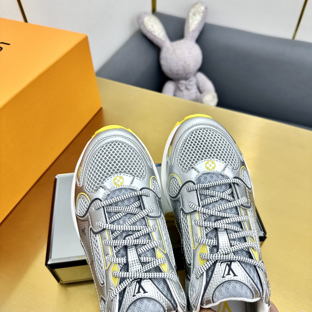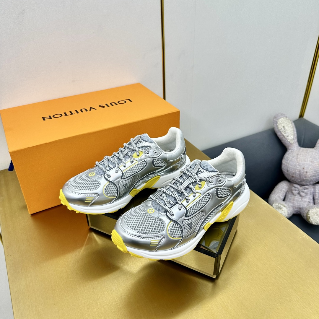 这款鞋子是AAAAA 1:1 质量 (非常棒). 使用了和原版一模一样的材料. 商标部分也保持了和路易威登/Louis Vuitton一样. 图片拍摄是实物鞋子拍摄, 您所收到的实物保证和我们图片一模一样.