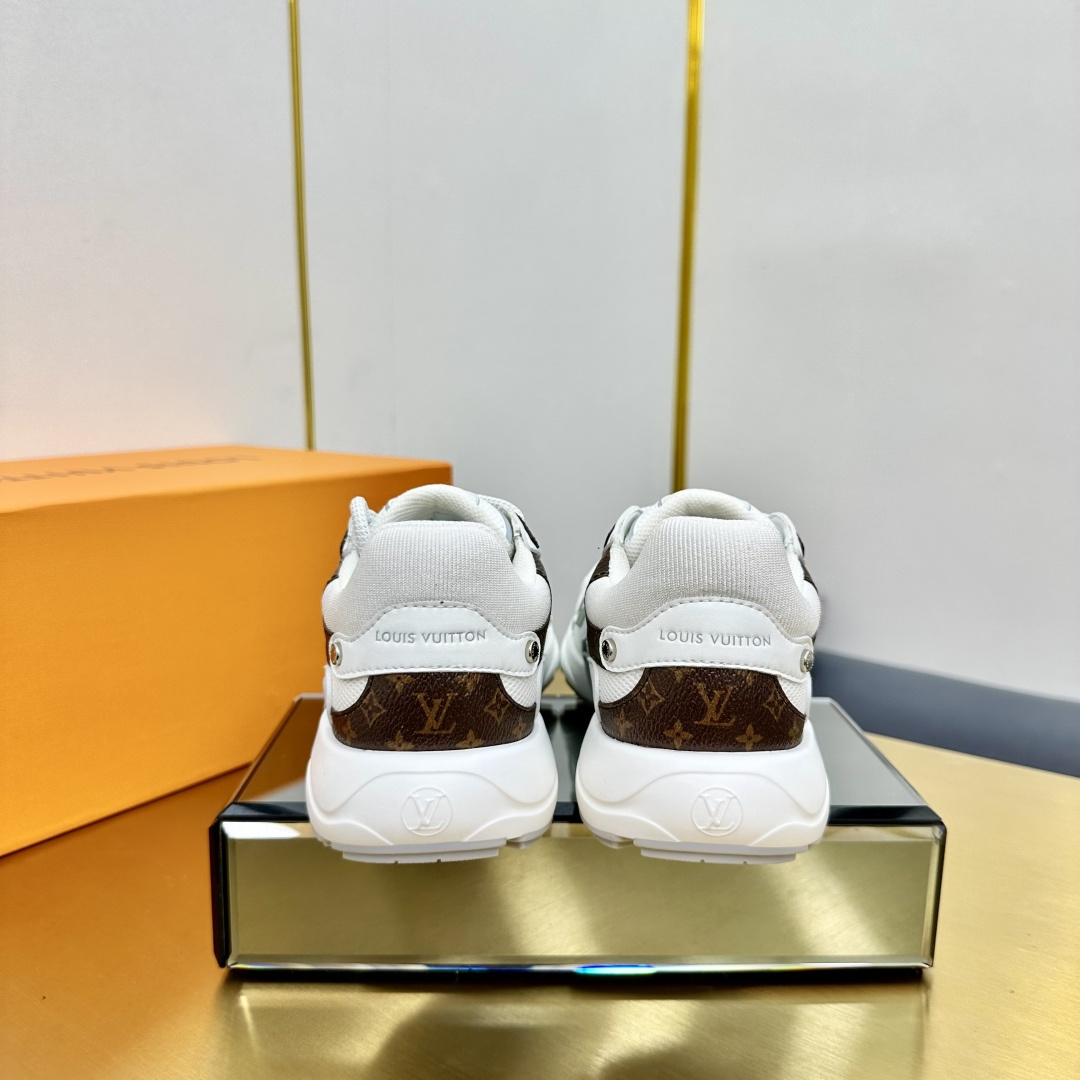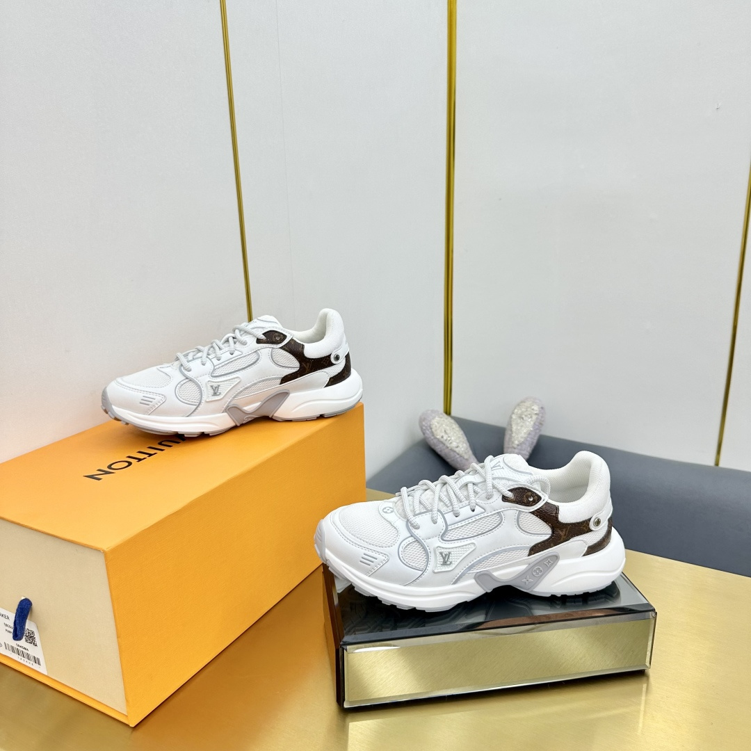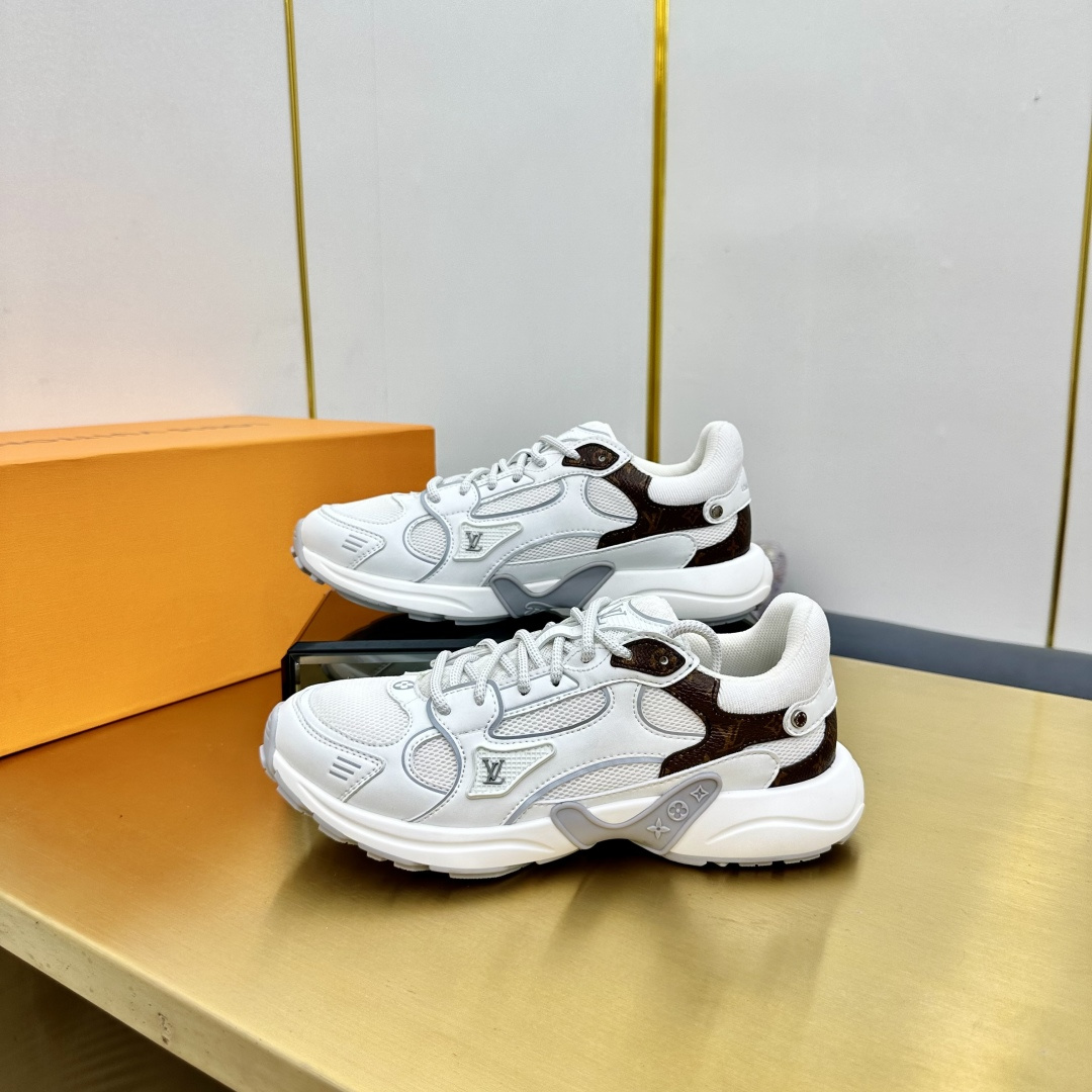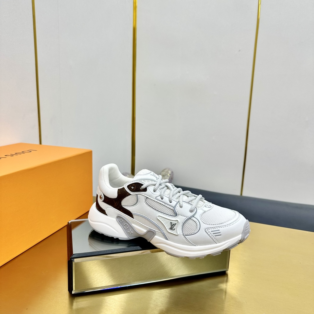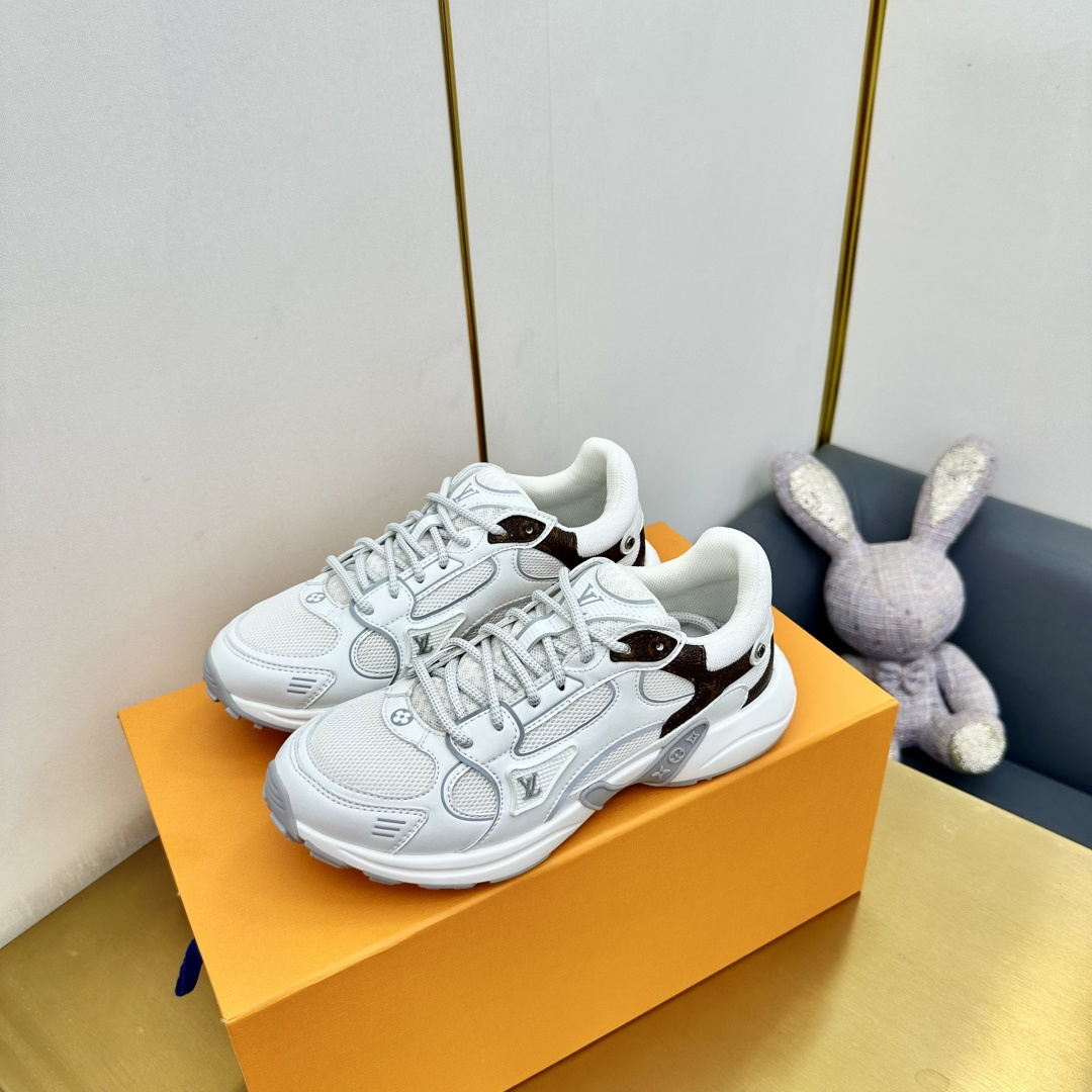 这款鞋子是AAAAA 1:1 质量 (非常棒). 使用了和原版一模一样的材料. 商标部分也保持了和路易威登/Louis Vuitton一样. 图片拍摄是实物鞋子拍摄, 您所收到的实物保证和我们图片一模一样.