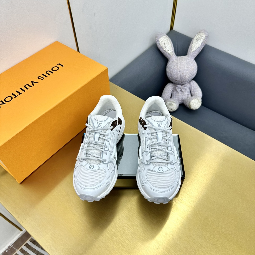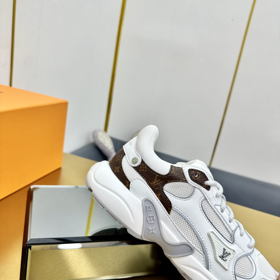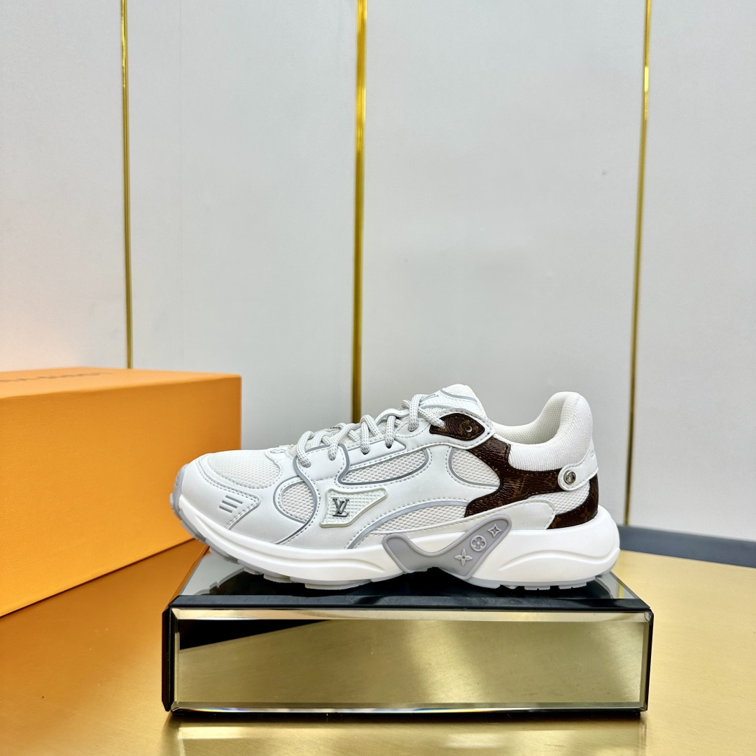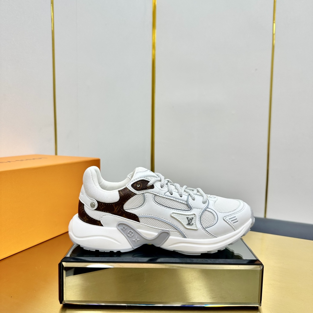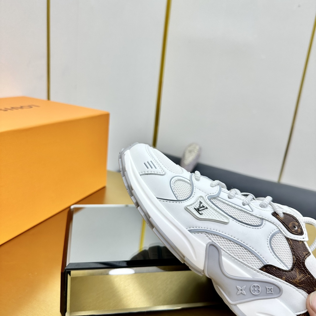 这款鞋子是AAAAA 1:1 质量 (非常棒). 使用了和原版一模一样的材料. 商标部分也保持了和路易威登/Louis Vuitton一样. 图片拍摄是实物鞋子拍摄, 您所收到的实物保证和我们图片一模一样.