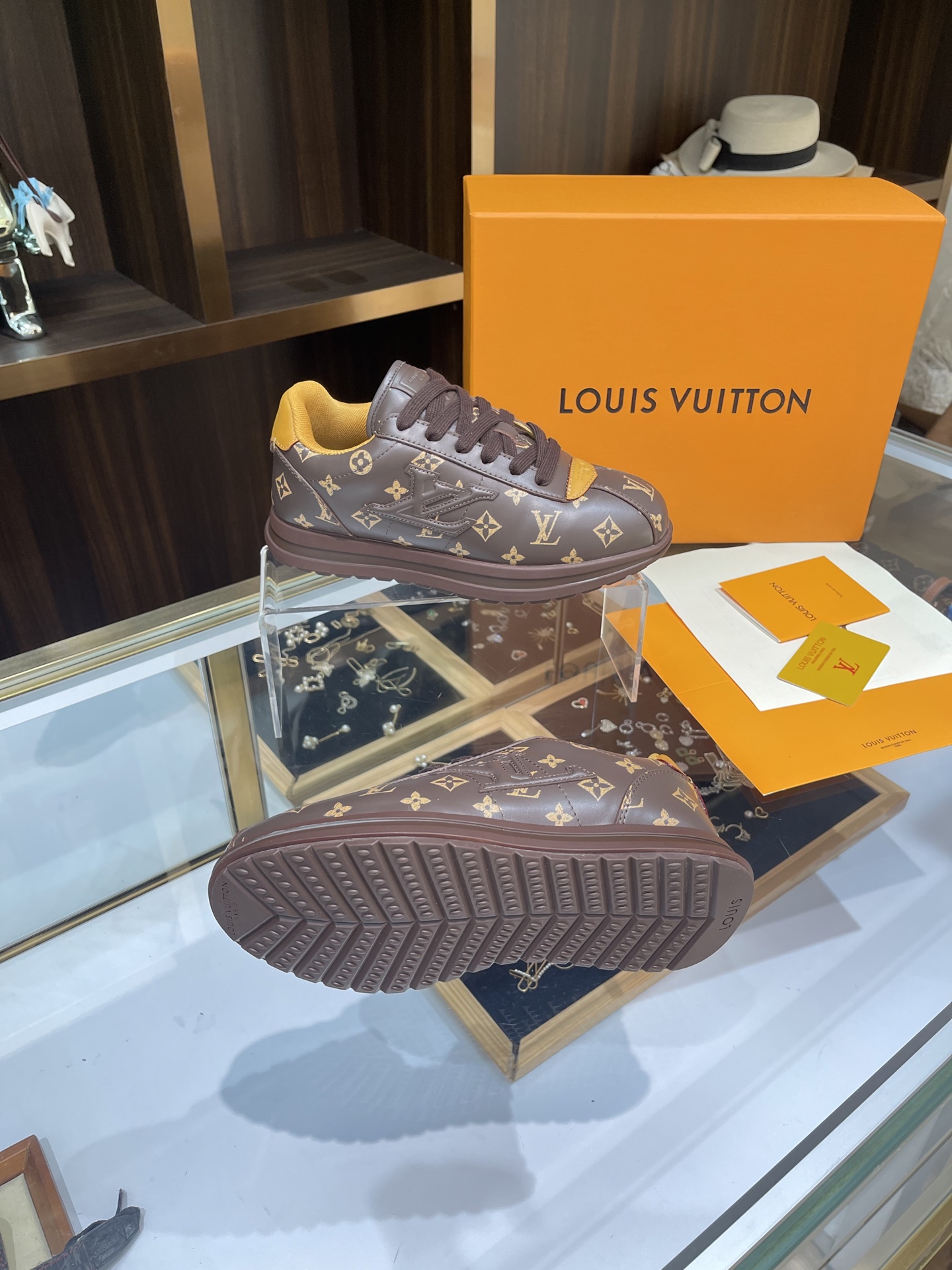 这款鞋子是AAAAA 1:1 质量 (非常棒). 使用了和原版一模一样的材料. 商标部分也保持了和路易威登/Louis Vuitton一样. 图片拍摄是实物鞋子拍摄, 您所收到的实物保证和我们图片一模一样.