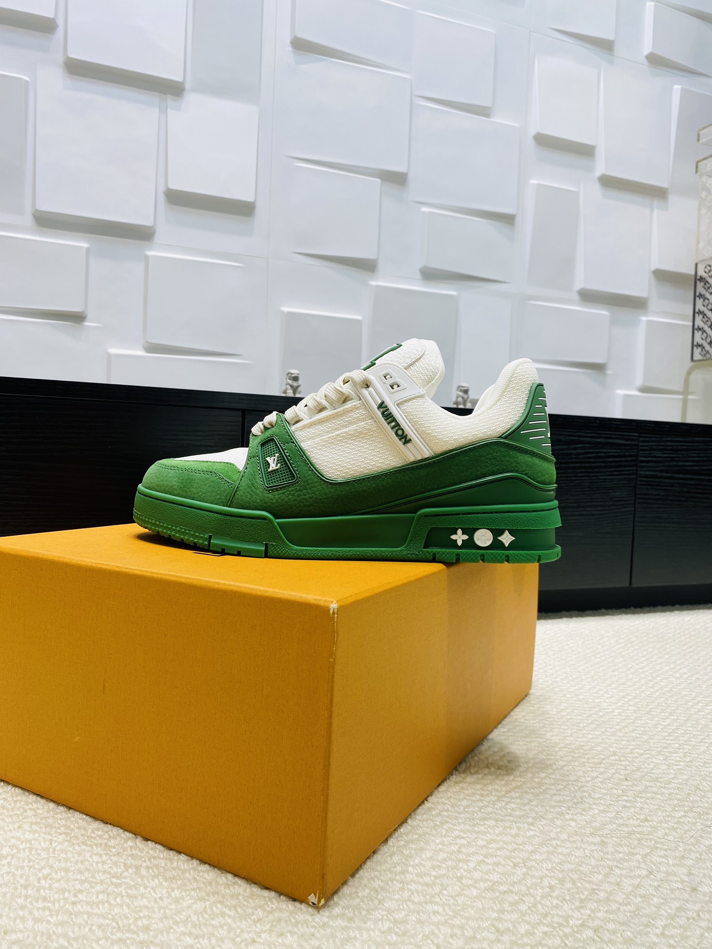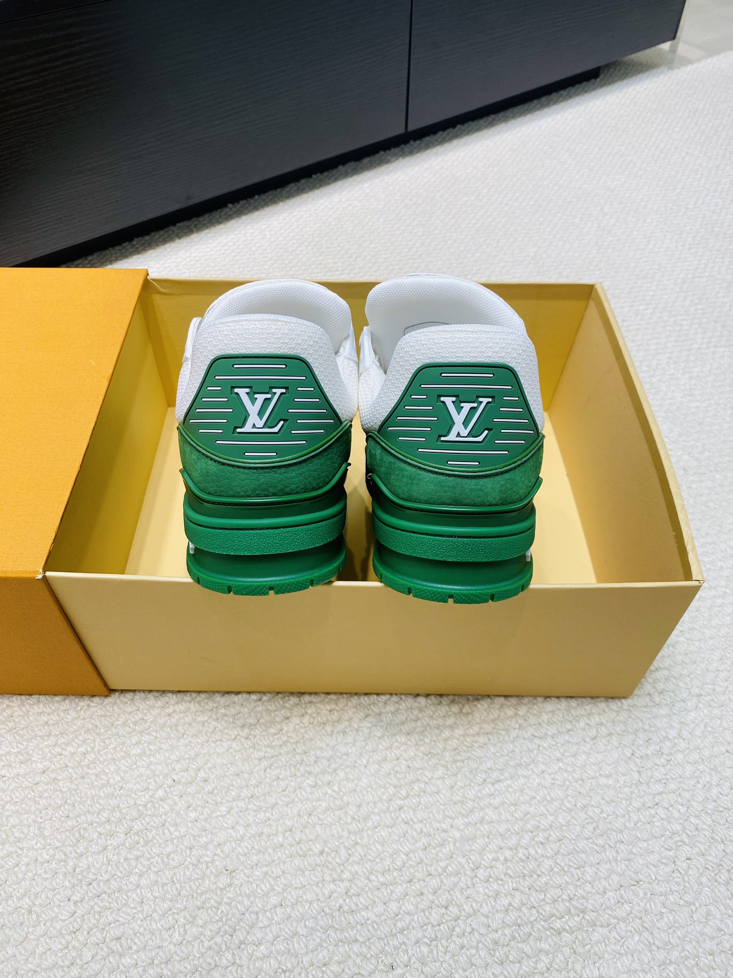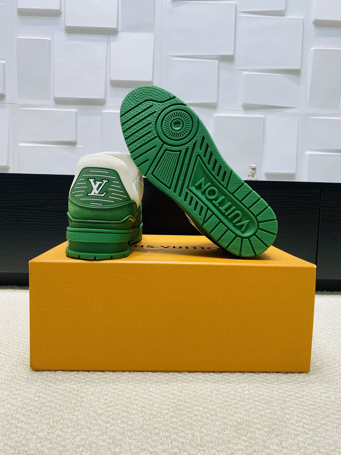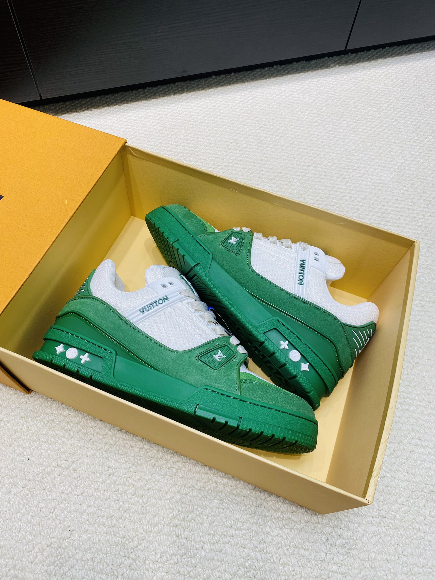 这款鞋子是AAAAA 1:1 质量 (非常棒). 使用了和原版一模一样的材料. 商标部分也保持了和路易威登/Louis Vuitton一样. 图片拍摄是实物鞋子拍摄, 您所收到的实物保证和我们图片一模一样.