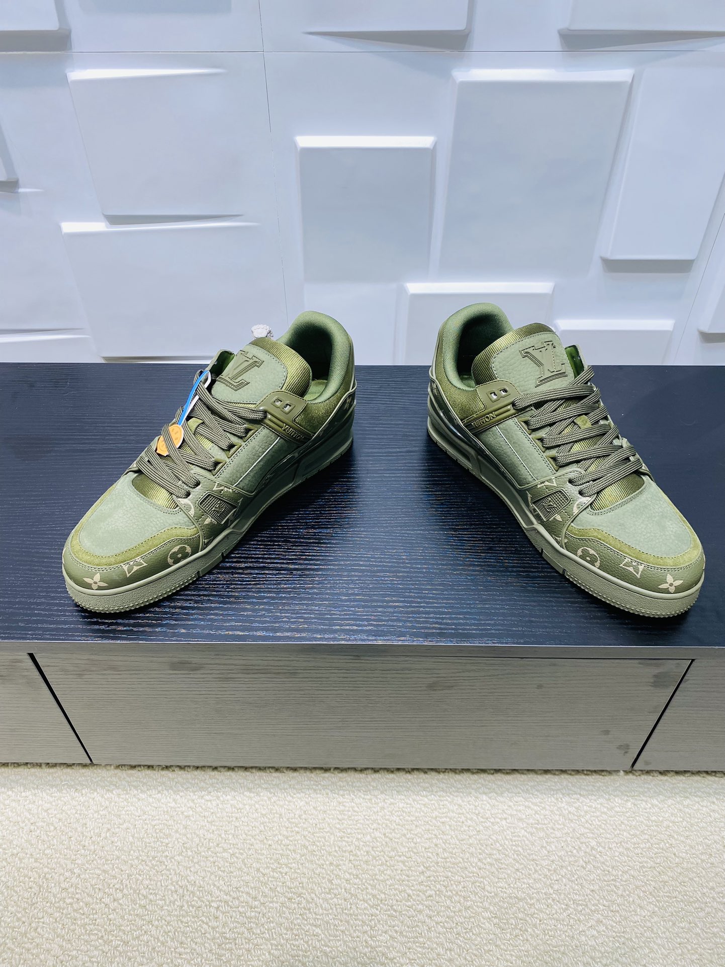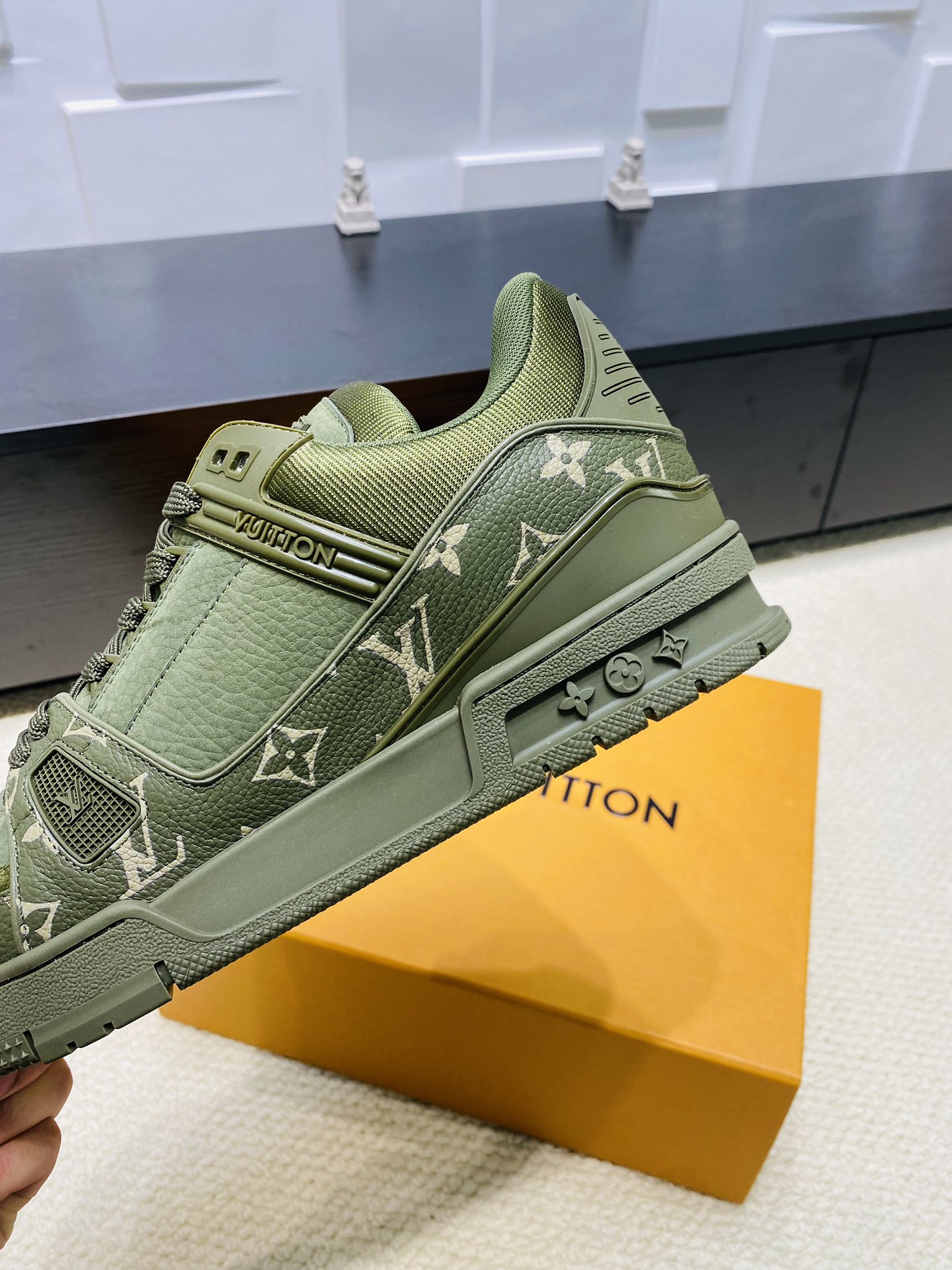 这款鞋子是AAAAA 1:1 质量 (非常棒). 使用了和原版一模一样的材料. 商标部分也保持了和路易威登/Louis Vuitton一样. 图片拍摄是实物鞋子拍摄, 您所收到的实物保证和我们图片一模一样.