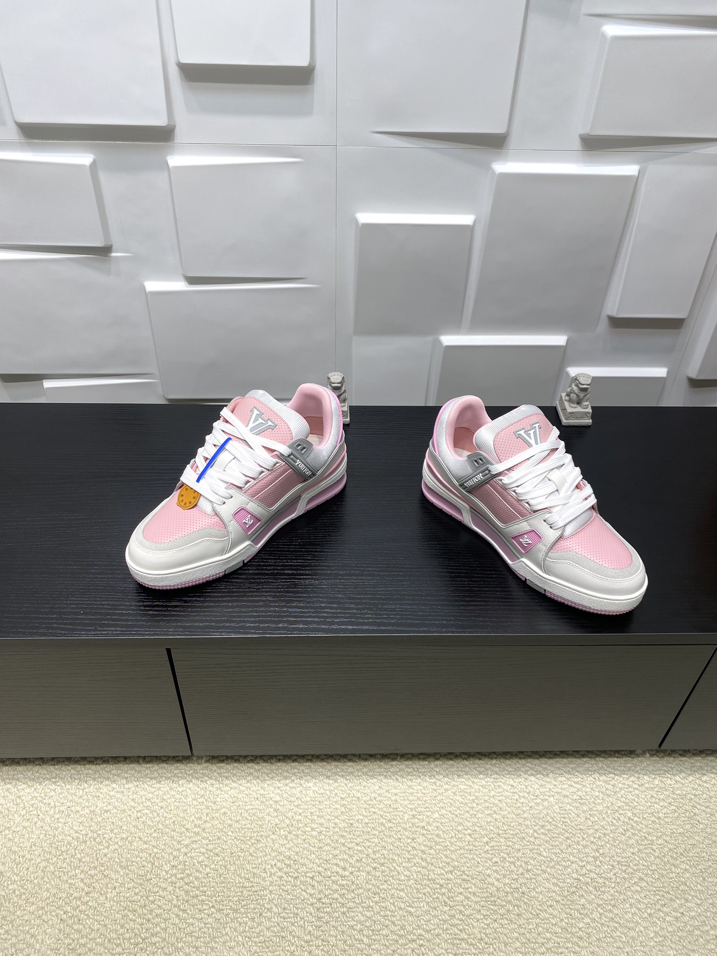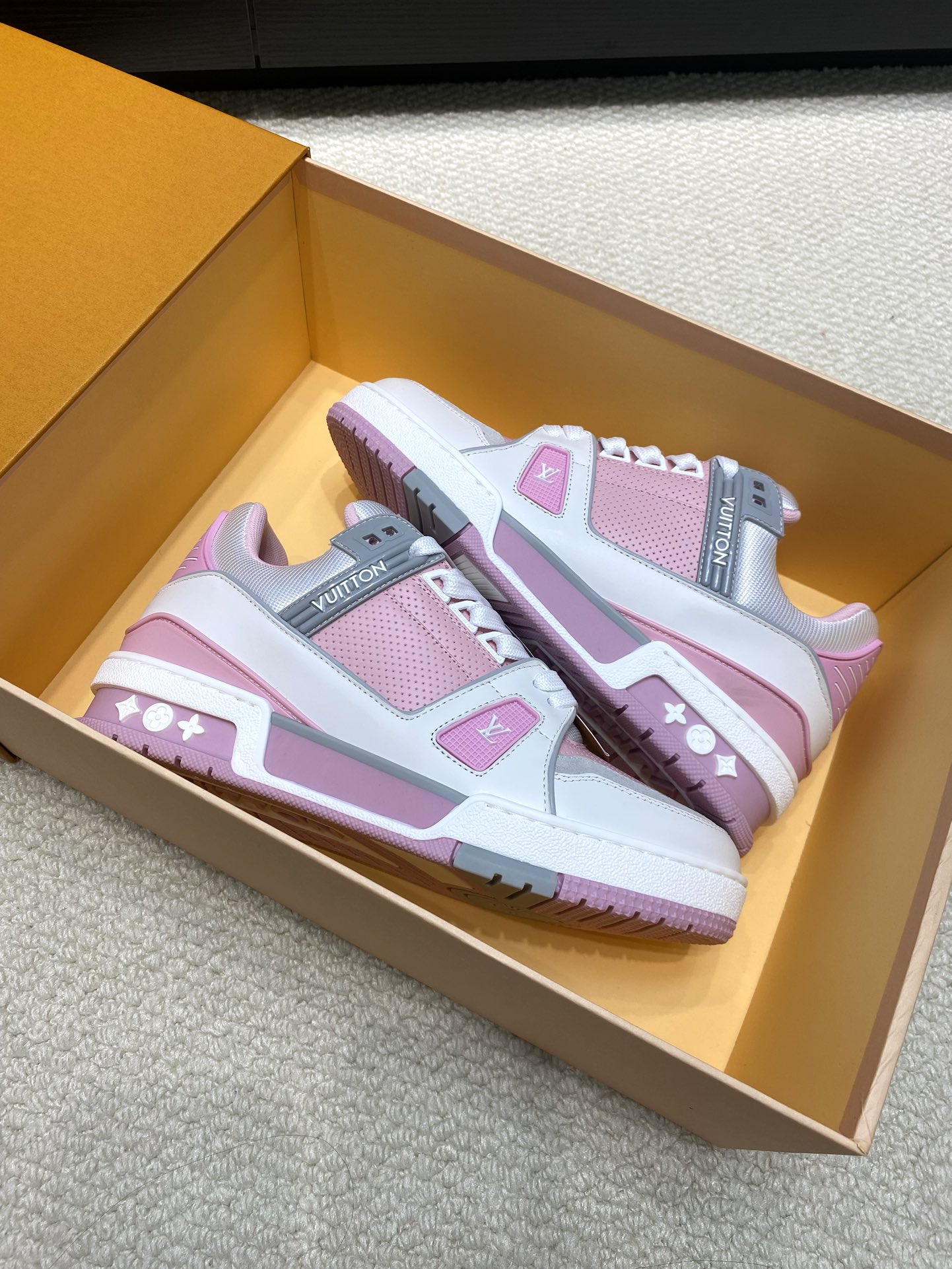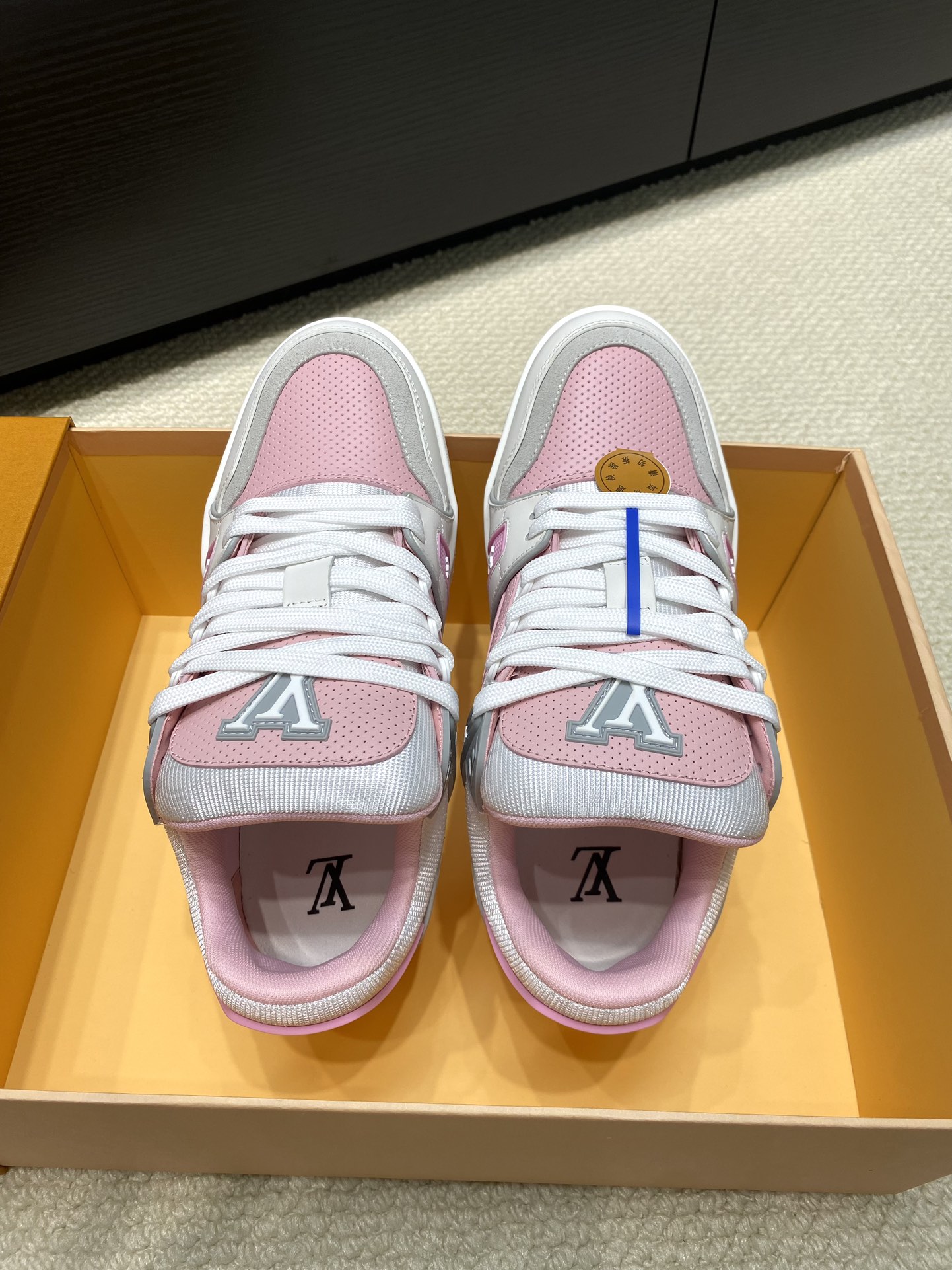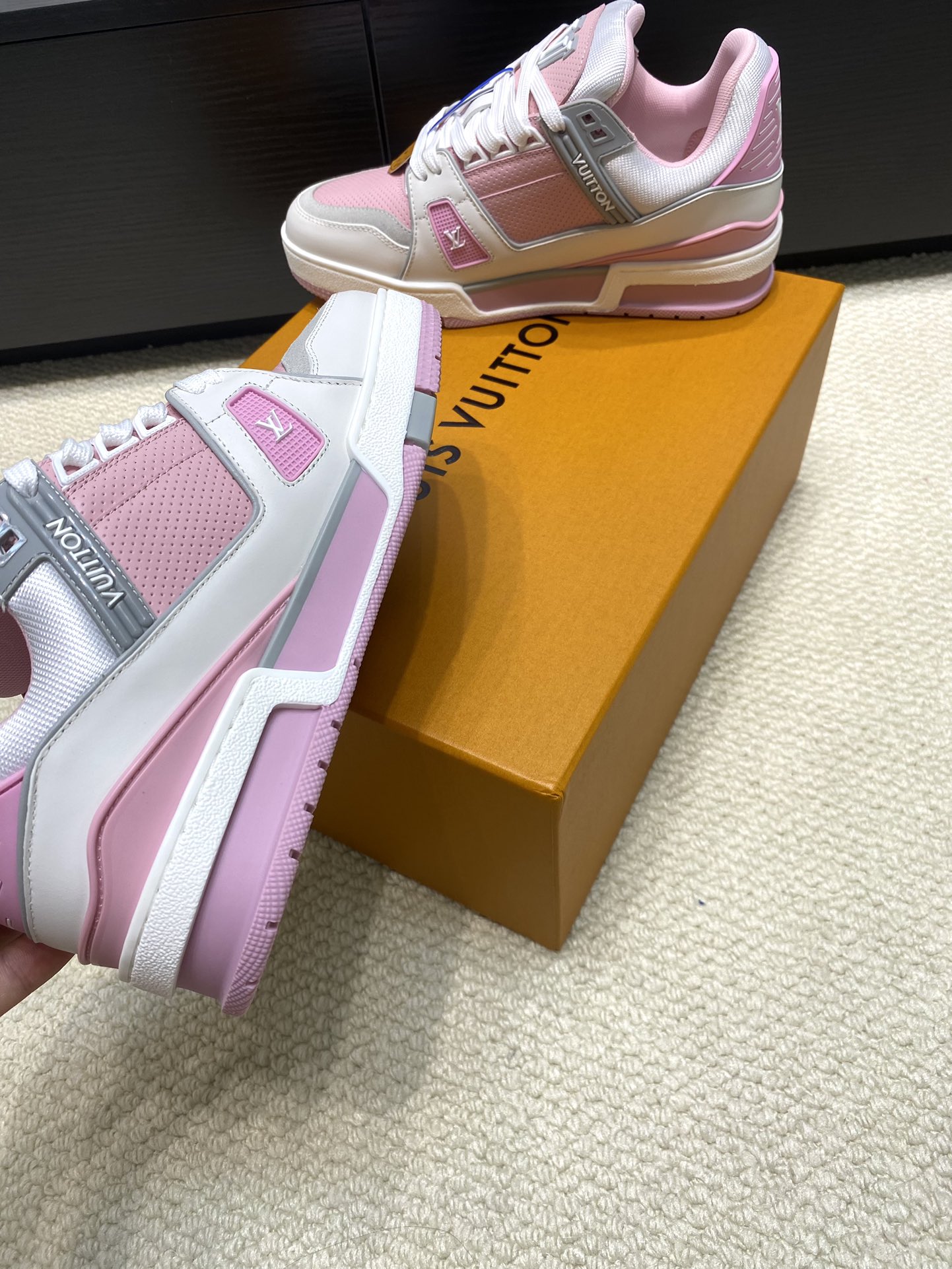 这款鞋子是AAAAA 1:1 质量 (非常棒). 使用了和原版一模一样的材料. 商标部分也保持了和路易威登/Louis Vuitton一样. 图片拍摄是实物鞋子拍摄, 您所收到的实物保证和我们图片一模一样.