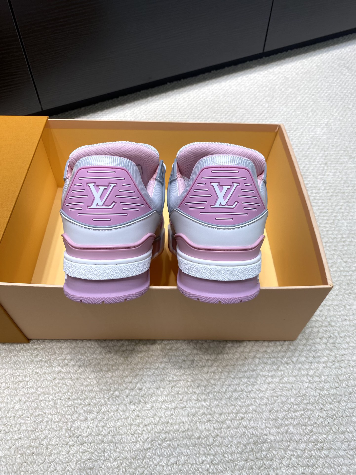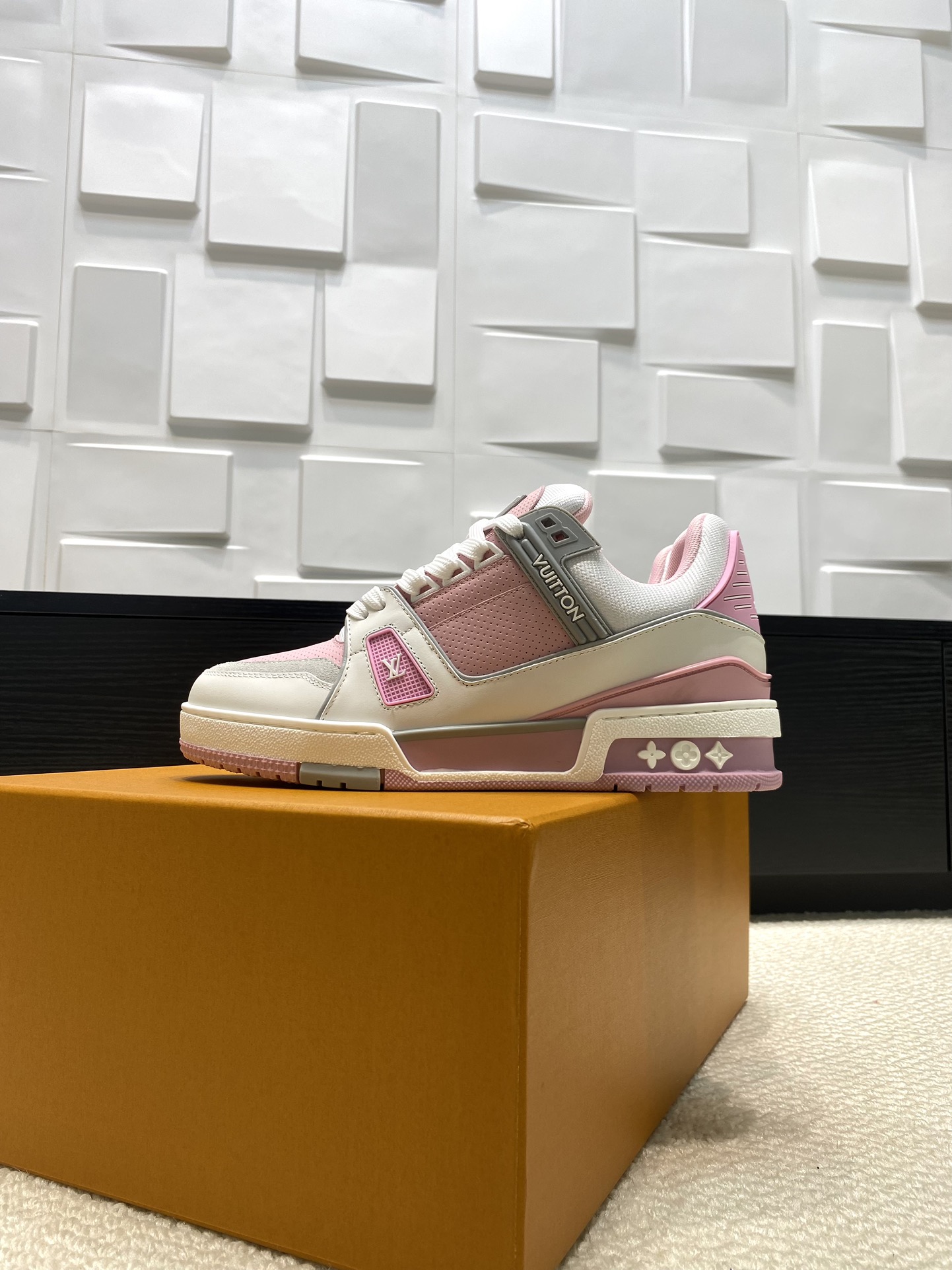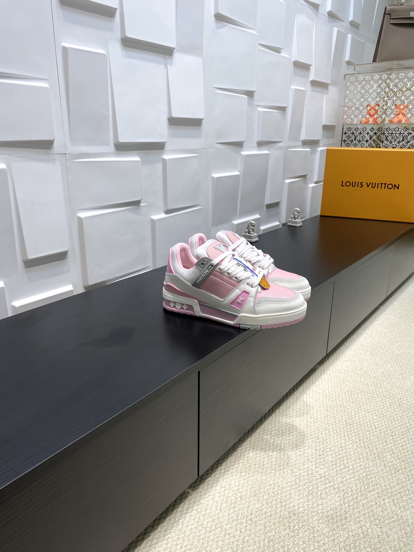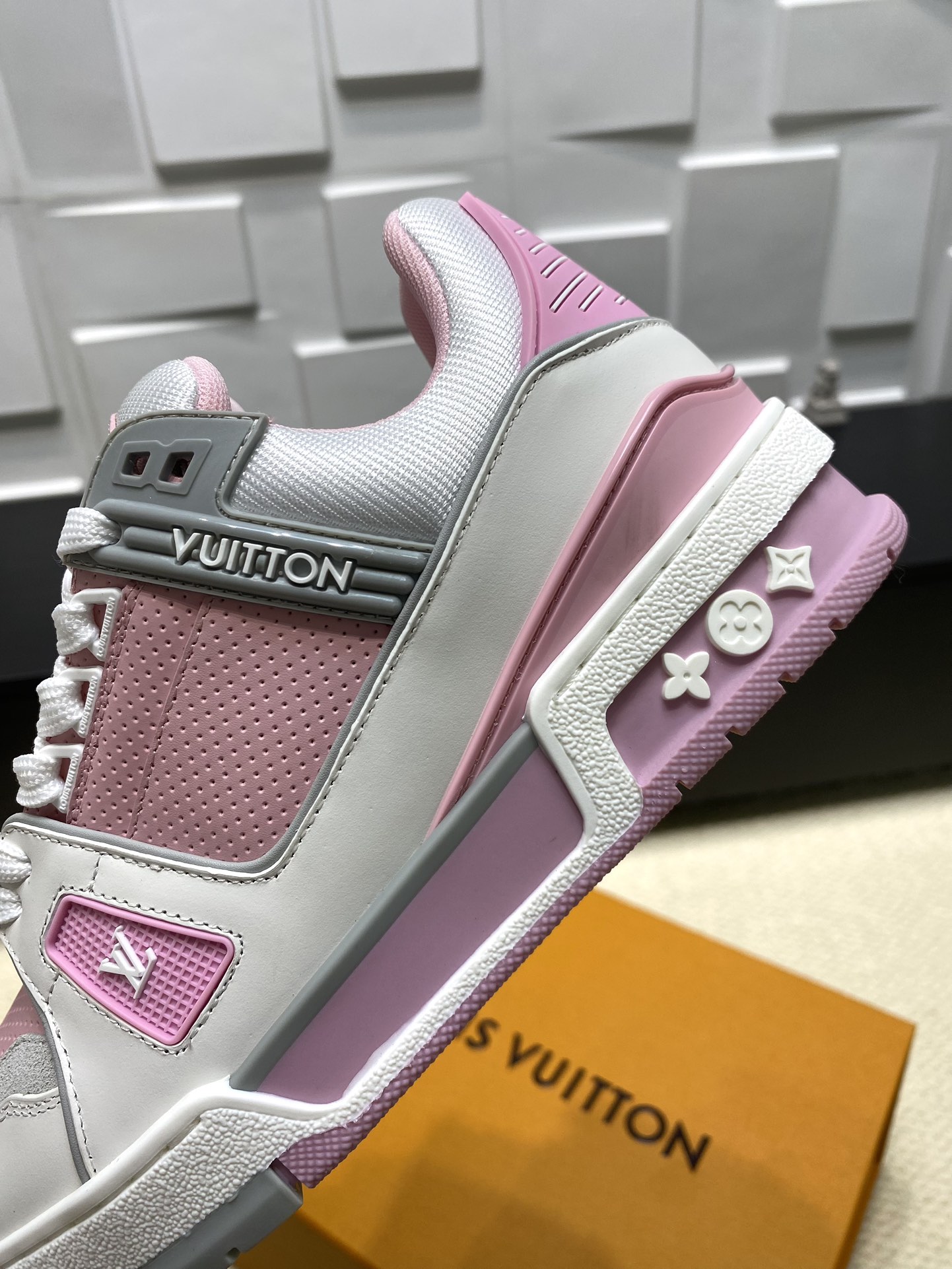 这款鞋子是AAAAA 1:1 质量 (非常棒). 使用了和原版一模一样的材料. 商标部分也保持了和路易威登/Louis Vuitton一样. 图片拍摄是实物鞋子拍摄, 您所收到的实物保证和我们图片一模一样.