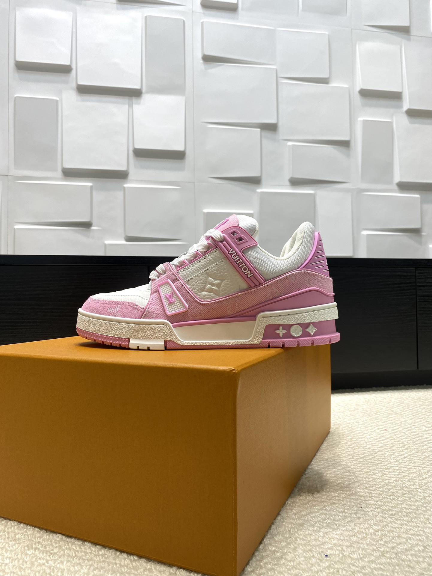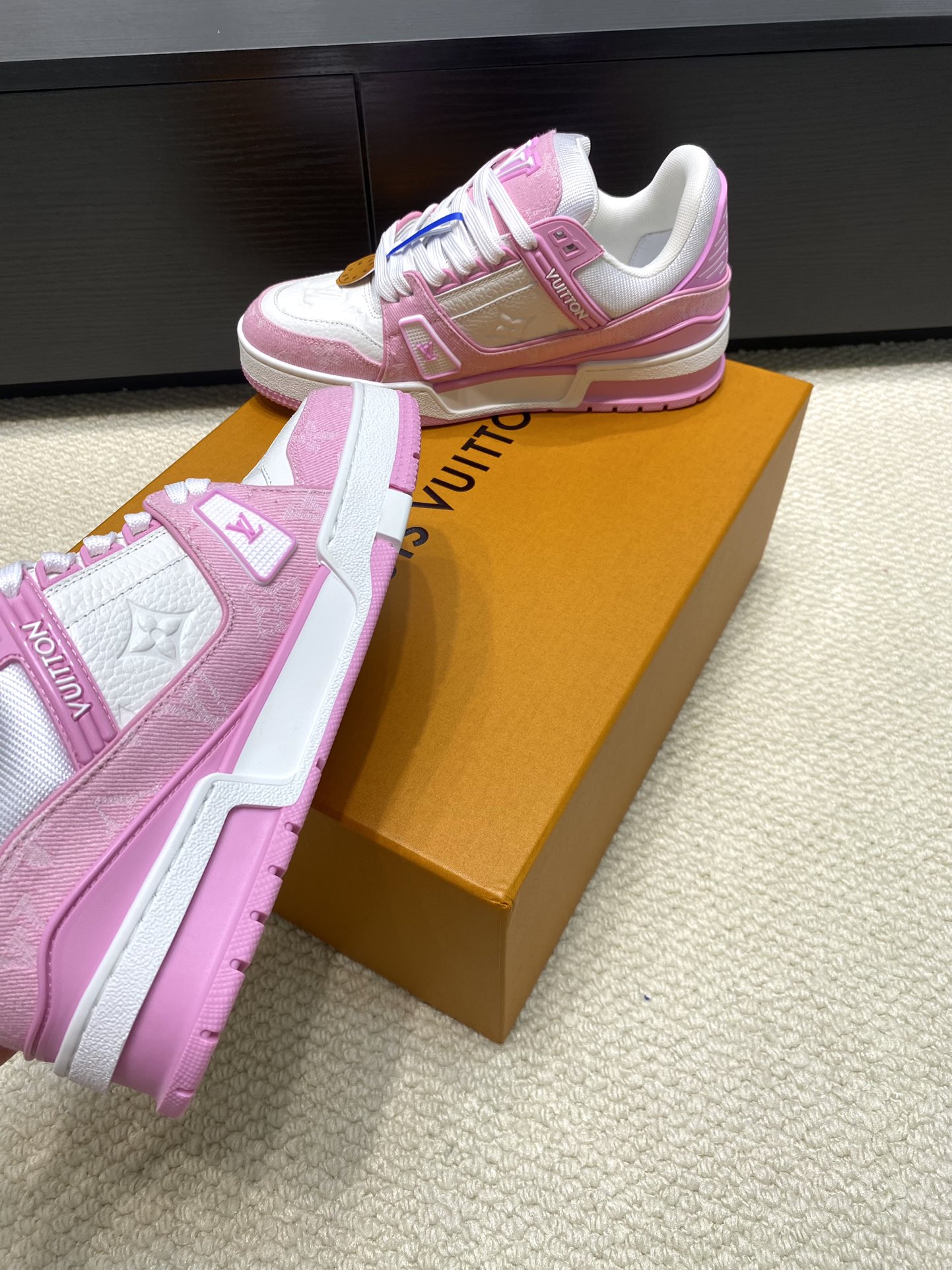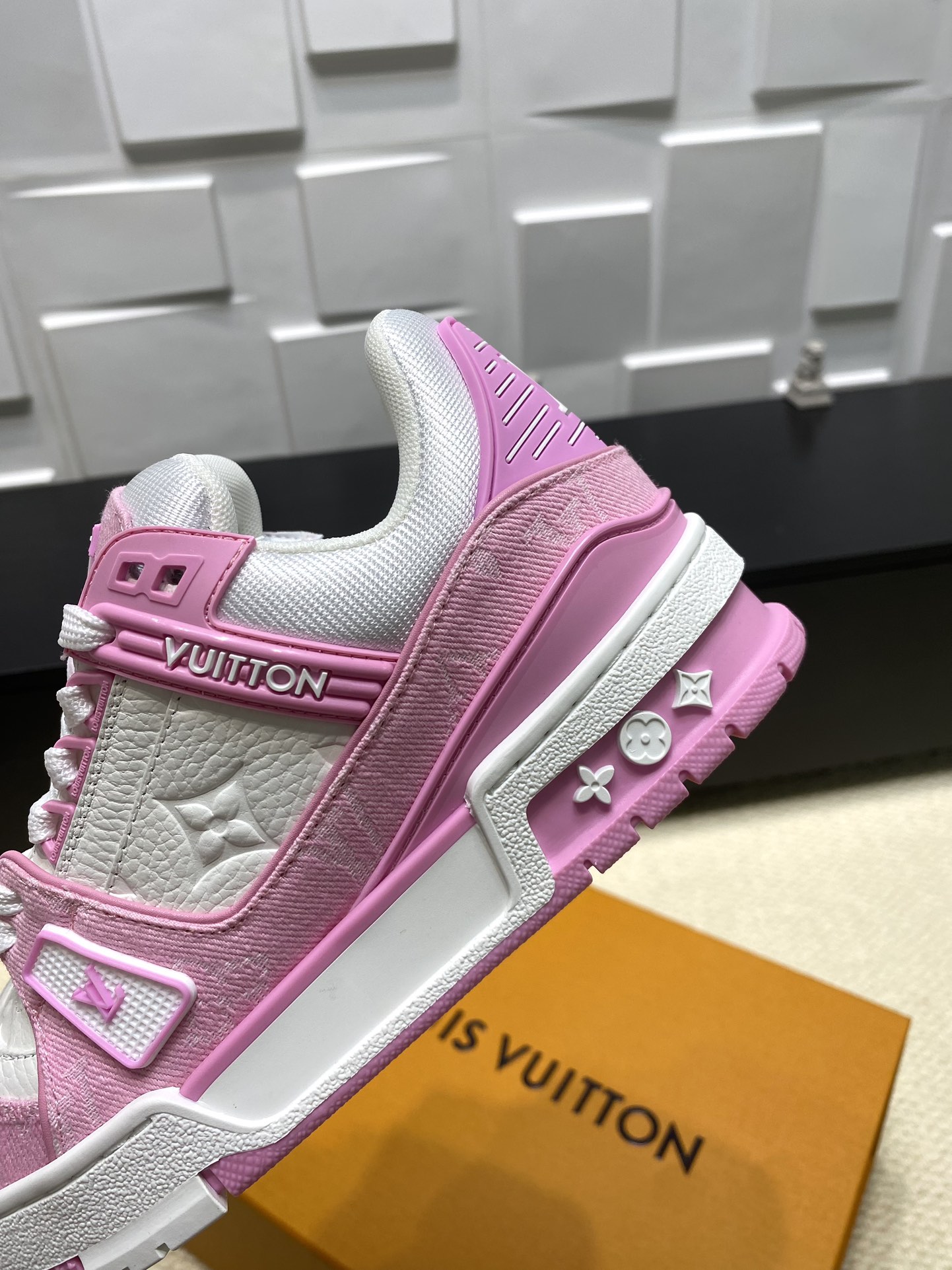 这款鞋子是AAAAA 1:1 质量 (非常棒). 使用了和原版一模一样的材料. 商标部分也保持了和路易威登/Louis Vuitton一样. 图片拍摄是实物鞋子拍摄, 您所收到的实物保证和我们图片一模一样.