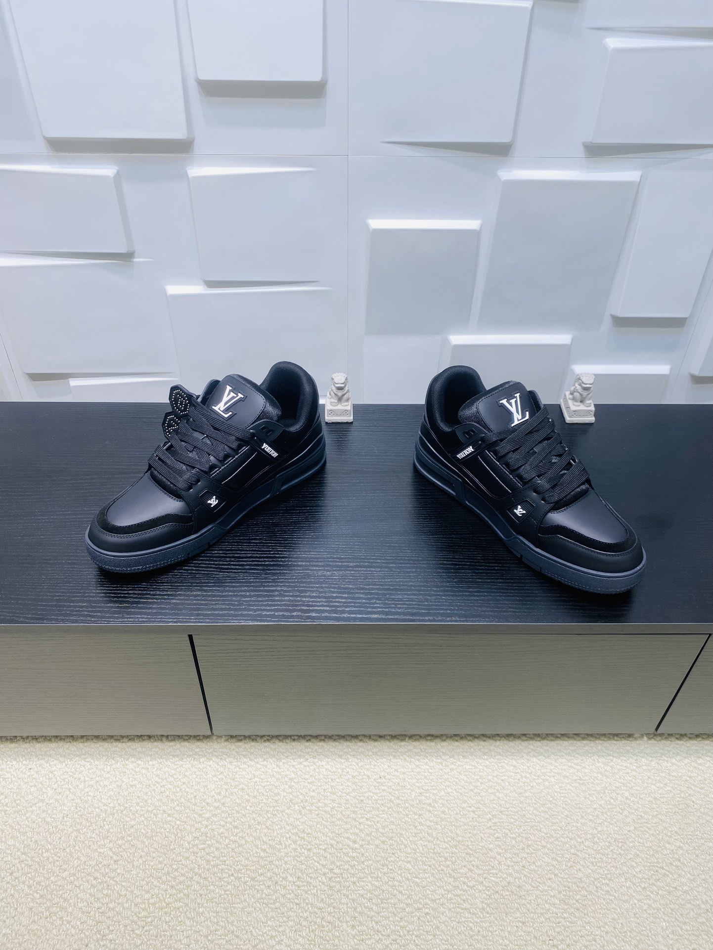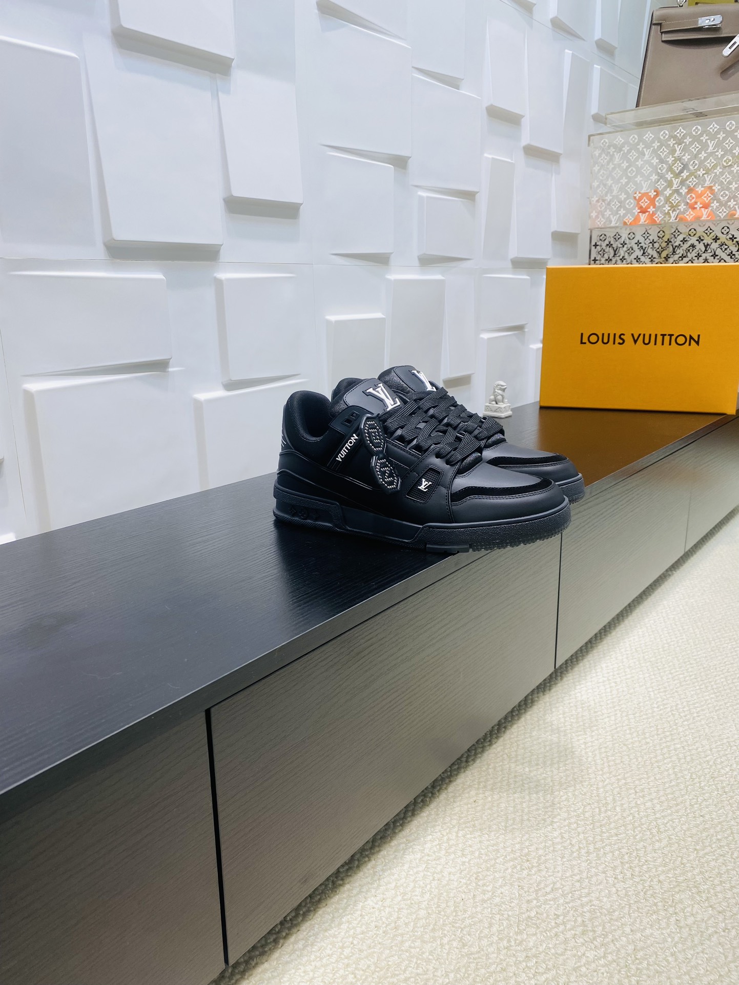 这款鞋子是AAAAA 1:1 质量 (非常棒). 使用了和原版一模一样的材料. 商标部分也保持了和路易威登/Louis Vuitton一样. 图片拍摄是实物鞋子拍摄, 您所收到的实物保证和我们图片一模一样.