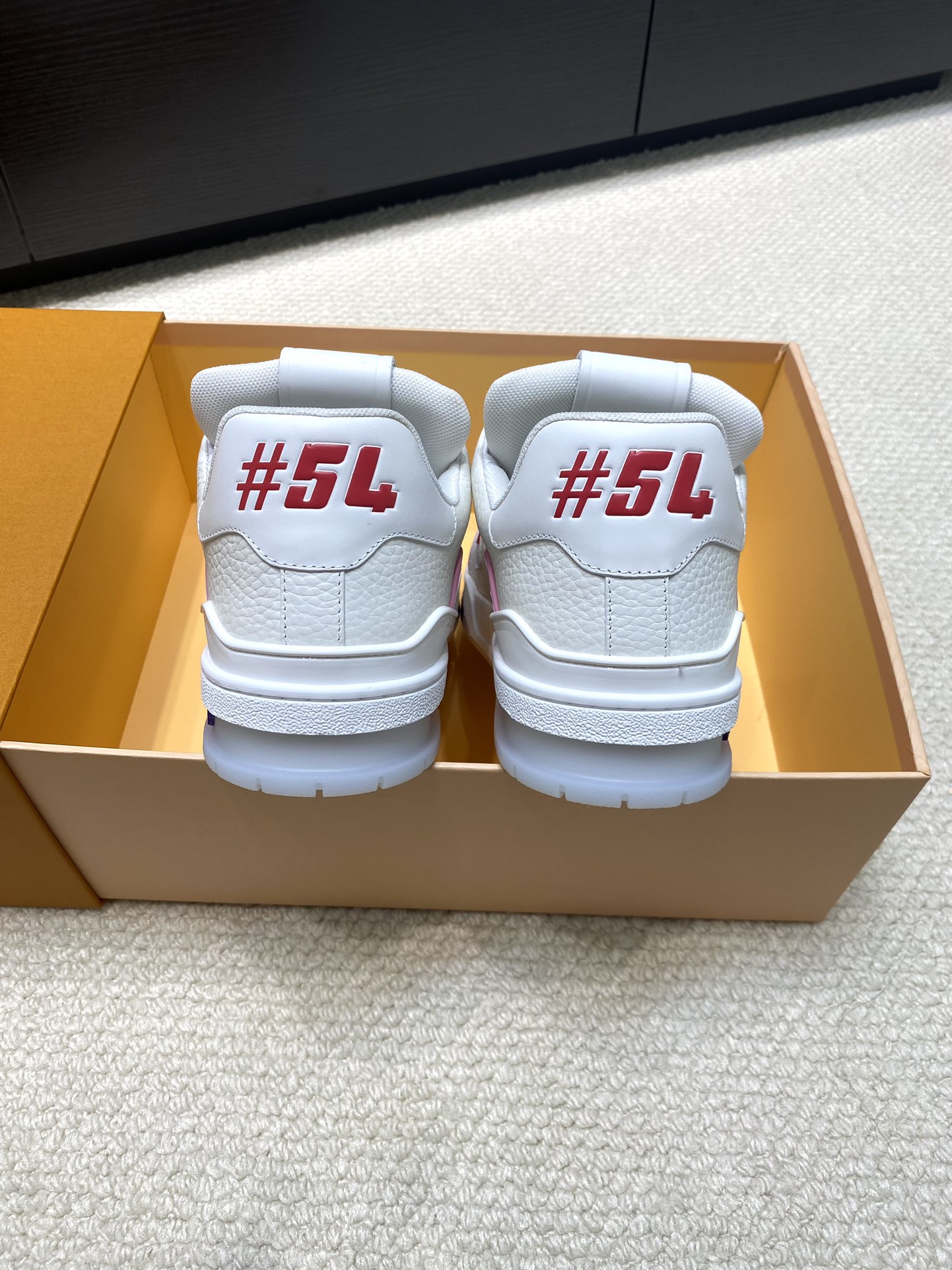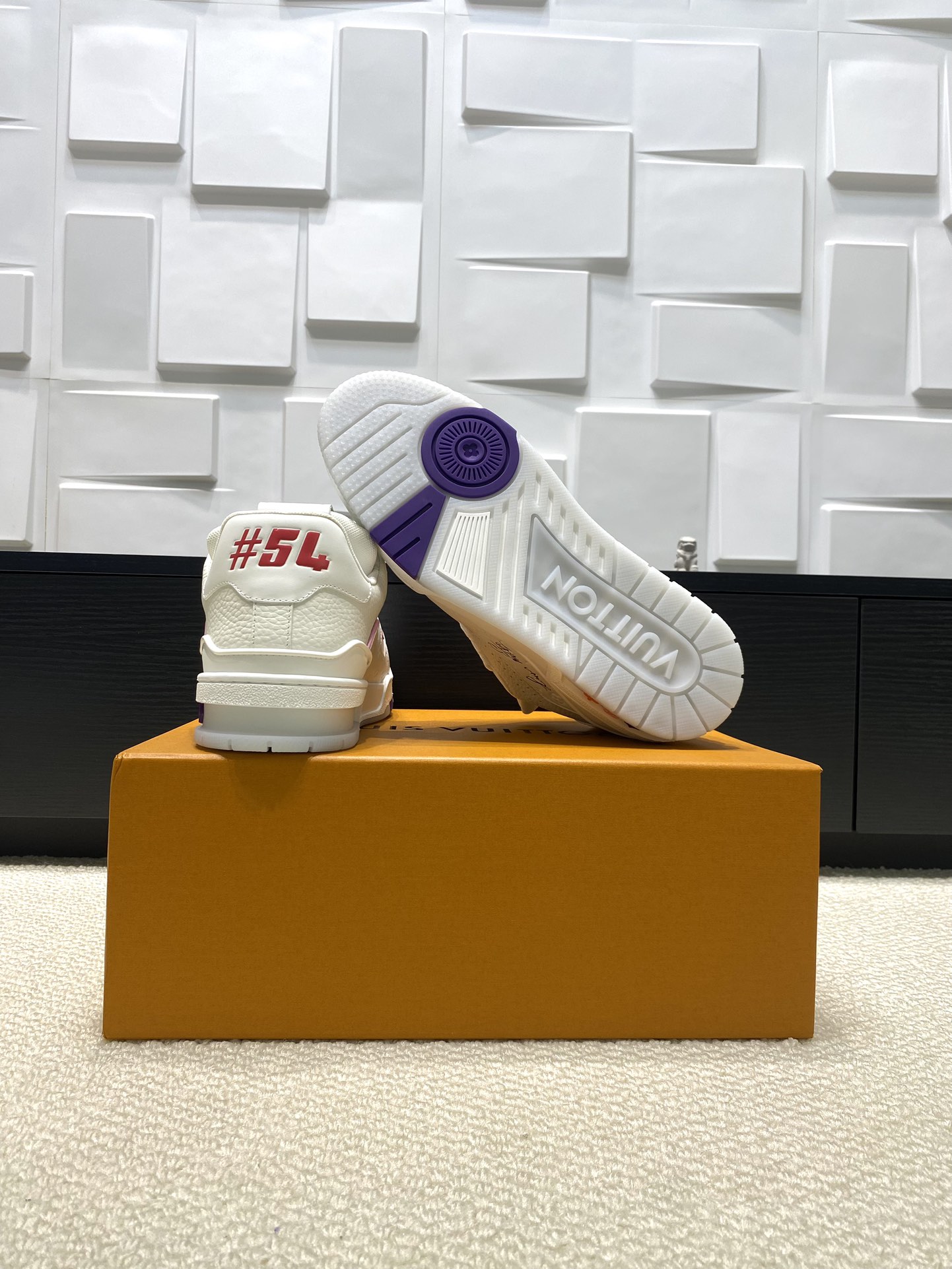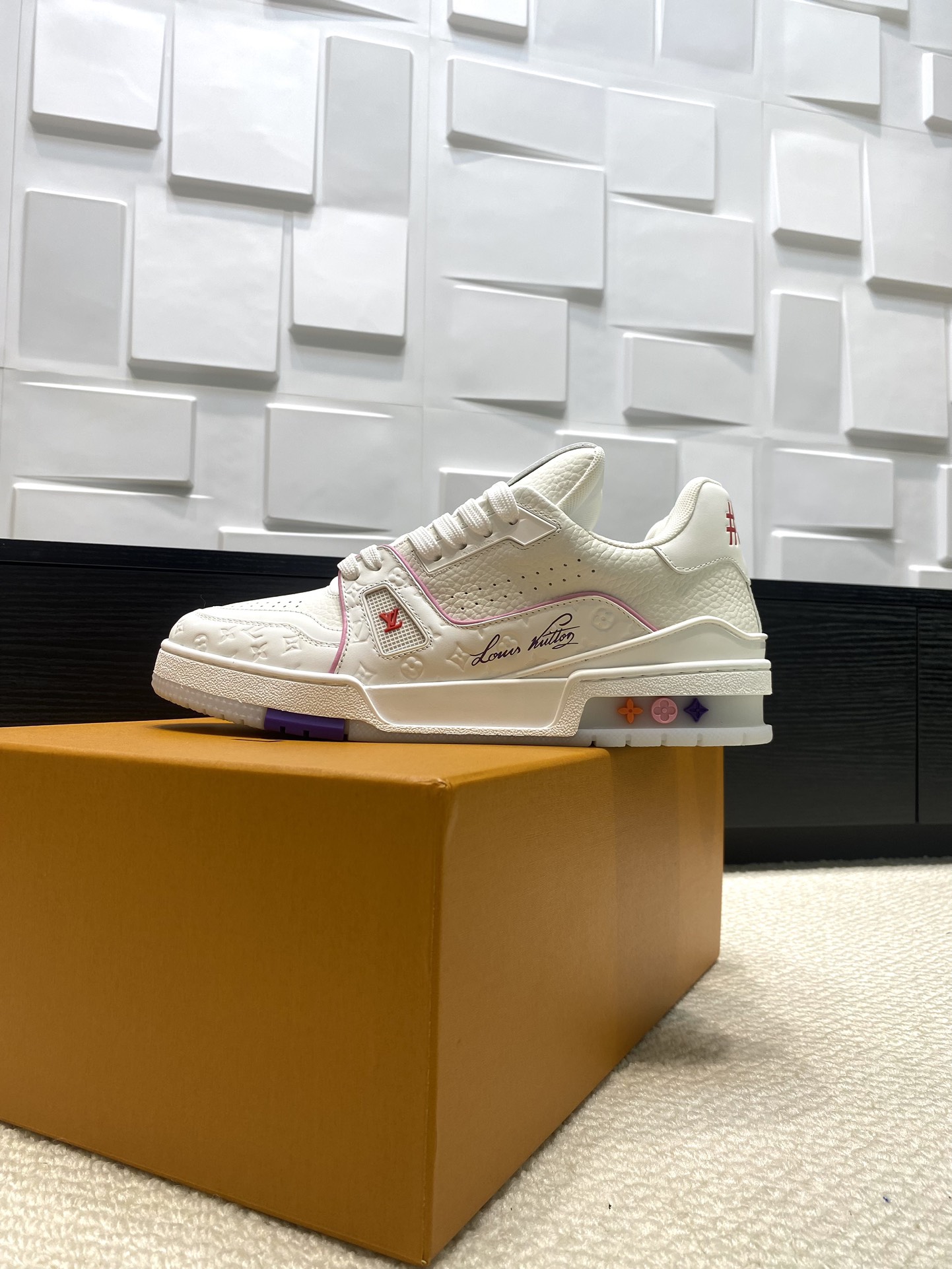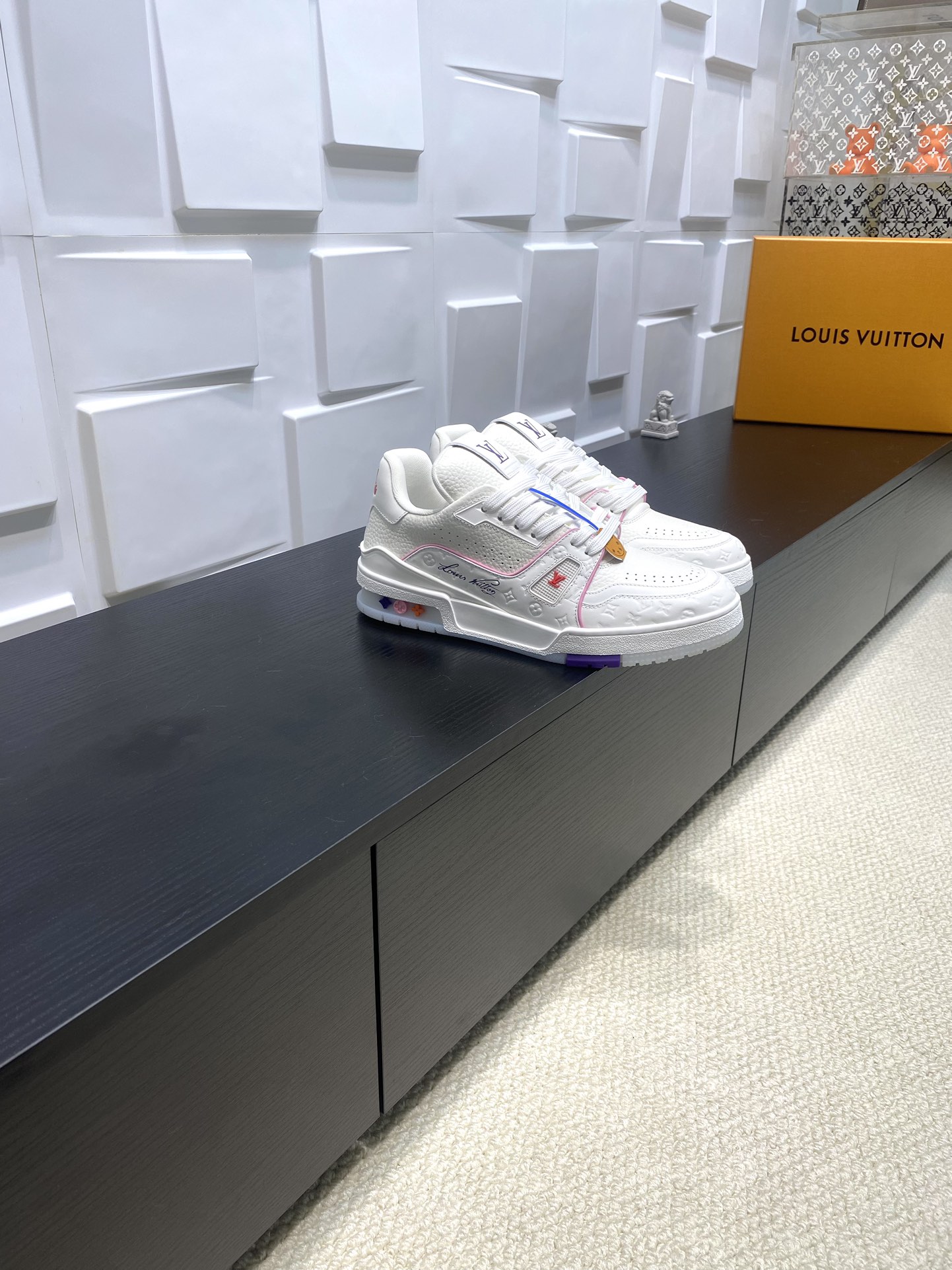这款鞋子是AAAAA 1:1 质量 (非常棒). 使用了和原版一模一样的材料. 商标部分也保持了和路易威登/Louis Vuitton一样. 图片拍摄是实物鞋子拍摄, 您所收到的实物保证和我们图片一模一样.