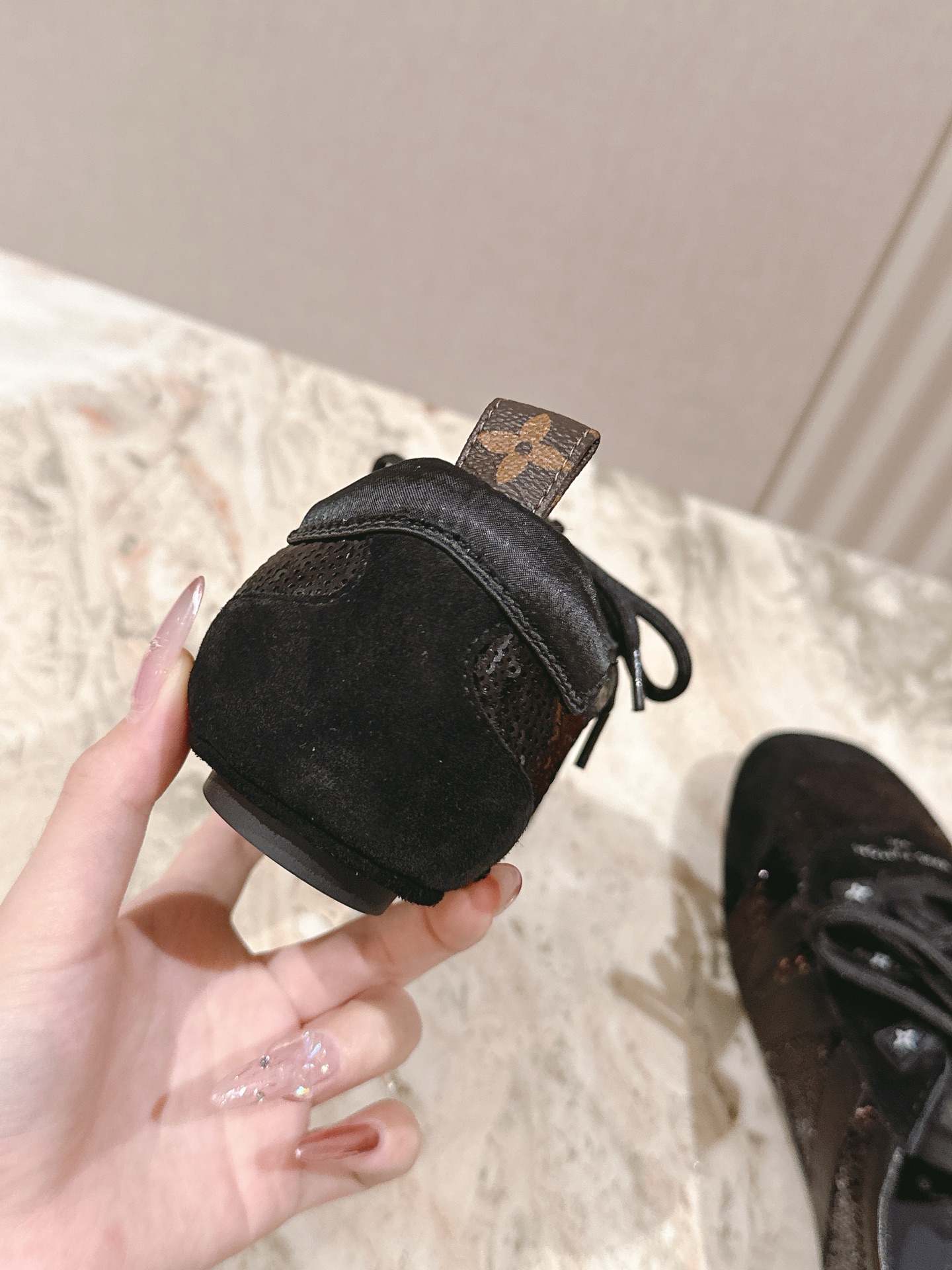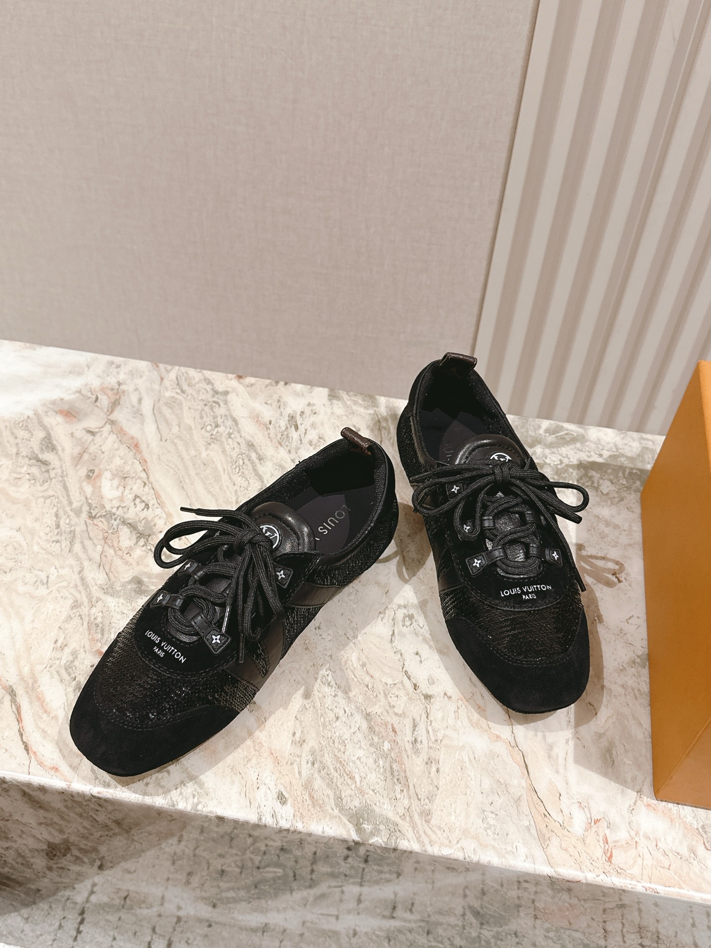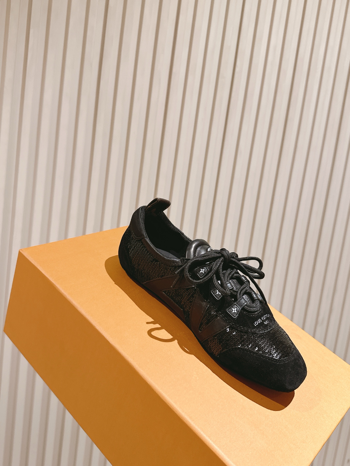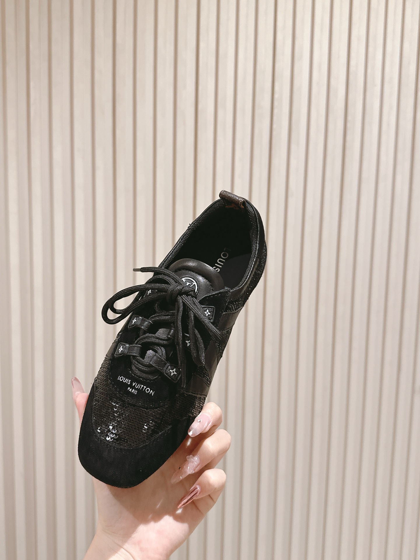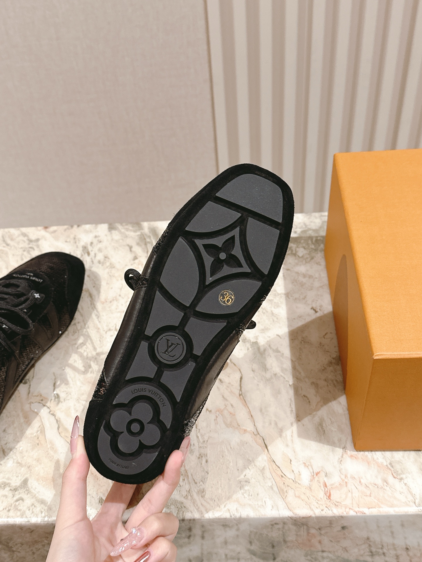 这款鞋子是AAAAA 1:1 质量 (非常棒). 使用了和原版一模一样的材料. 商标部分也保持了和路易威登/Louis Vuitton一样. 图片拍摄是实物鞋子拍摄, 您所收到的实物保证和我们图片一模一样.