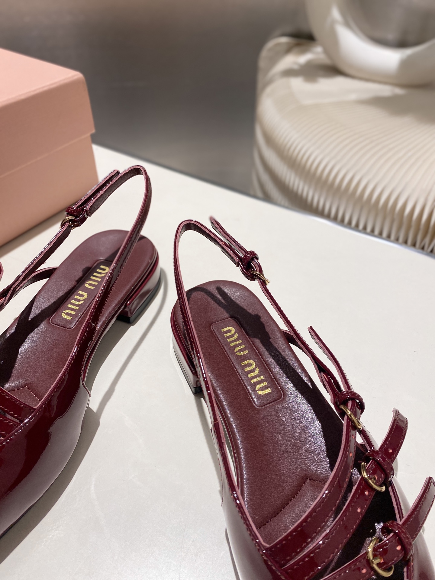 这款鞋子是AAAAA 1:1 质量 (非常棒). 使用了和原版一模一样的材料. 商标部分也保持了和缪缪/Miu Miu一样. 图片拍摄是实物鞋子拍摄, 您所收到的实物保证和我们图片一模一样.
