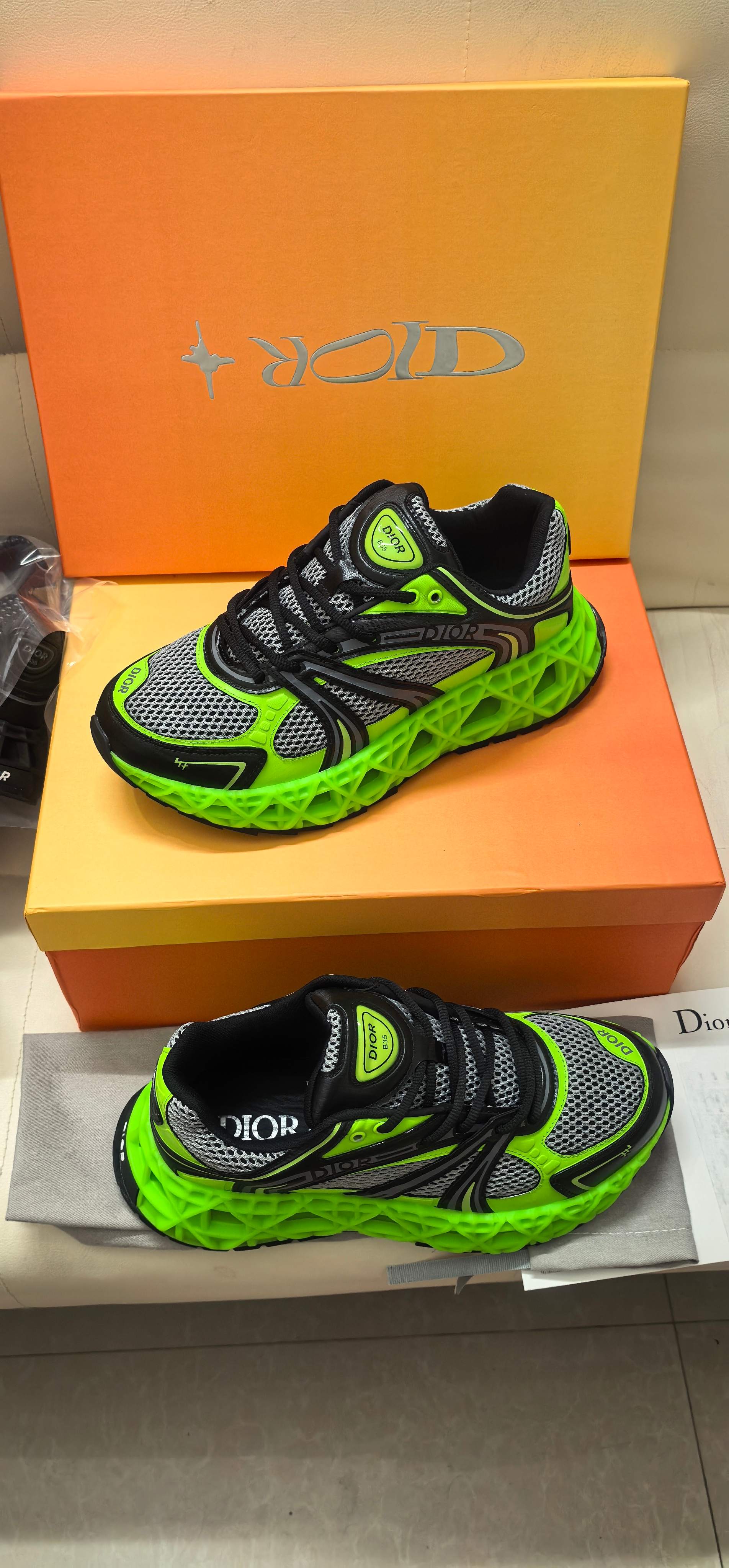 这款鞋子是AAAAA 1:1 质量 (非常棒). 使用了和原版一模一样的材料. 商标部分也保持了和迪奥/Dior一样. 图片拍摄是实物鞋子拍摄, 您所收到的实物保证和我们图片一模一样.