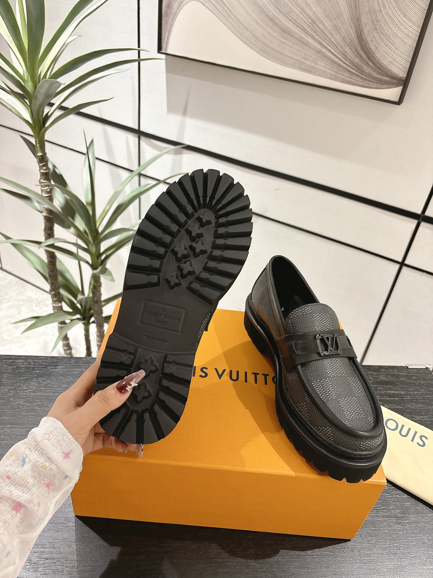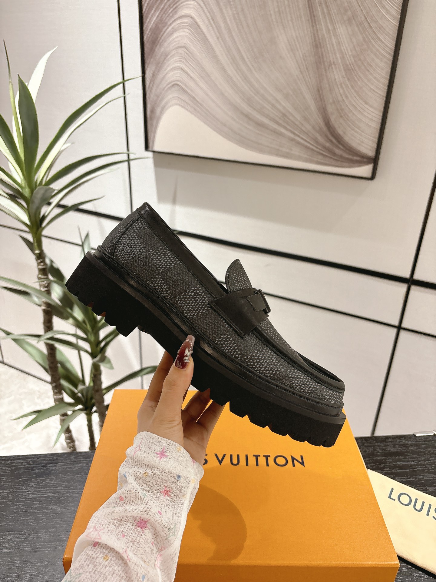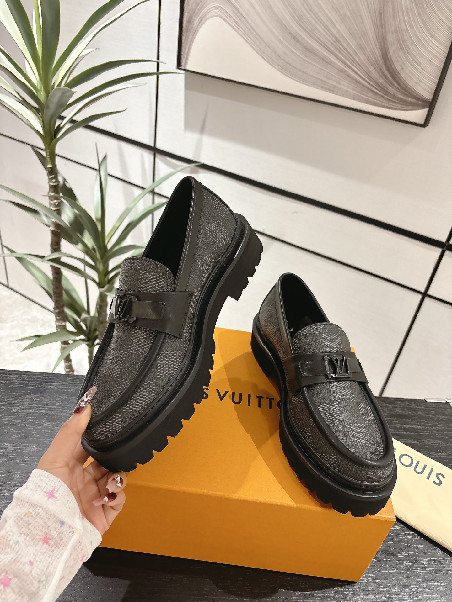 这款鞋子是AAAAA 1:1 质量 (非常棒). 使用了和原版一模一样的材料. 商标部分也保持了和路易威登/Louis Vuitton一样. 图片拍摄是实物鞋子拍摄, 您所收到的实物保证和我们图片一模一样.
