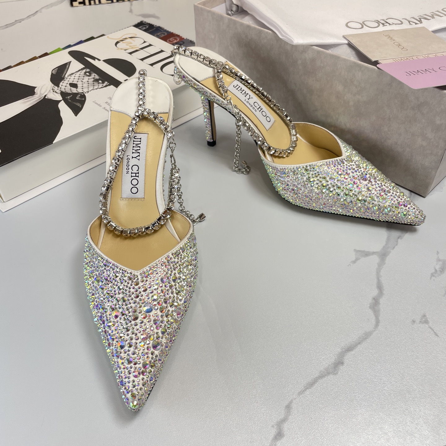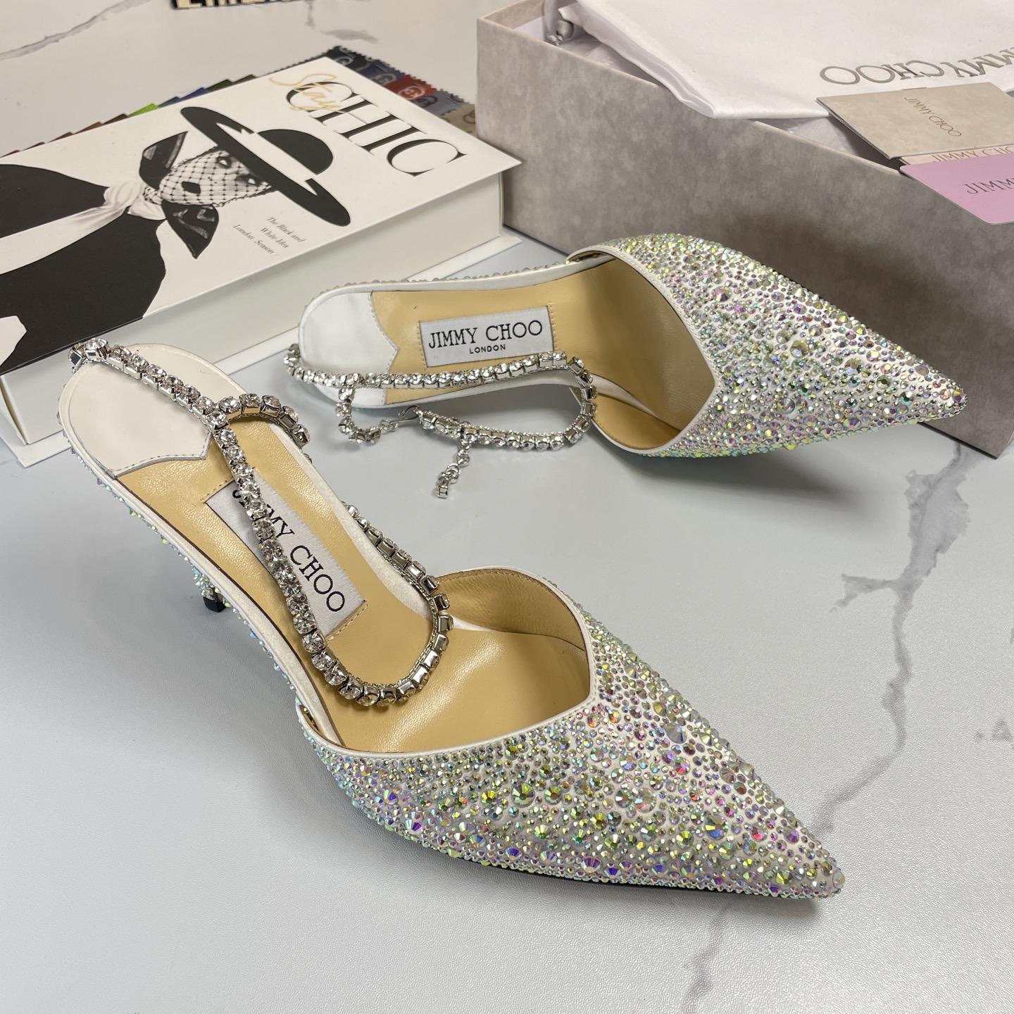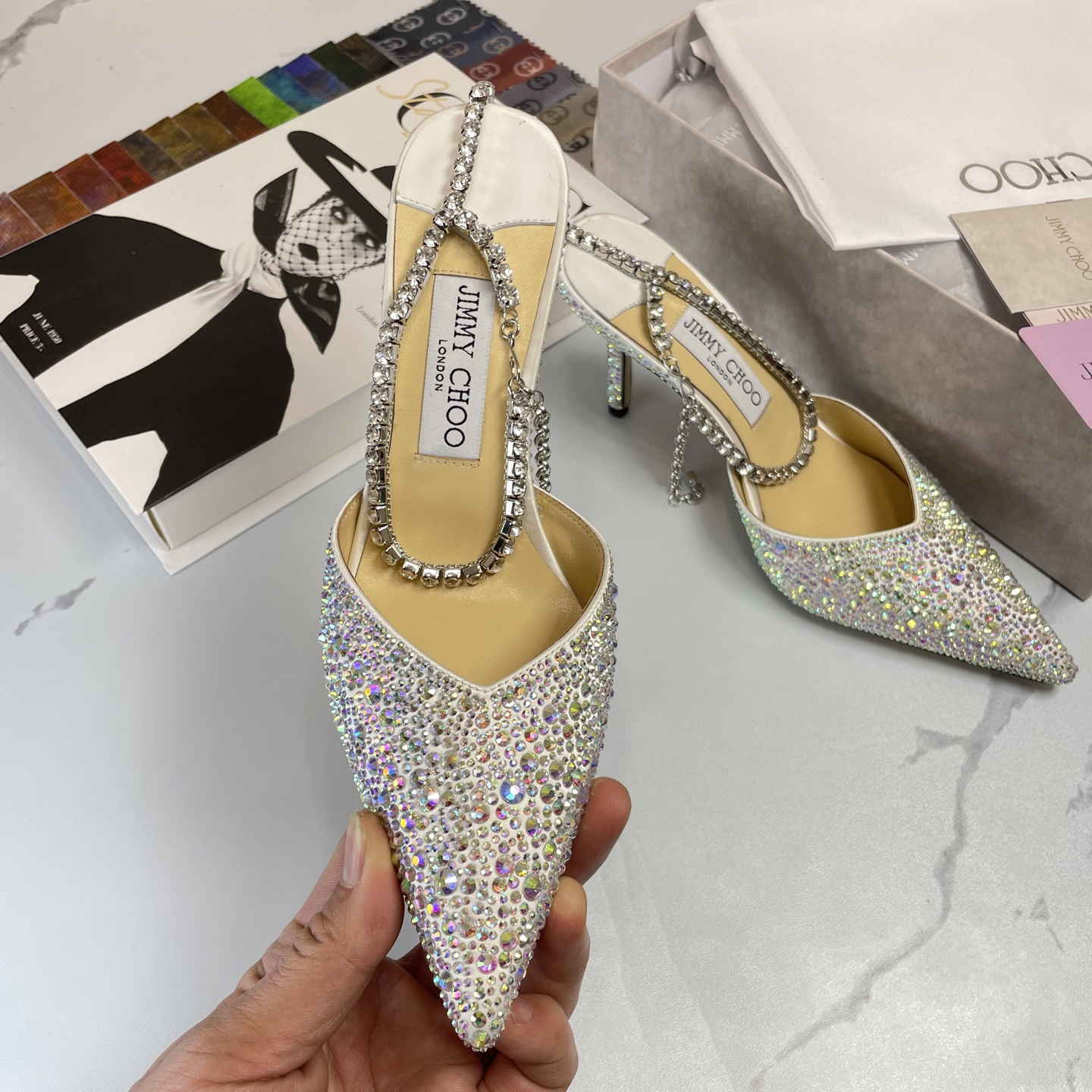 这款鞋子是AAAAA 1:1 质量 (非常棒). 使用了和原版一模一样的材料. 商标部分也保持了和吉米乔/JIMMY CHOO一样. 图片拍摄是实物鞋子拍摄, 您所收到的实物保证和我们图片一模一样.