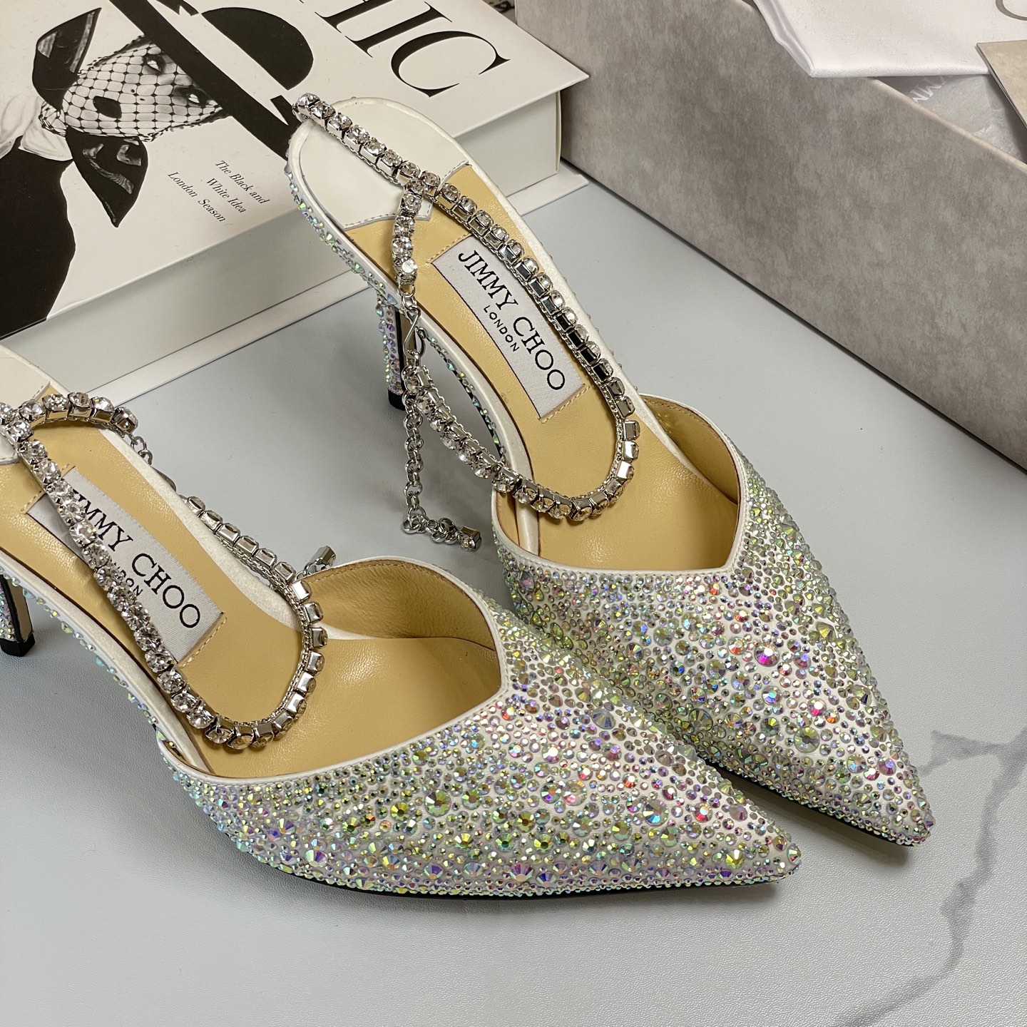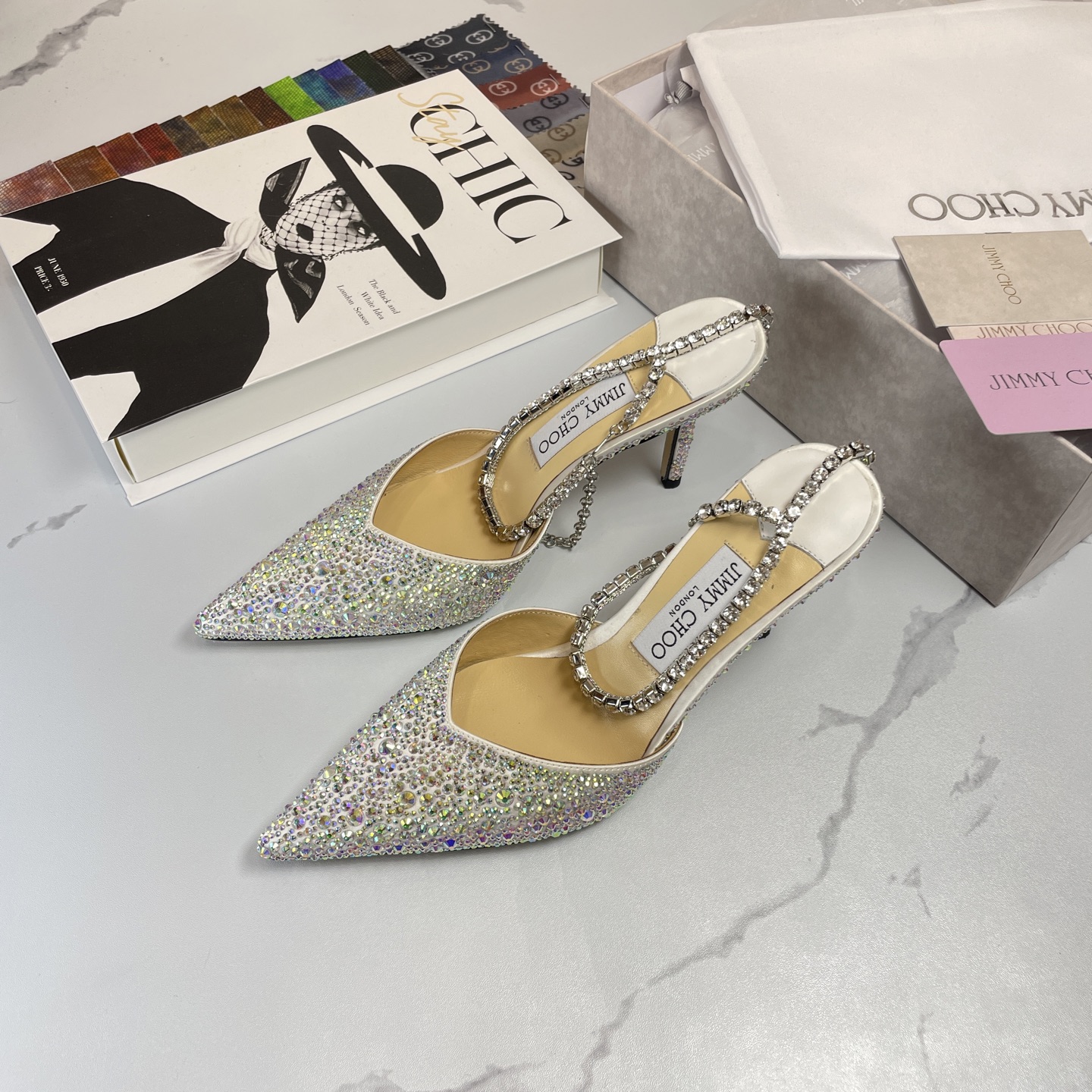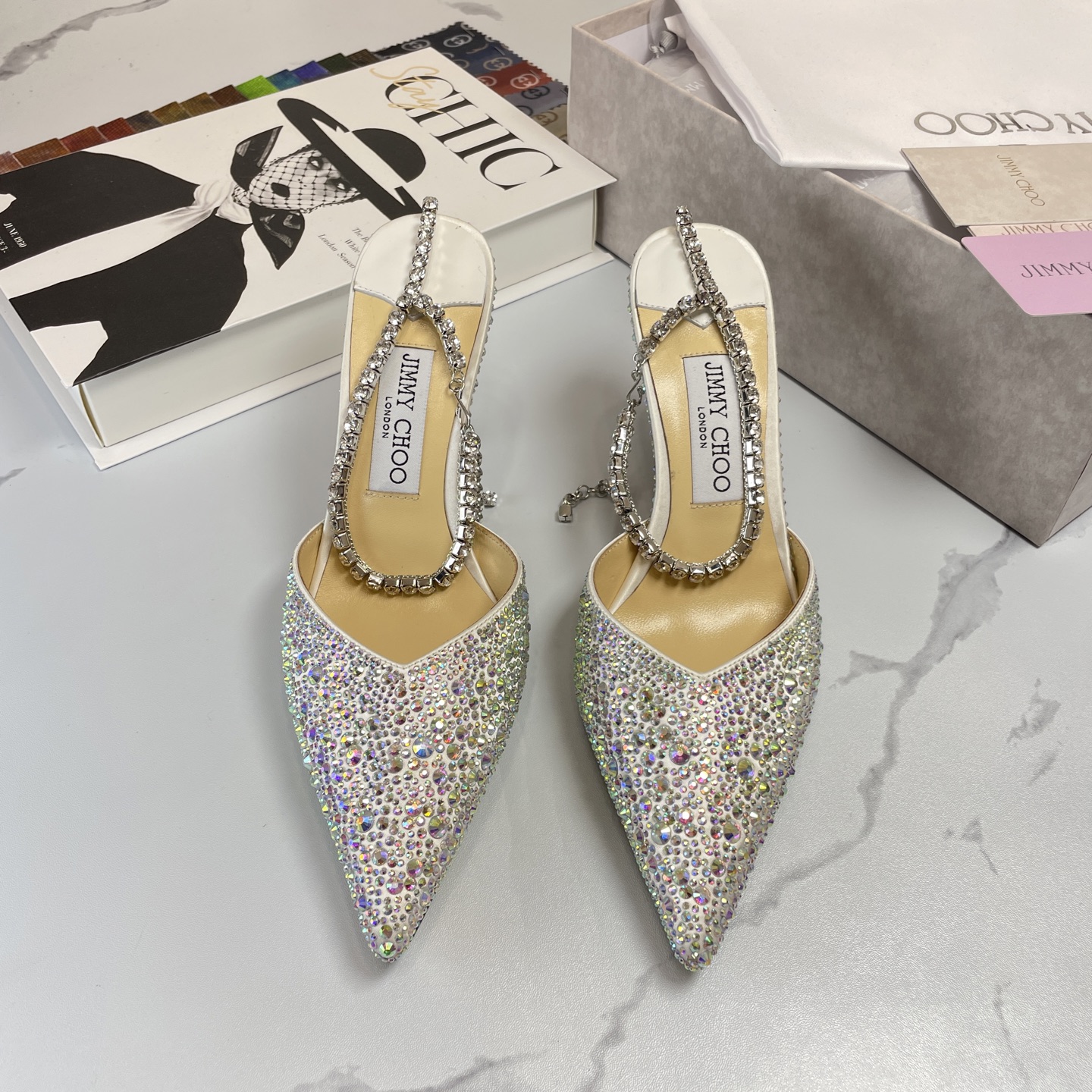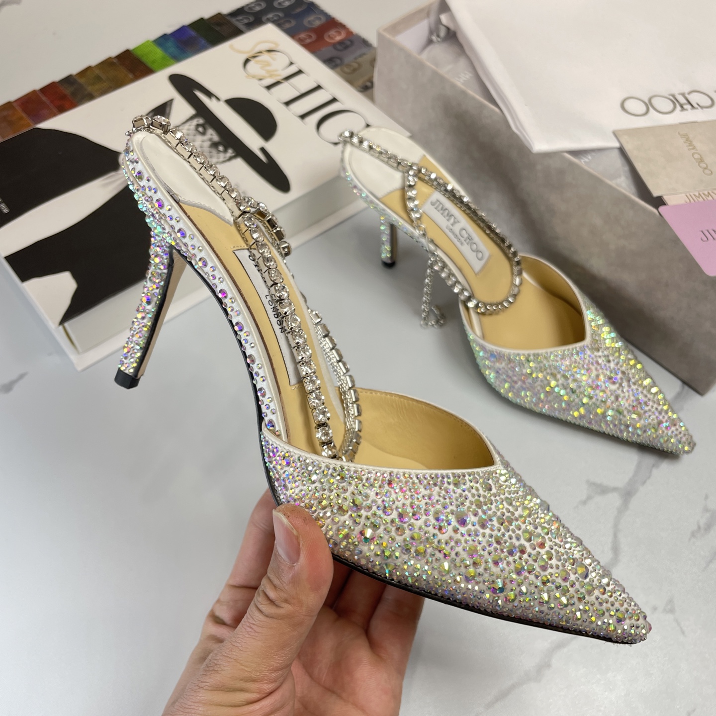 这款鞋子是AAAAA 1:1 质量 (非常棒). 使用了和原版一模一样的材料. 商标部分也保持了和吉米乔/JIMMY CHOO一样. 图片拍摄是实物鞋子拍摄, 您所收到的实物保证和我们图片一模一样.