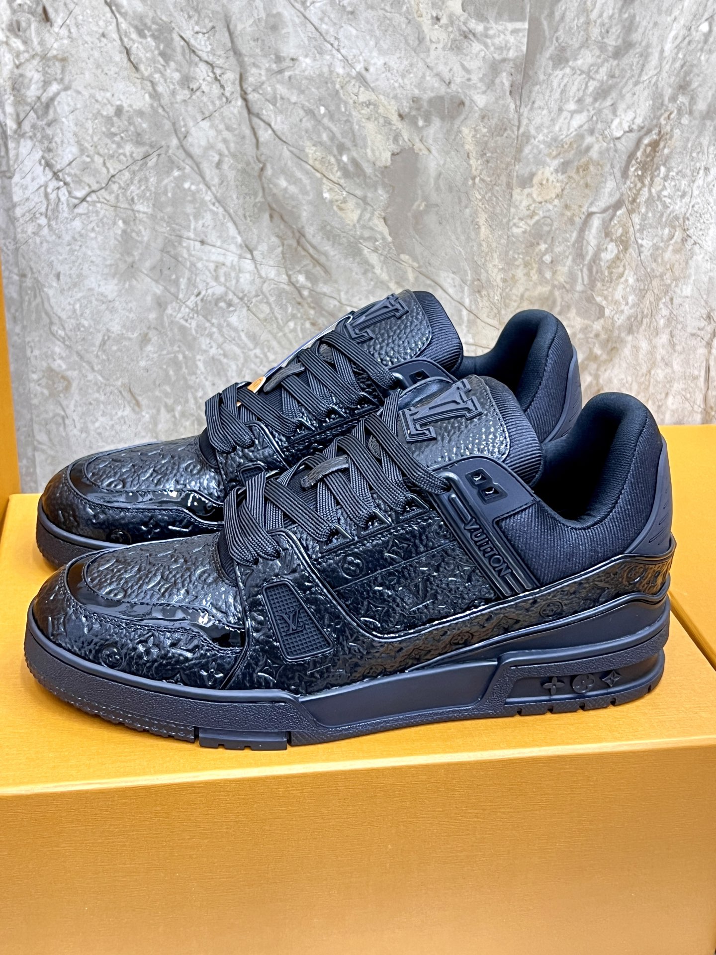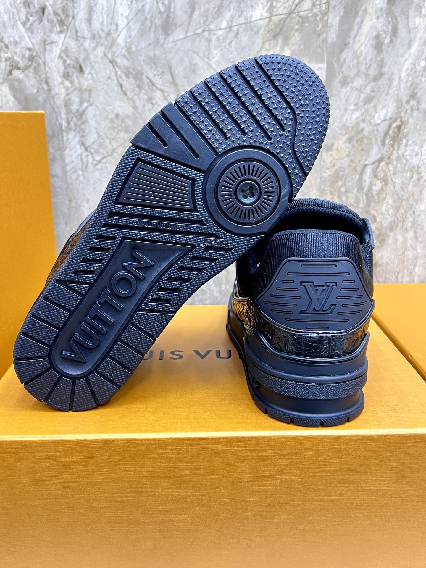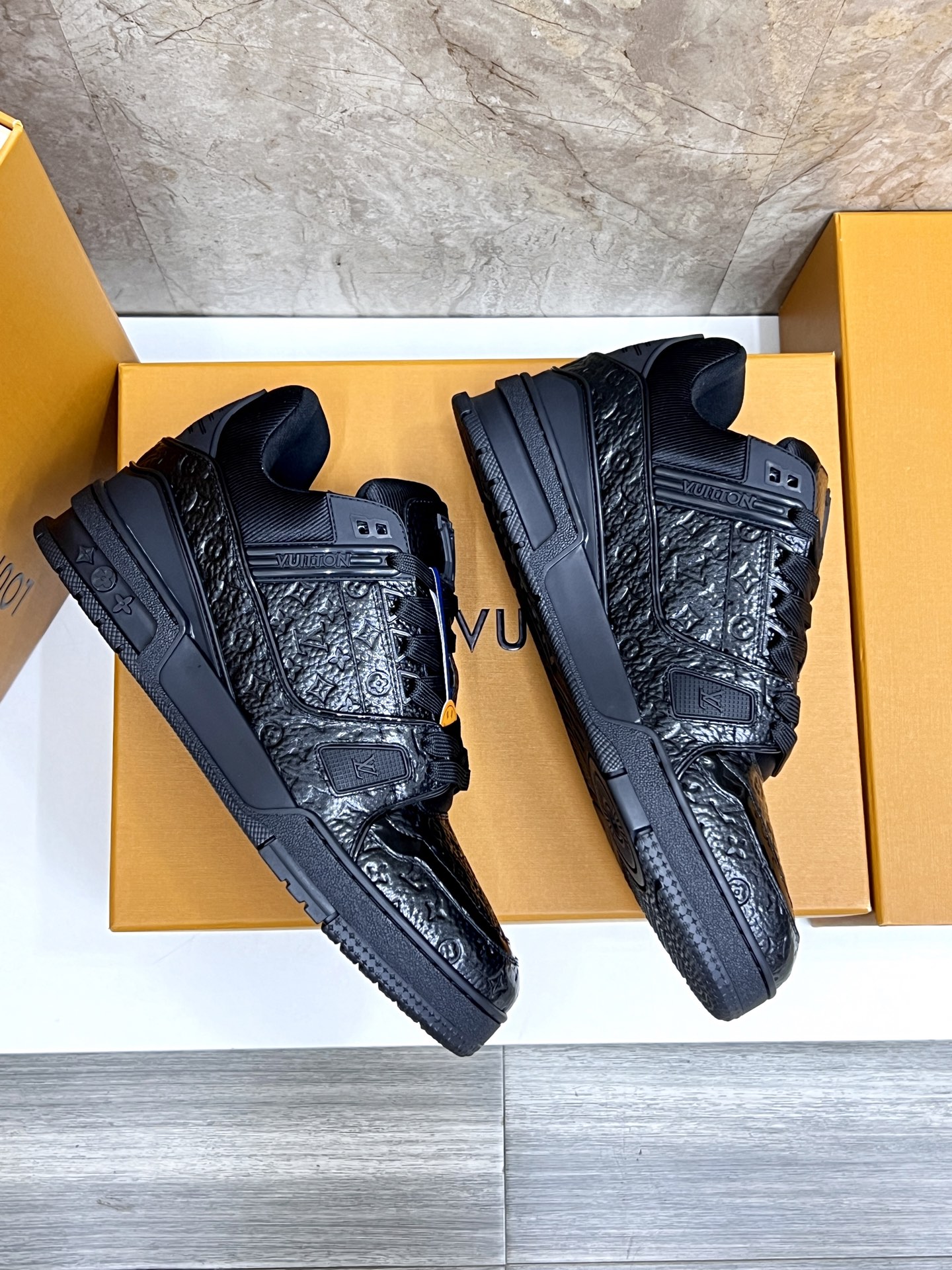 这款鞋子是AAAAA 1:1 质量 (非常棒). 使用了和原版一模一样的材料. 商标部分也保持了和路易威登/Louis Vuitton一样. 图片拍摄是实物鞋子拍摄, 您所收到的实物保证和我们图片一模一样.