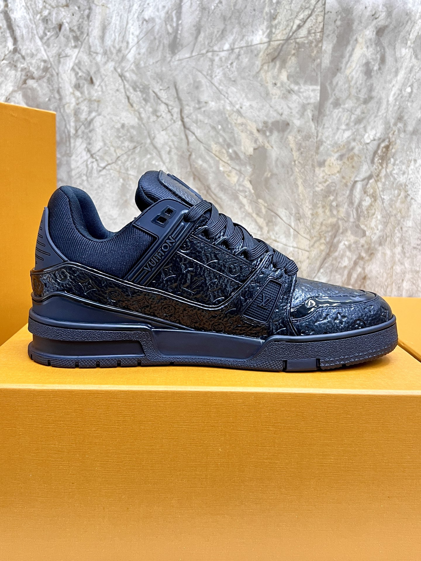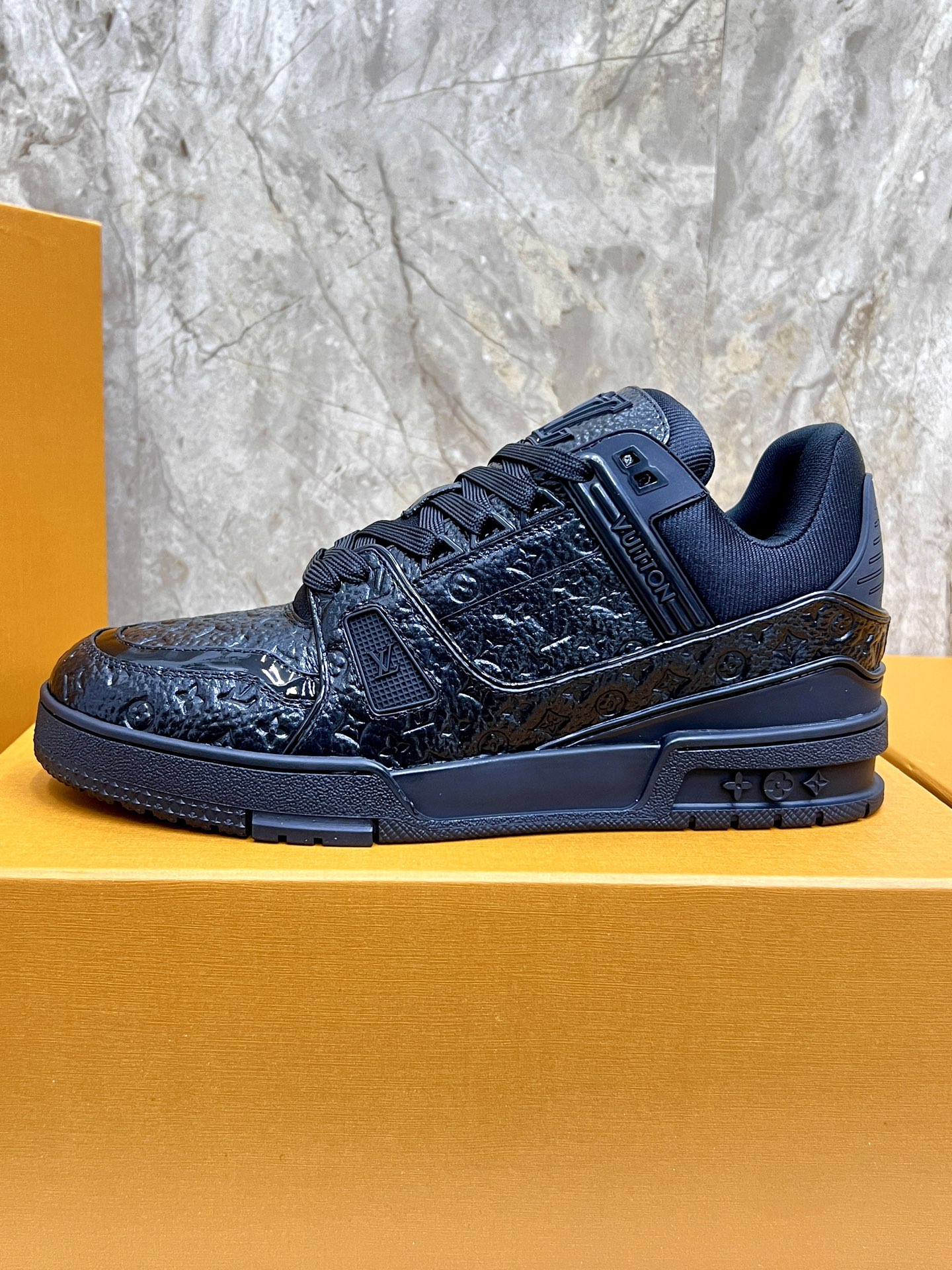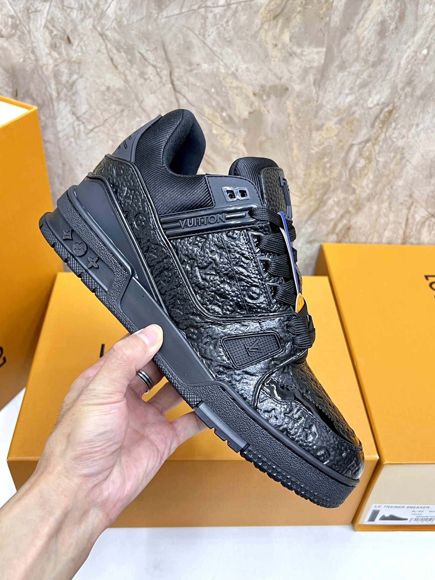这款鞋子是AAAAA 1:1 质量 (非常棒). 使用了和原版一模一样的材料. 商标部分也保持了和路易威登/Louis Vuitton一样. 图片拍摄是实物鞋子拍摄, 您所收到的实物保证和我们图片一模一样.