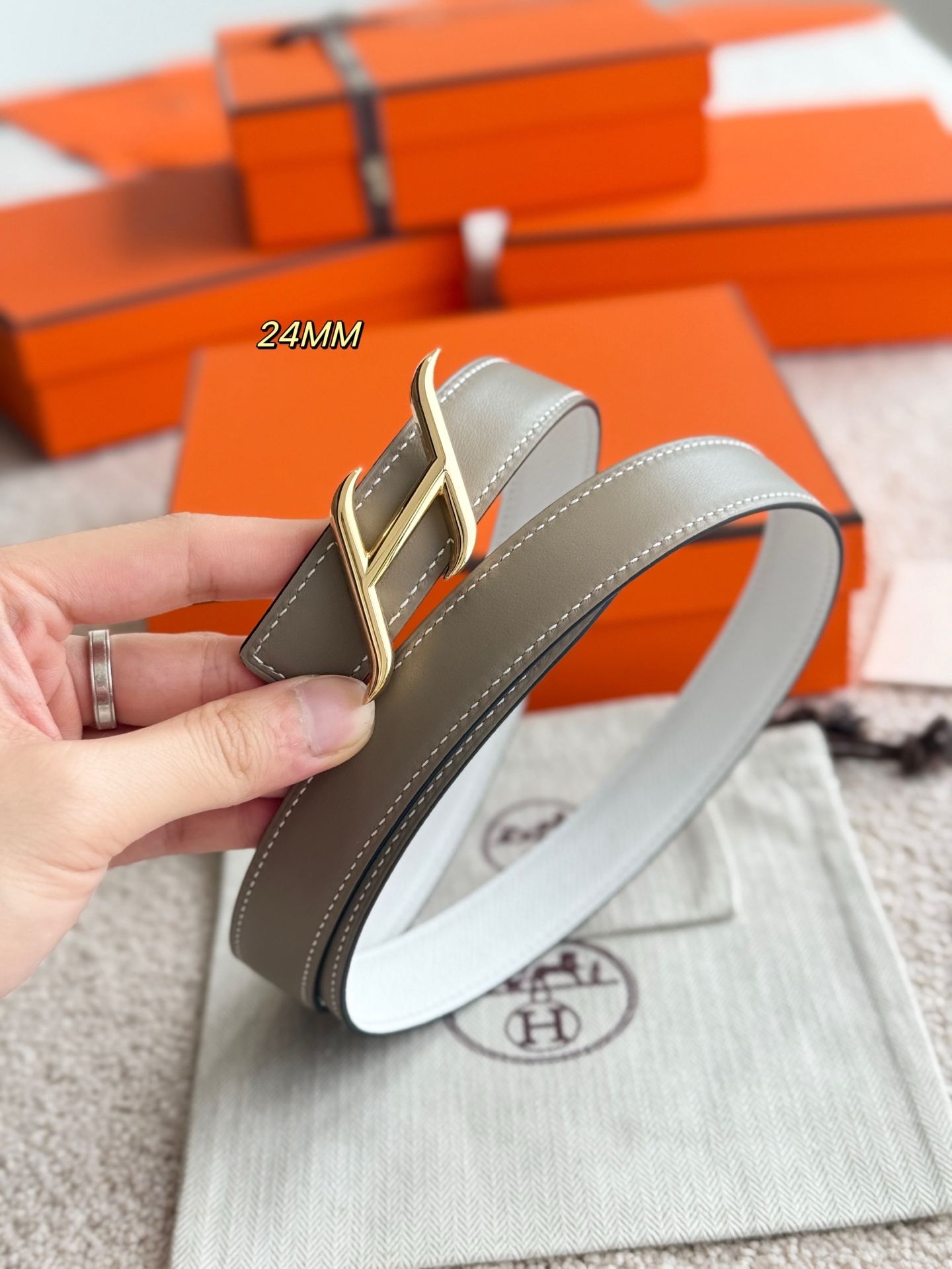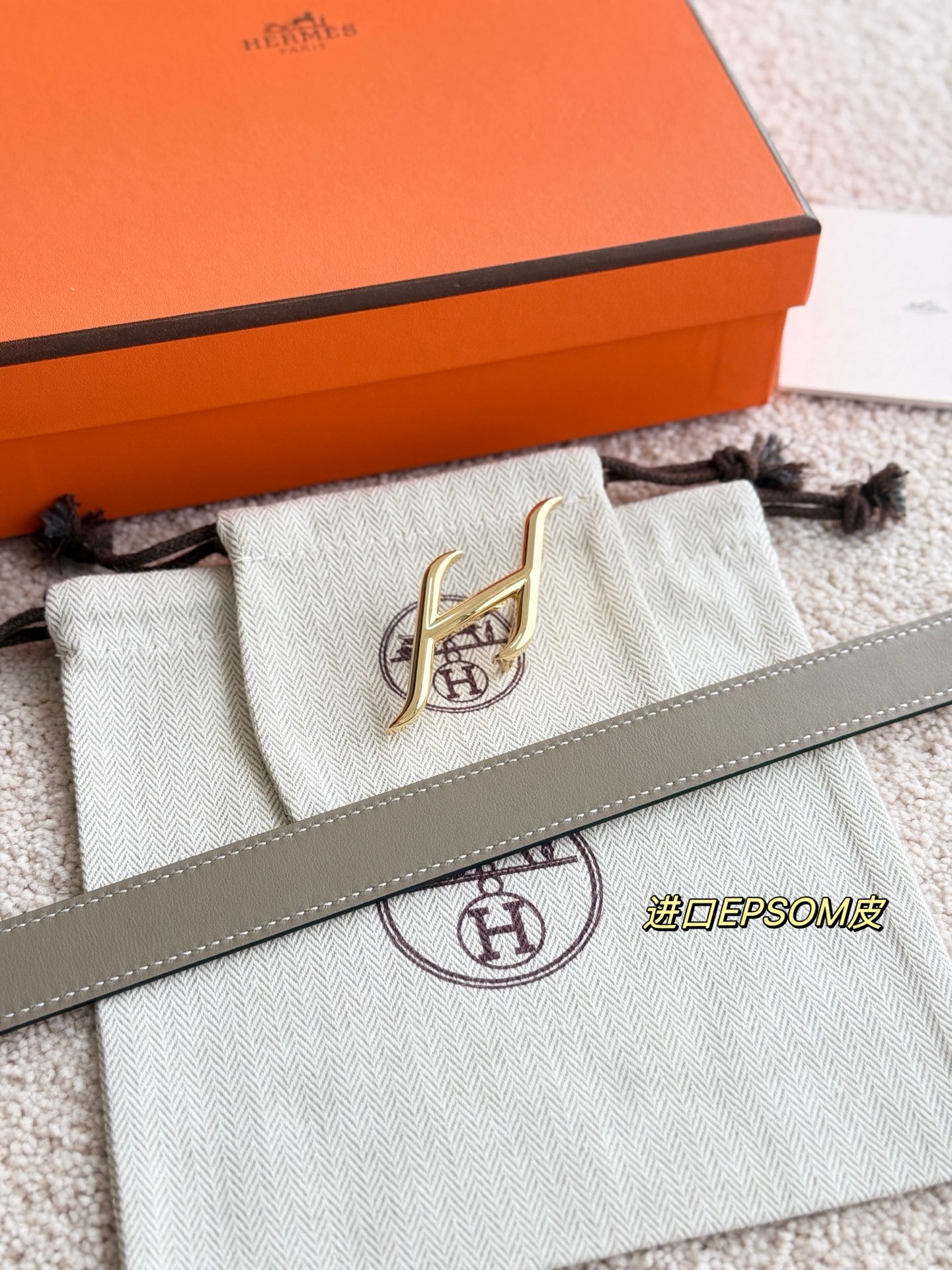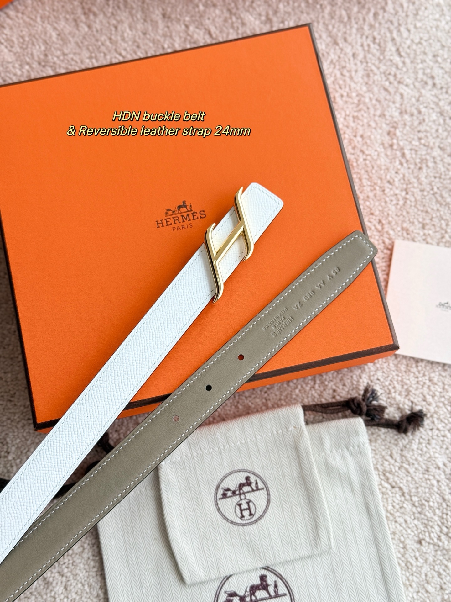这款皮带是AAAAA 1:1 质量 (非常棒). 使用了和原版一模一样的材料. 商标部分也保持了和爱马仕/Hermes一样. 图片拍摄是实物皮带拍摄, 您所收到的实物保证和我们图片一模一样.