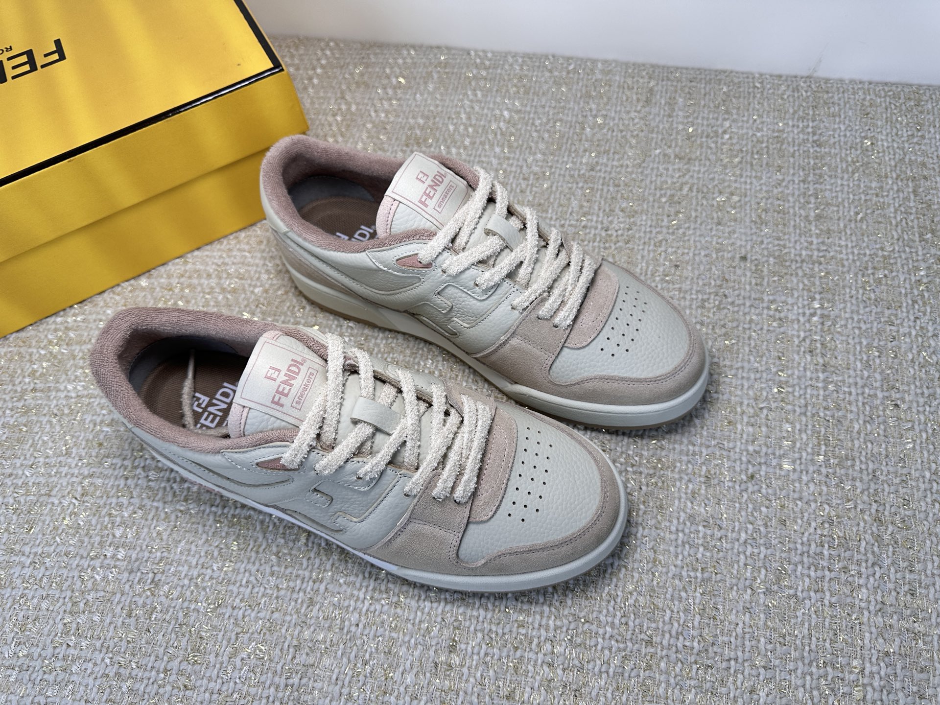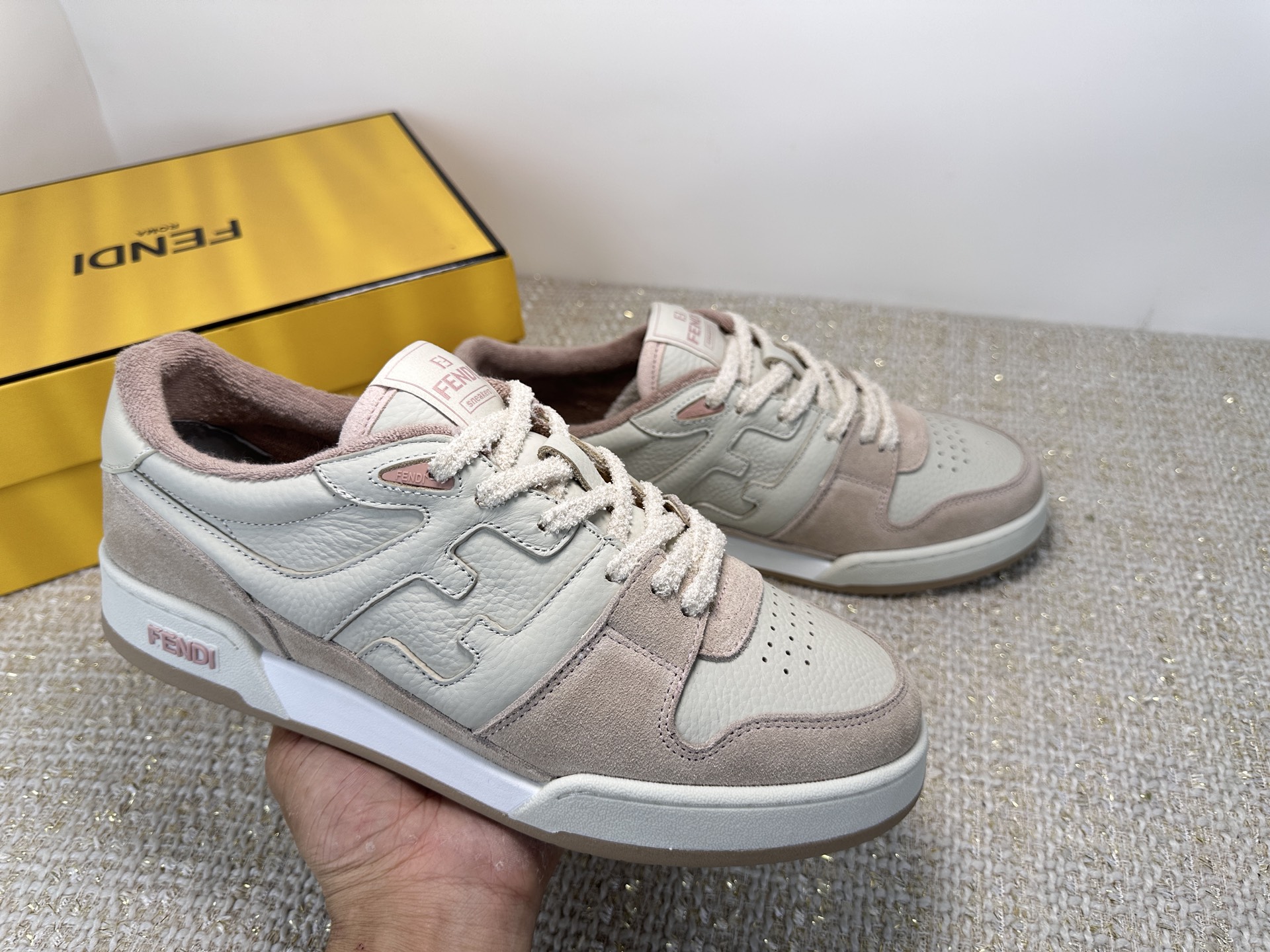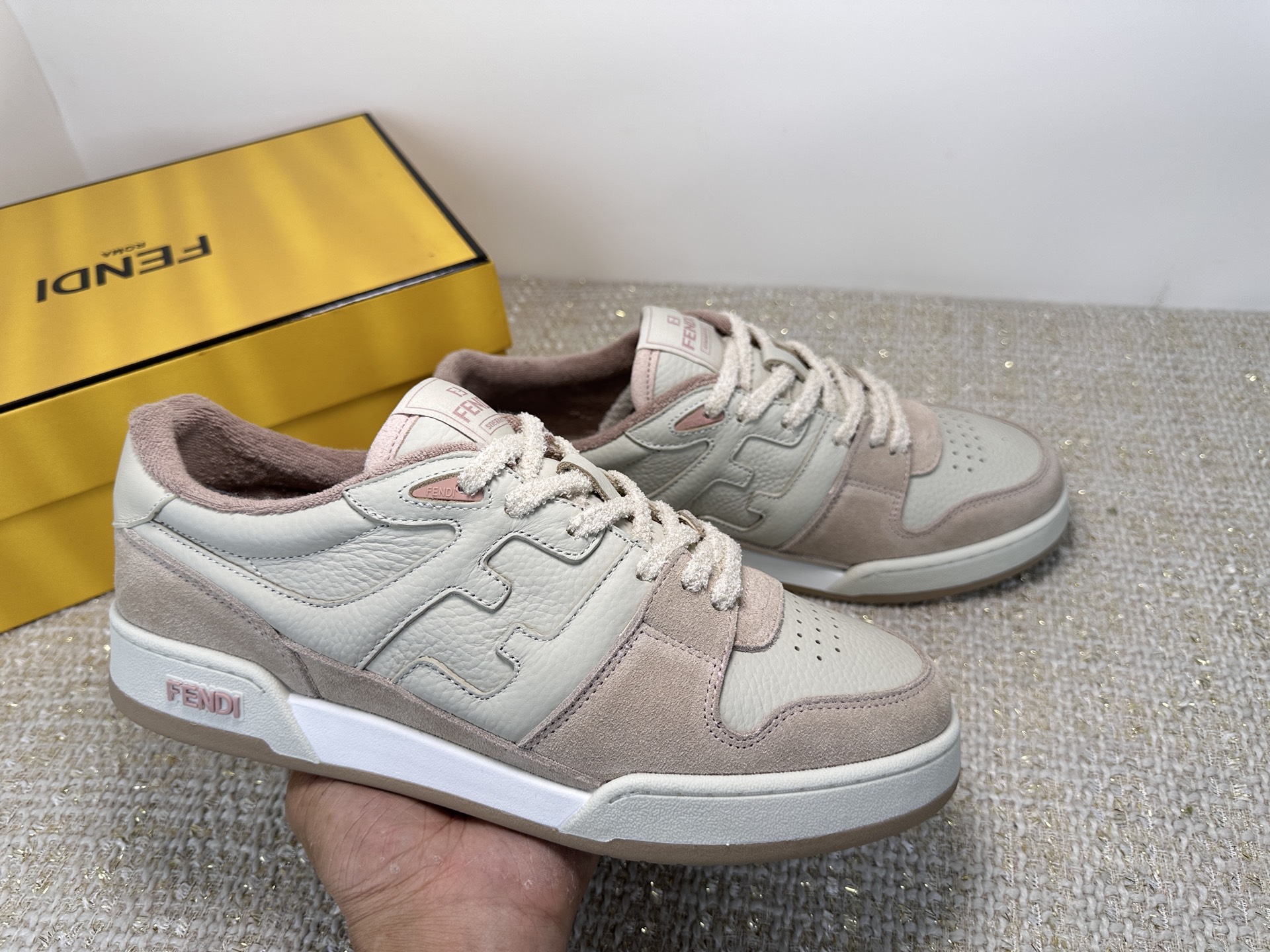 这款鞋子是AAAAA 1:1 质量 (非常棒). 使用了和原版一模一样的材料. 商标部分也保持了和芬迪/Fendi一样. 图片拍摄是实物鞋子拍摄, 您所收到的实物保证和我们图片一模一样.