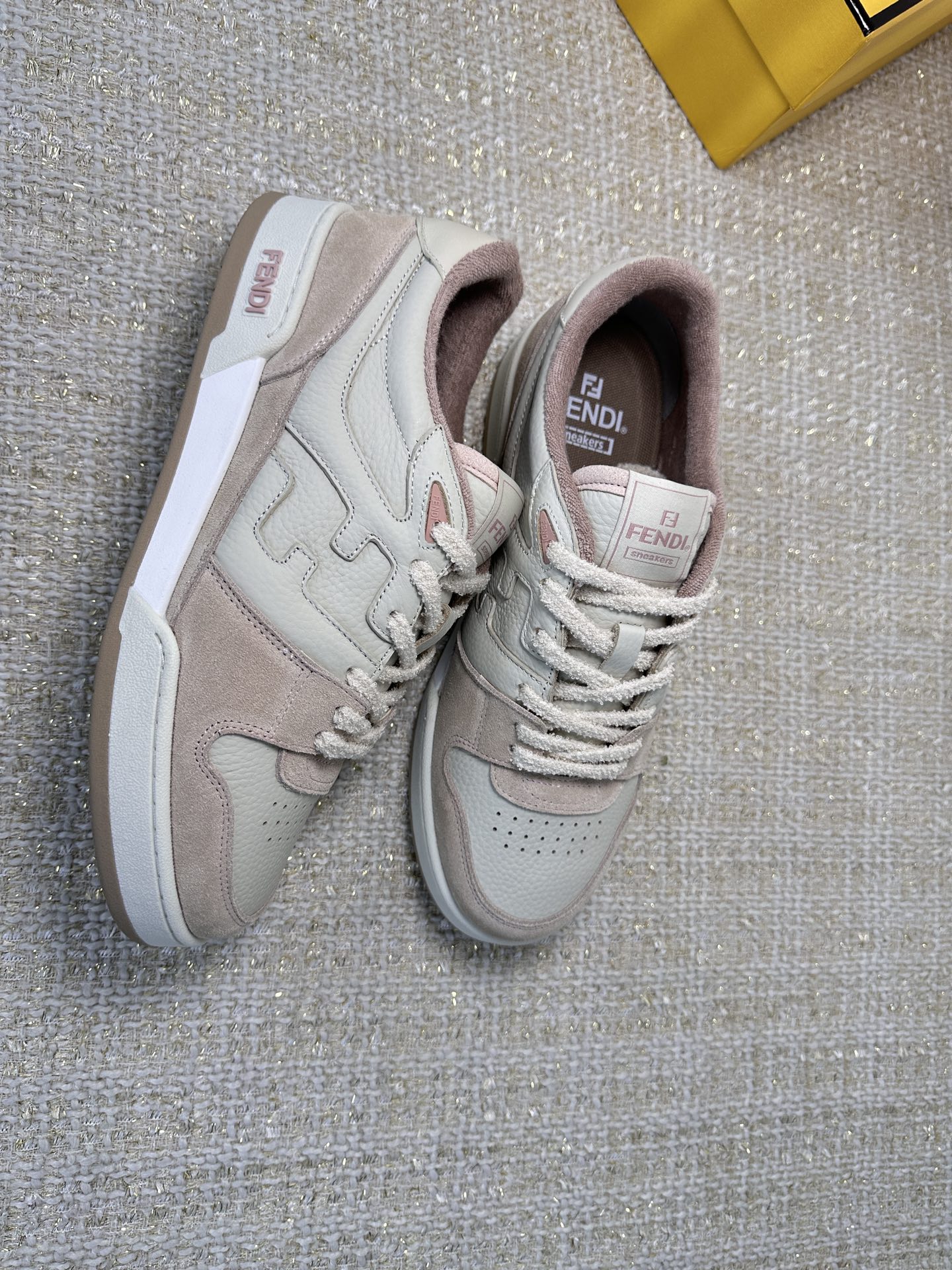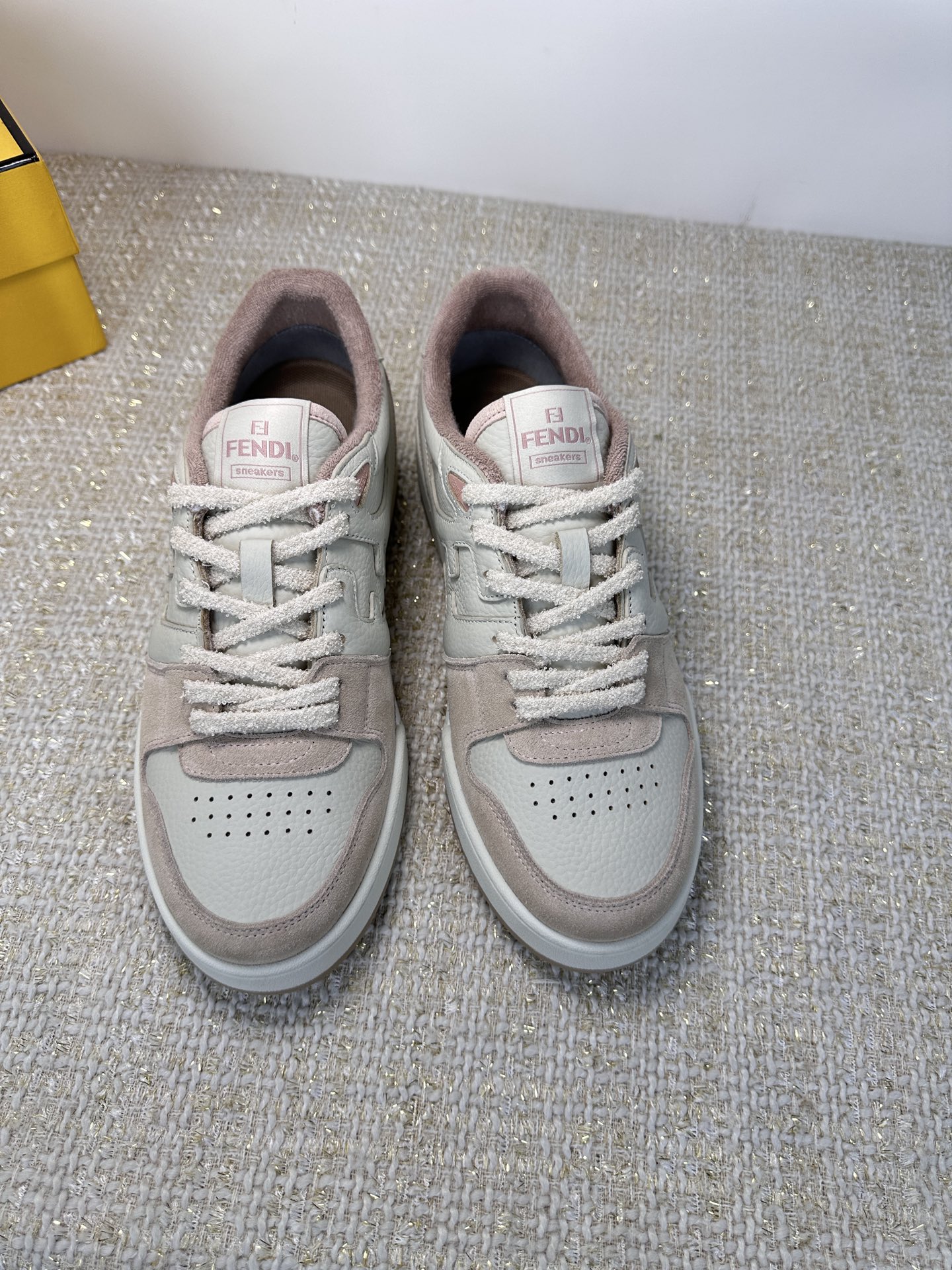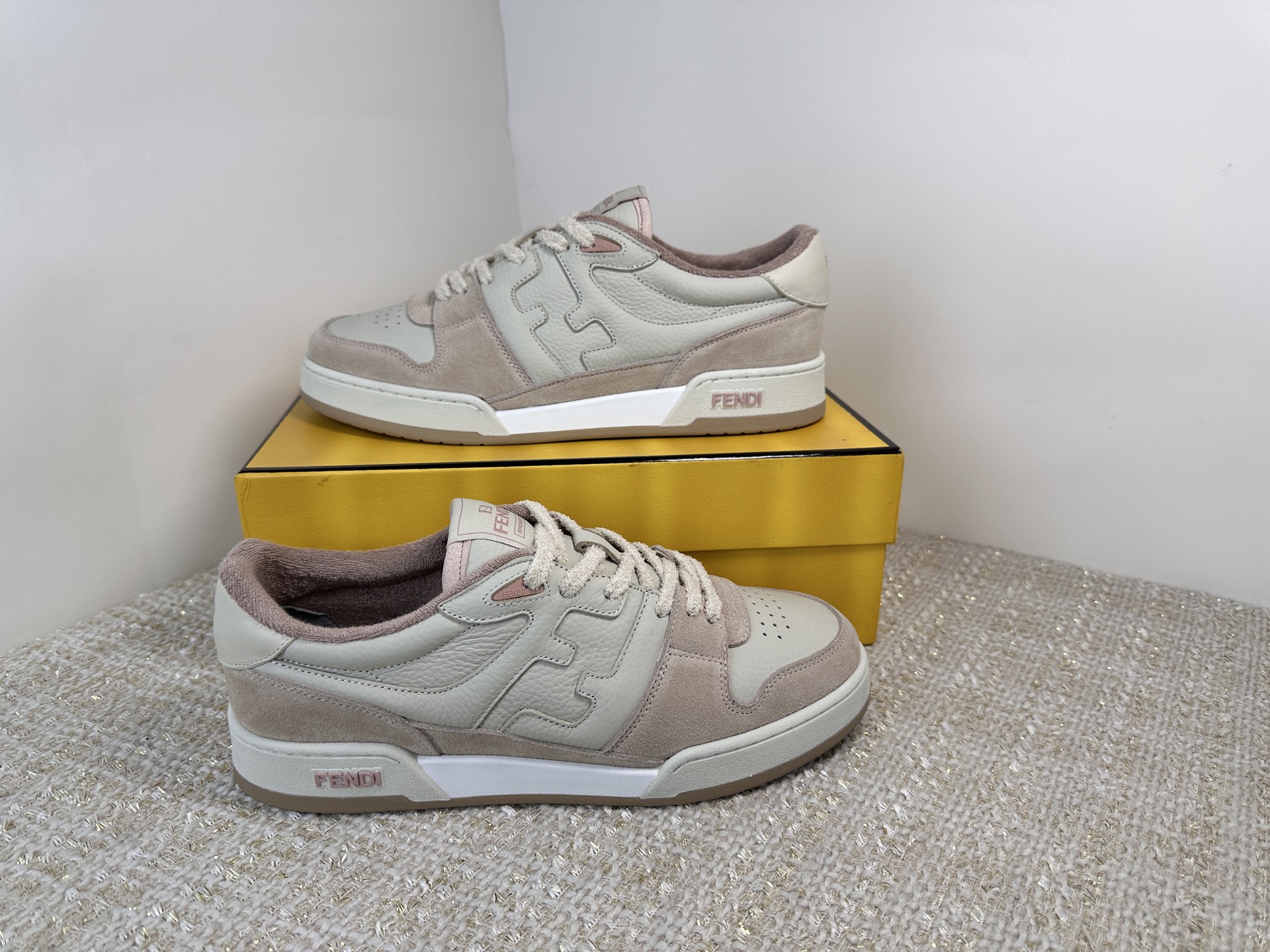 这款鞋子是AAAAA 1:1 质量 (非常棒). 使用了和原版一模一样的材料. 商标部分也保持了和芬迪/Fendi一样. 图片拍摄是实物鞋子拍摄, 您所收到的实物保证和我们图片一模一样.