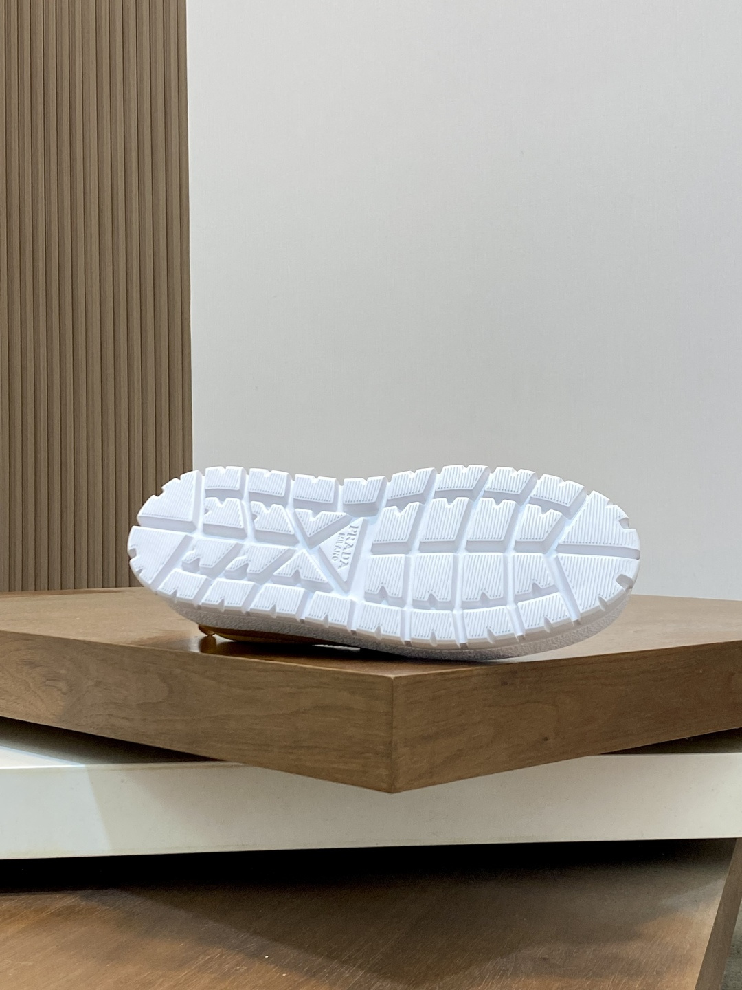 这款鞋子是AAAAA 1:1 质量 (非常棒). 使用了和原版一模一样的材料. 商标部分也保持了和普拉达/Prada一样. 图片拍摄是实物鞋子拍摄, 您所收到的实物保证和我们图片一模一样.