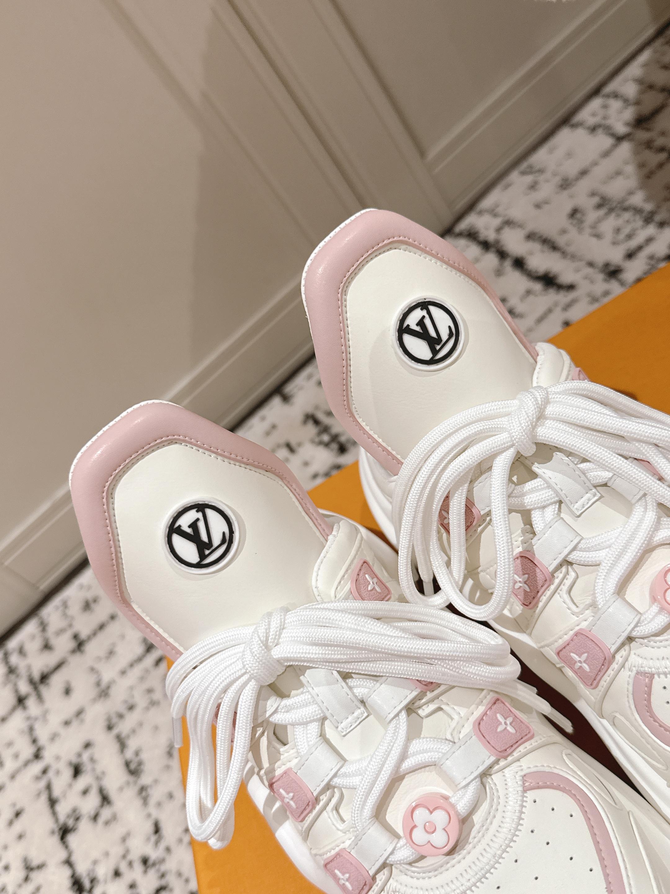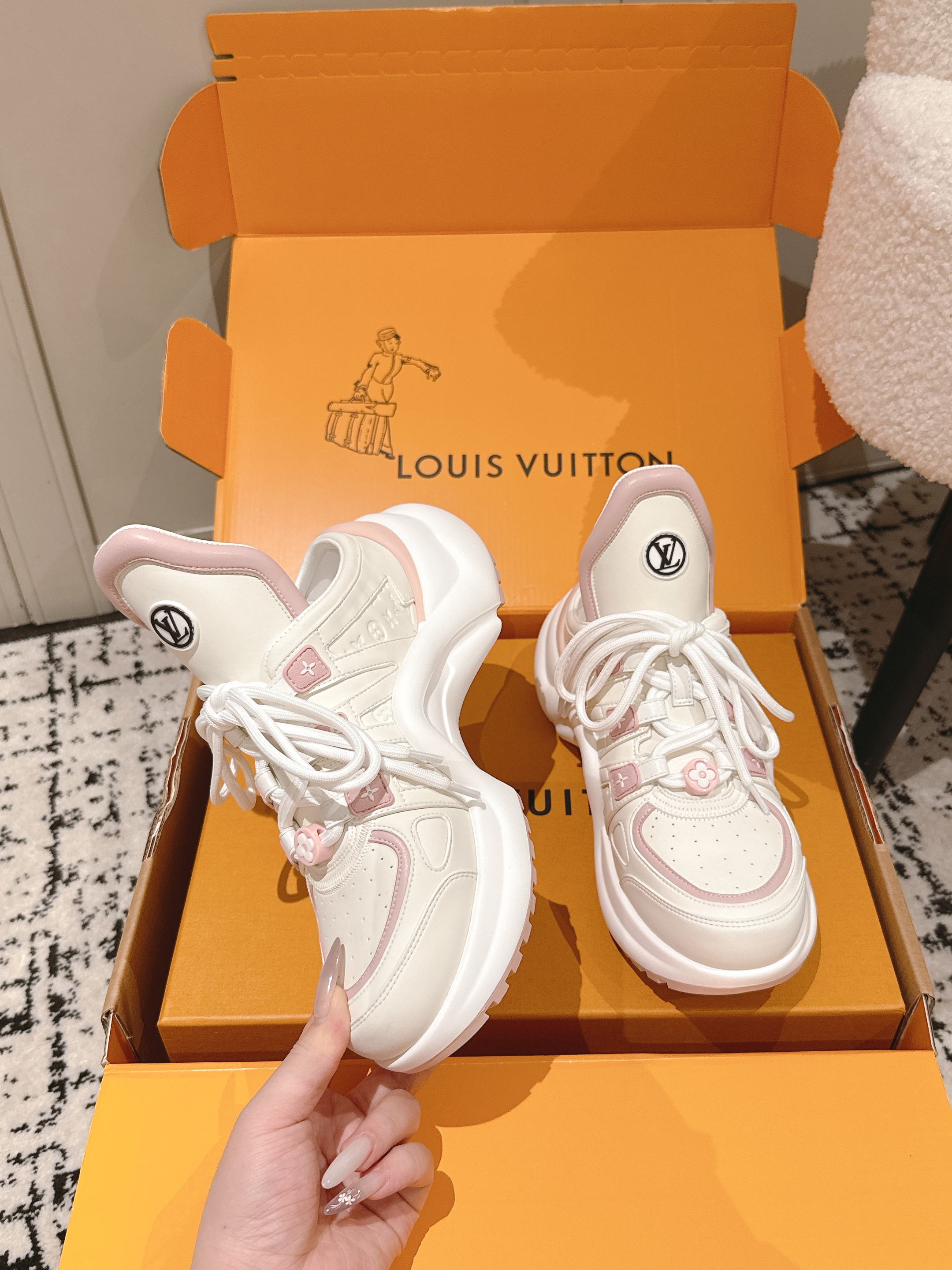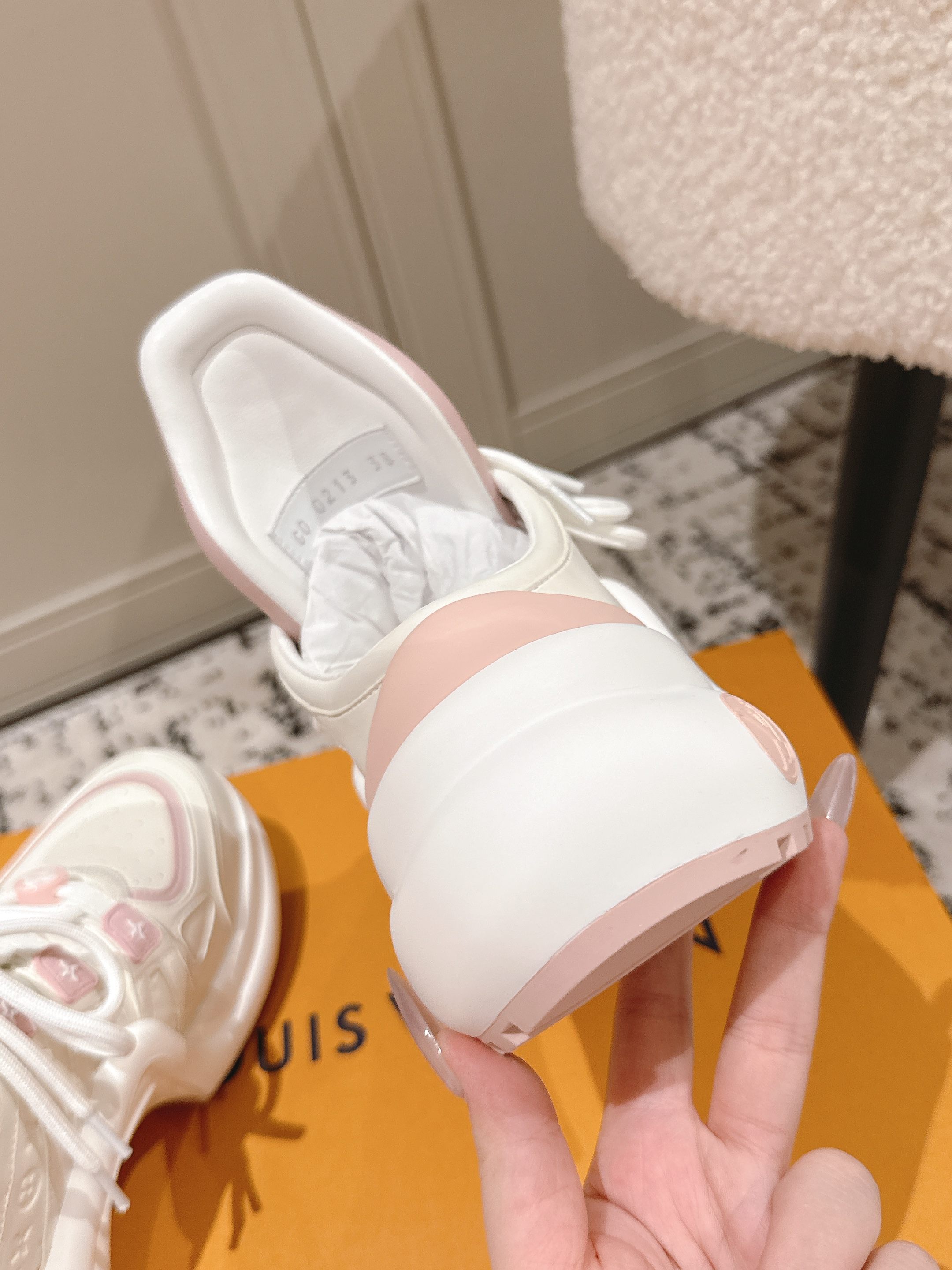 这款鞋子是AAAAA 1:1 质量 (非常棒). 使用了和原版一模一样的材料. 商标部分也保持了和路易威登/Louis Vuitton一样. 图片拍摄是实物鞋子拍摄, 您所收到的实物保证和我们图片一模一样.