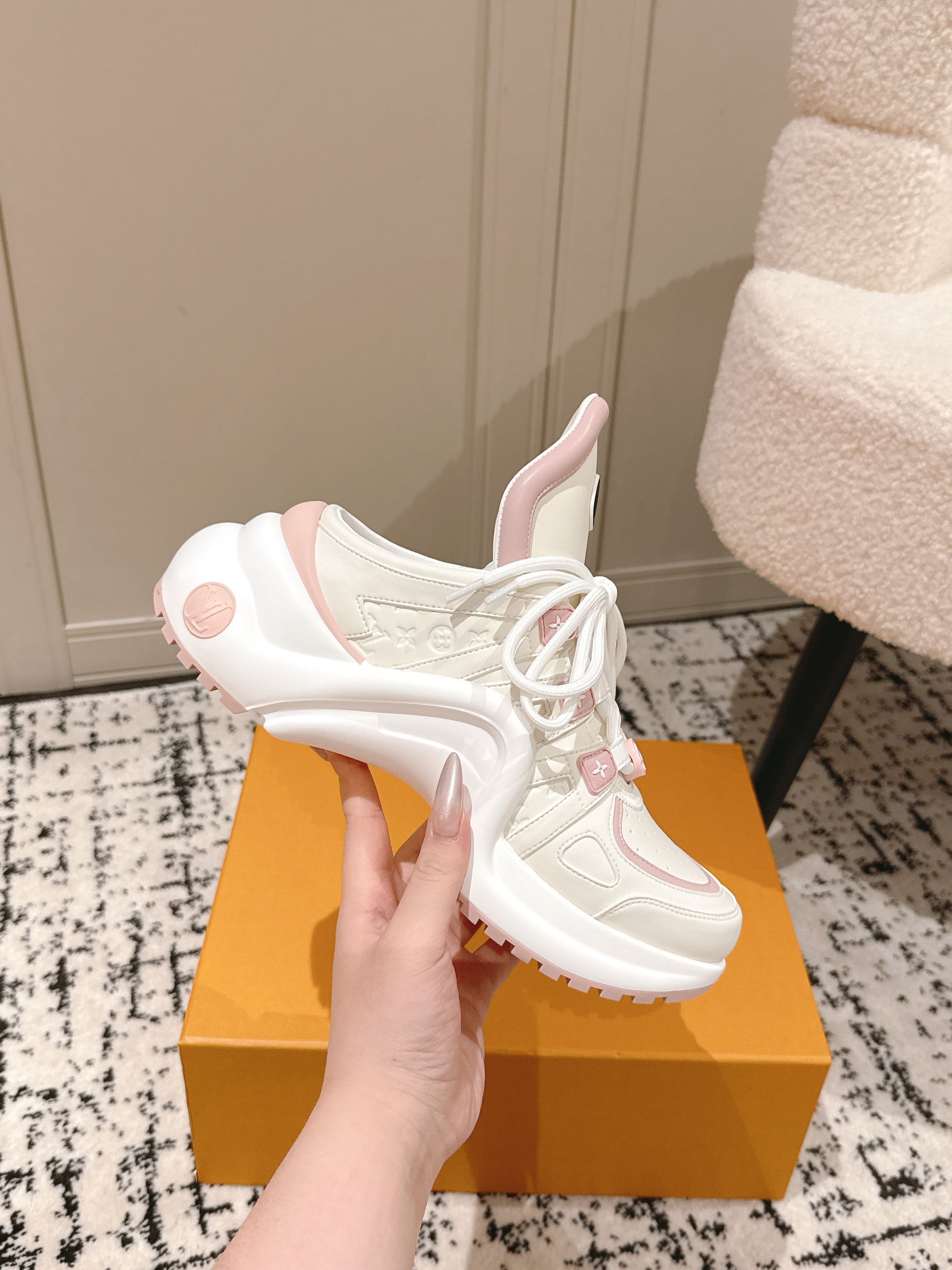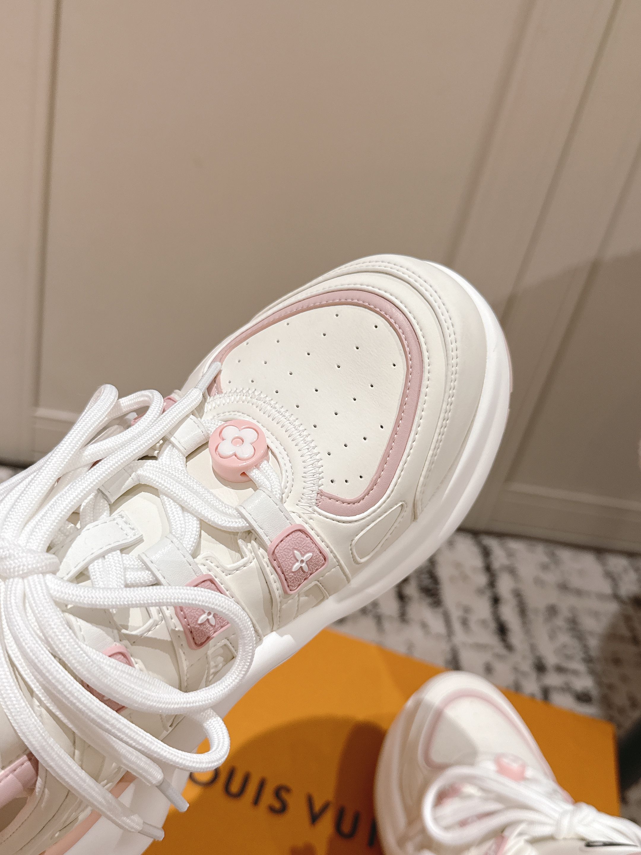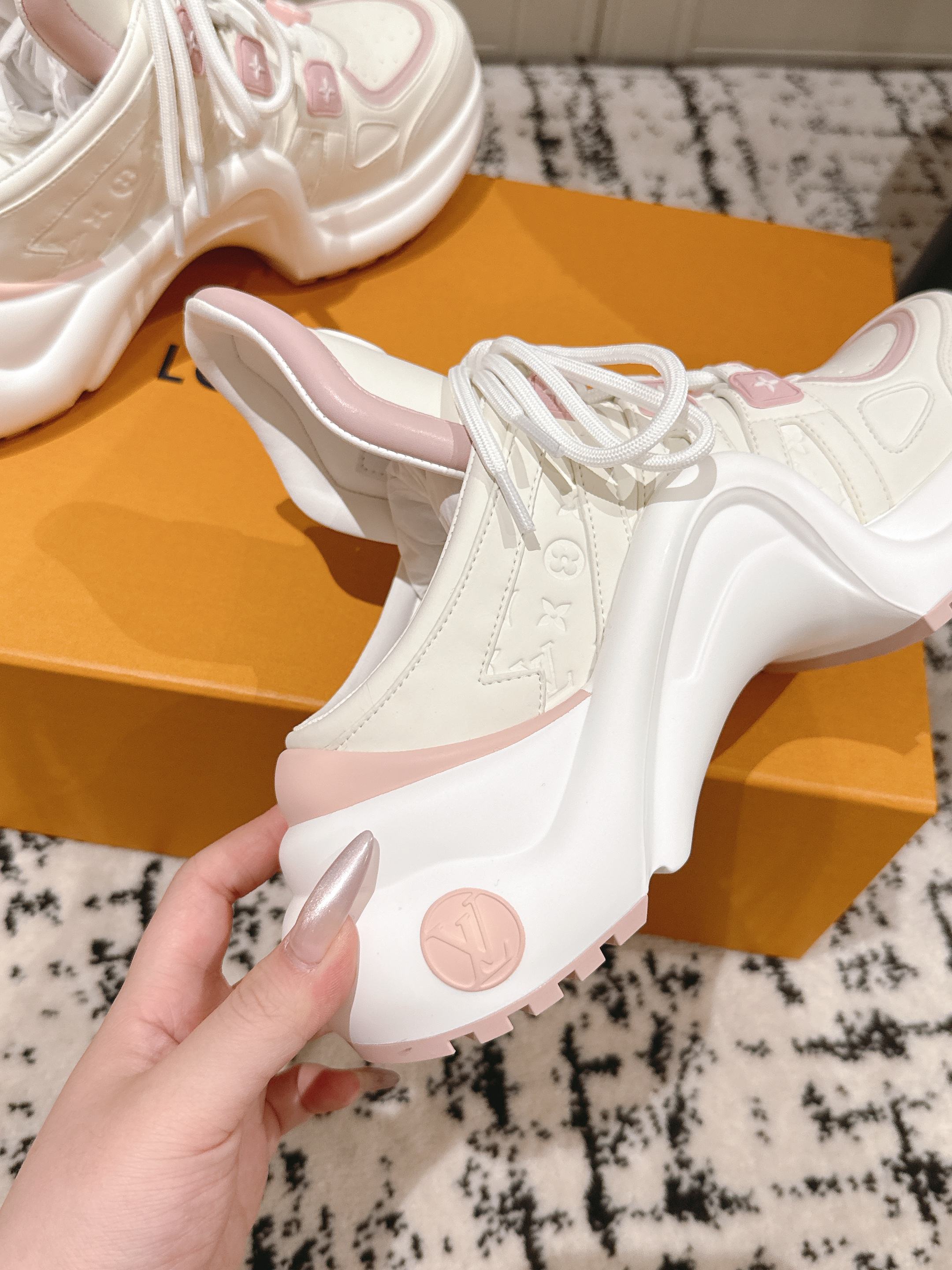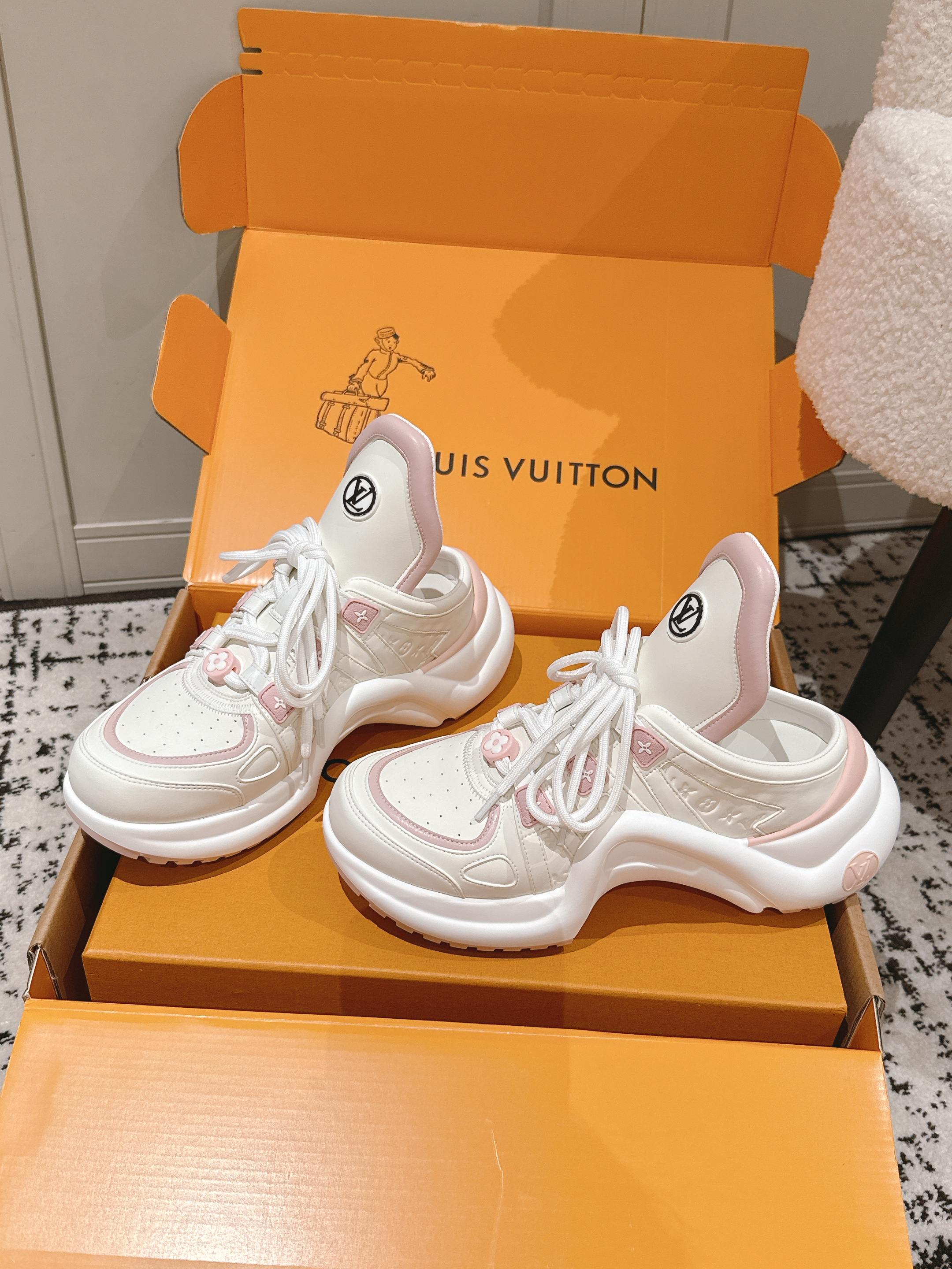 这款鞋子是AAAAA 1:1 质量 (非常棒). 使用了和原版一模一样的材料. 商标部分也保持了和路易威登/Louis Vuitton一样. 图片拍摄是实物鞋子拍摄, 您所收到的实物保证和我们图片一模一样.