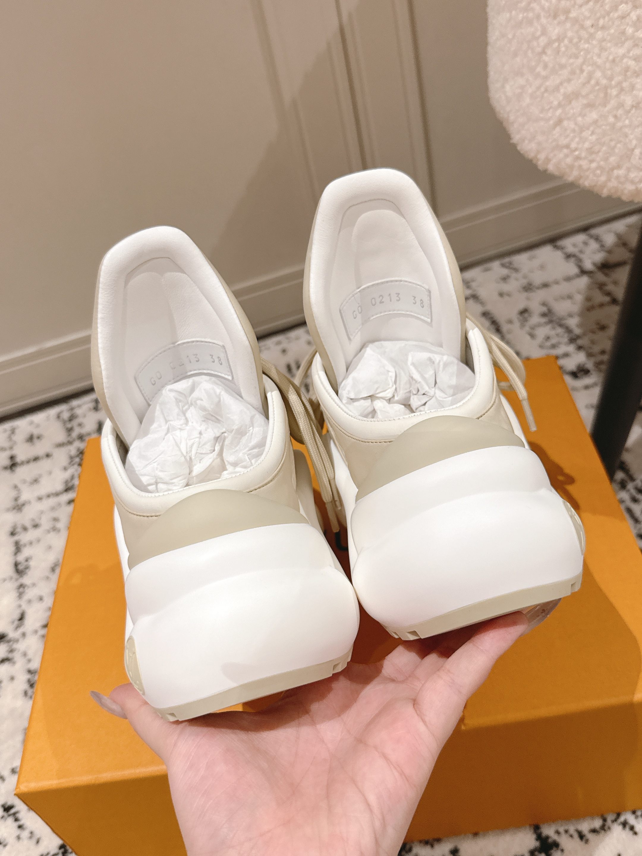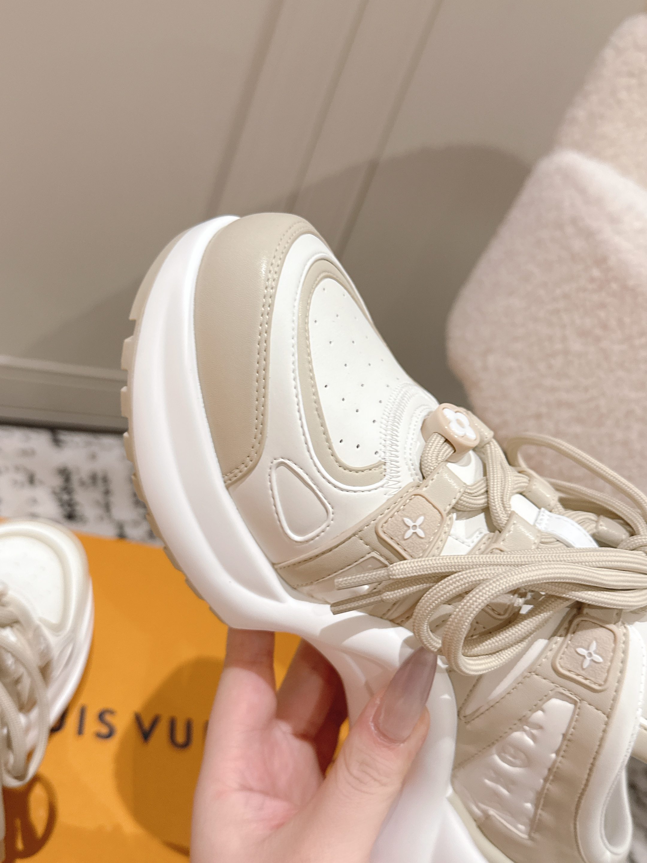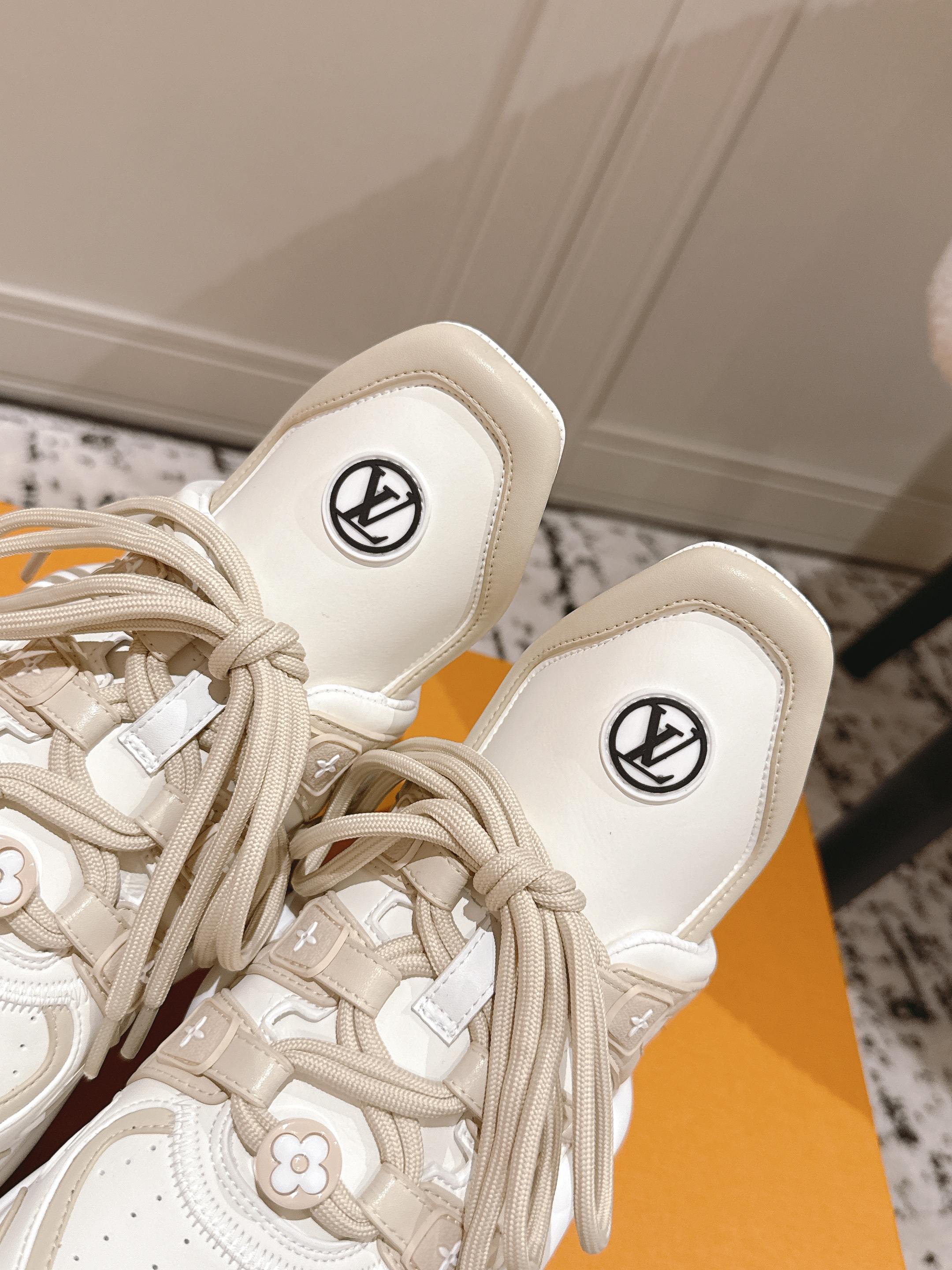 这款鞋子是AAAAA 1:1 质量 (非常棒). 使用了和原版一模一样的材料. 商标部分也保持了和路易威登/Louis Vuitton一样. 图片拍摄是实物鞋子拍摄, 您所收到的实物保证和我们图片一模一样.