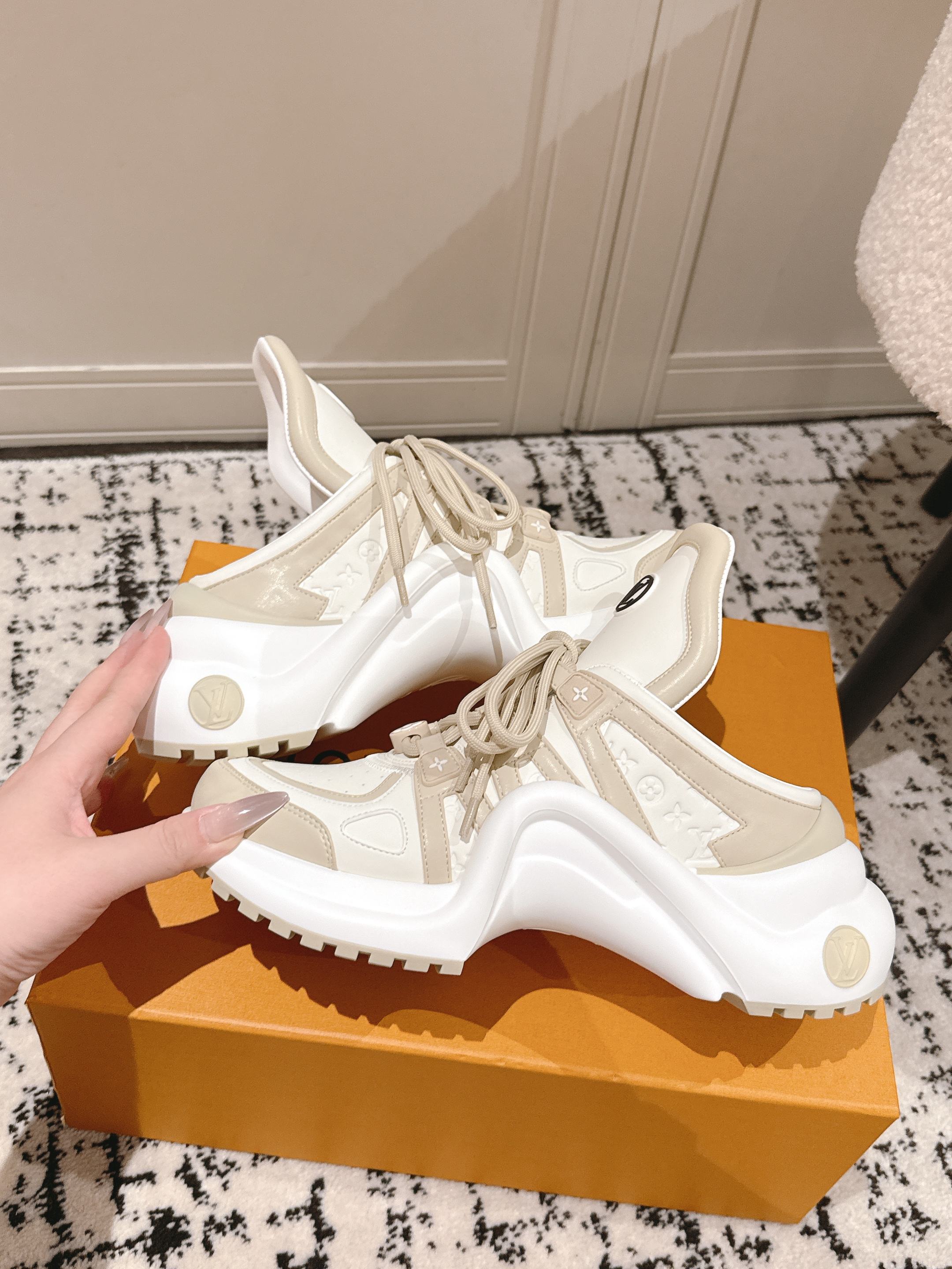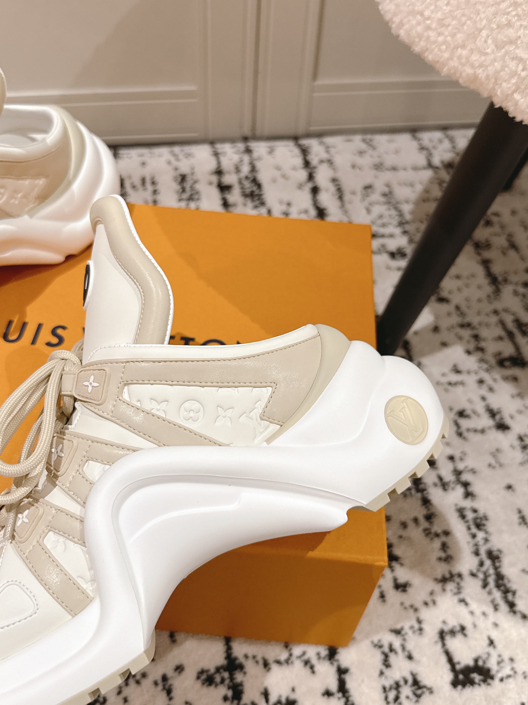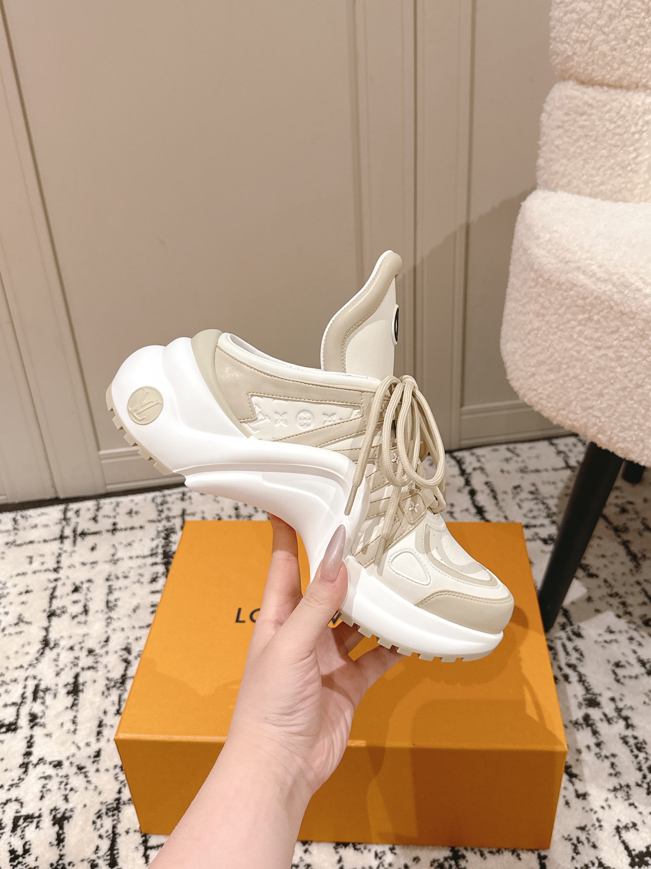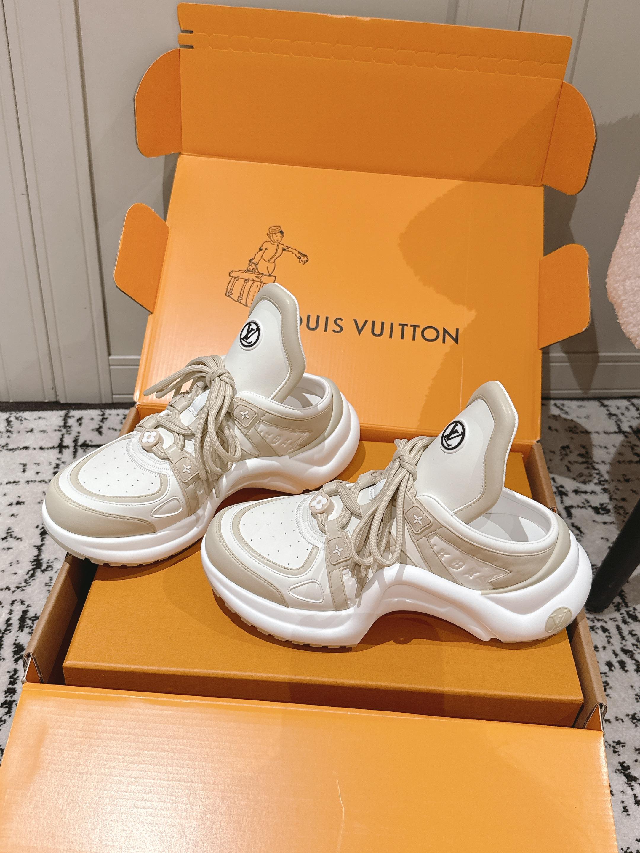 这款鞋子是AAAAA 1:1 质量 (非常棒). 使用了和原版一模一样的材料. 商标部分也保持了和路易威登/Louis Vuitton一样. 图片拍摄是实物鞋子拍摄, 您所收到的实物保证和我们图片一模一样.