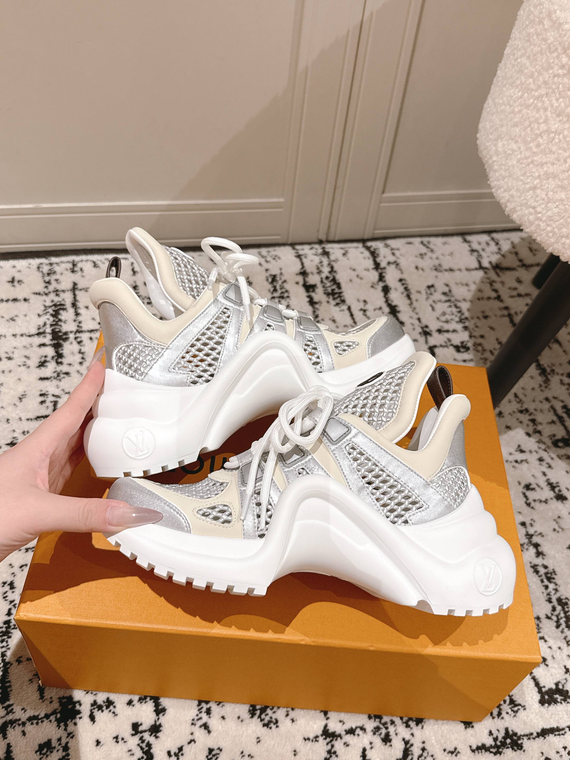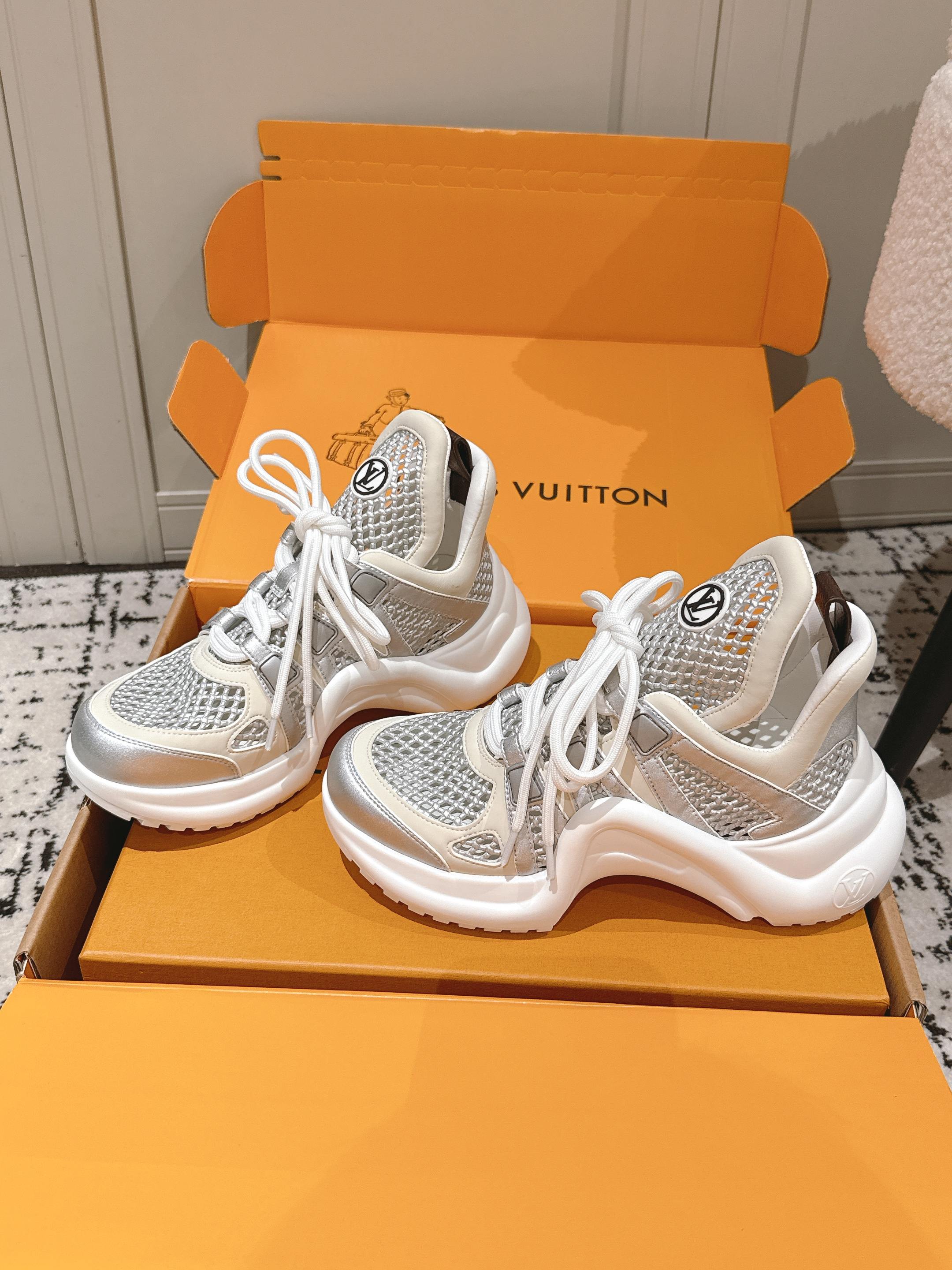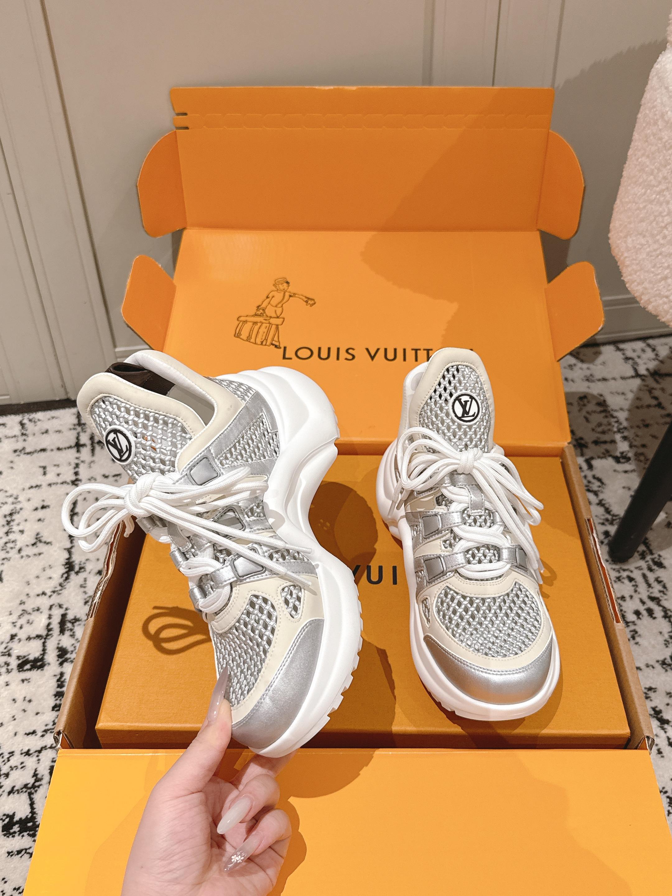 这款鞋子是AAAAA 1:1 质量 (非常棒). 使用了和原版一模一样的材料. 商标部分也保持了和路易威登/Louis Vuitton一样. 图片拍摄是实物鞋子拍摄, 您所收到的实物保证和我们图片一模一样.