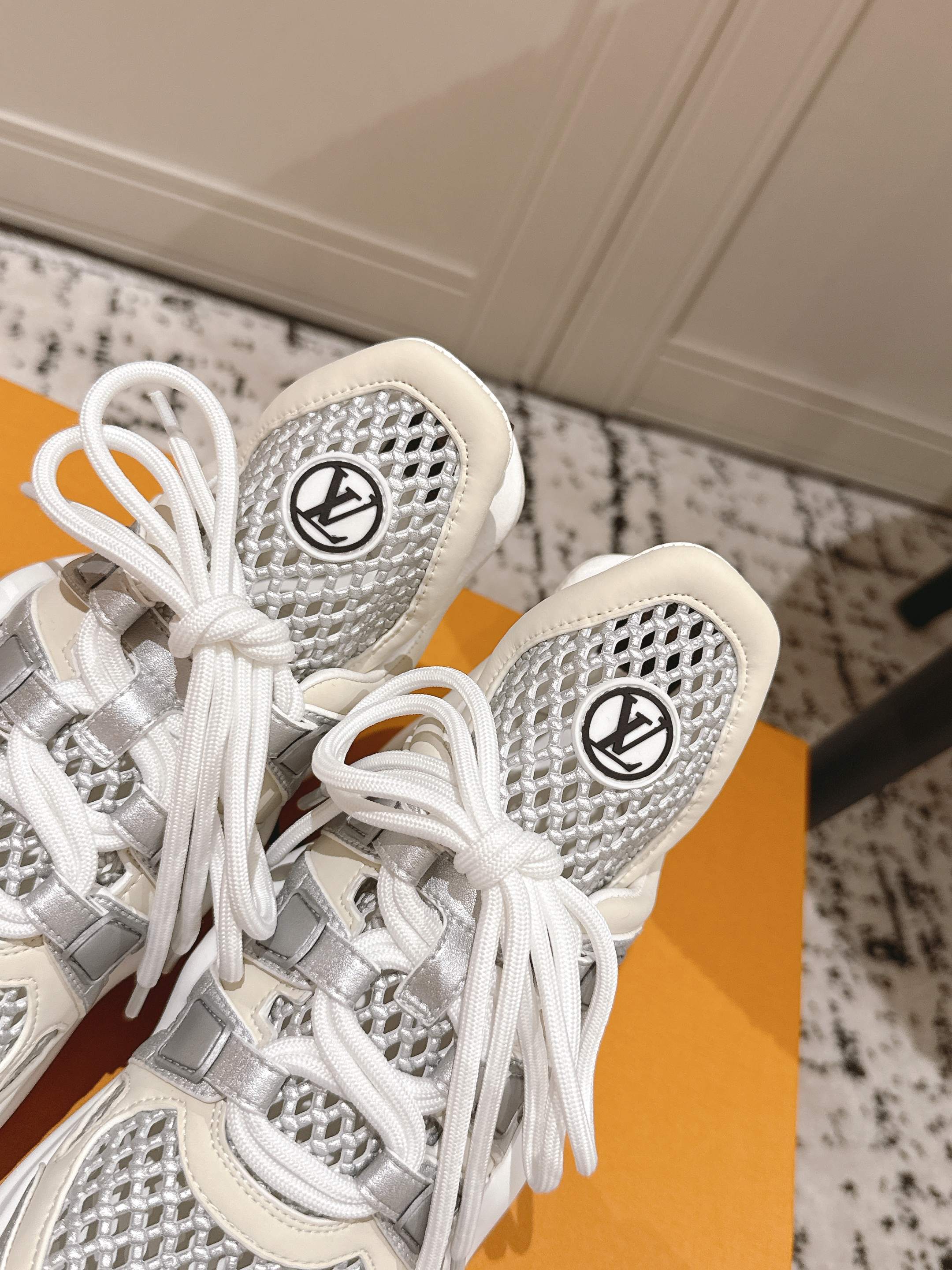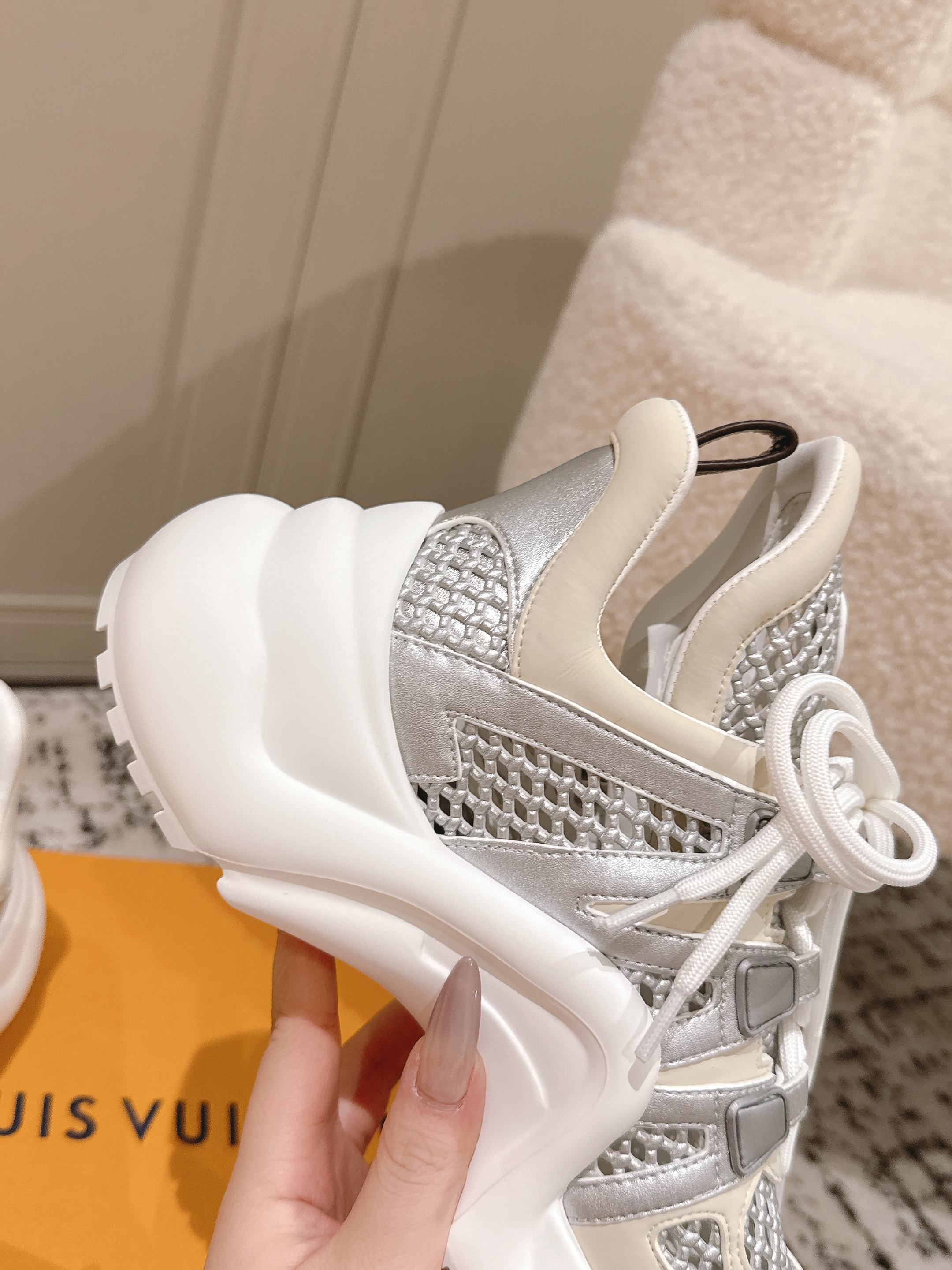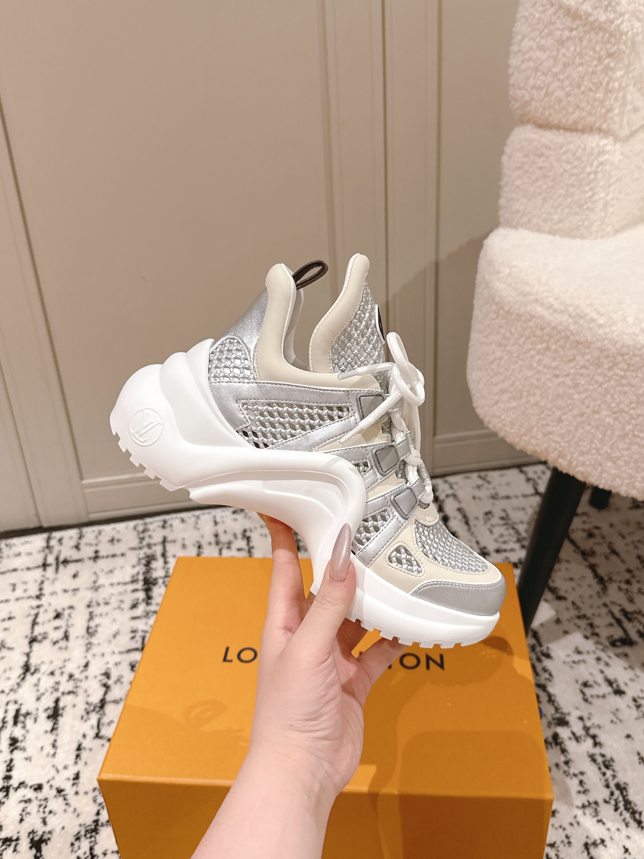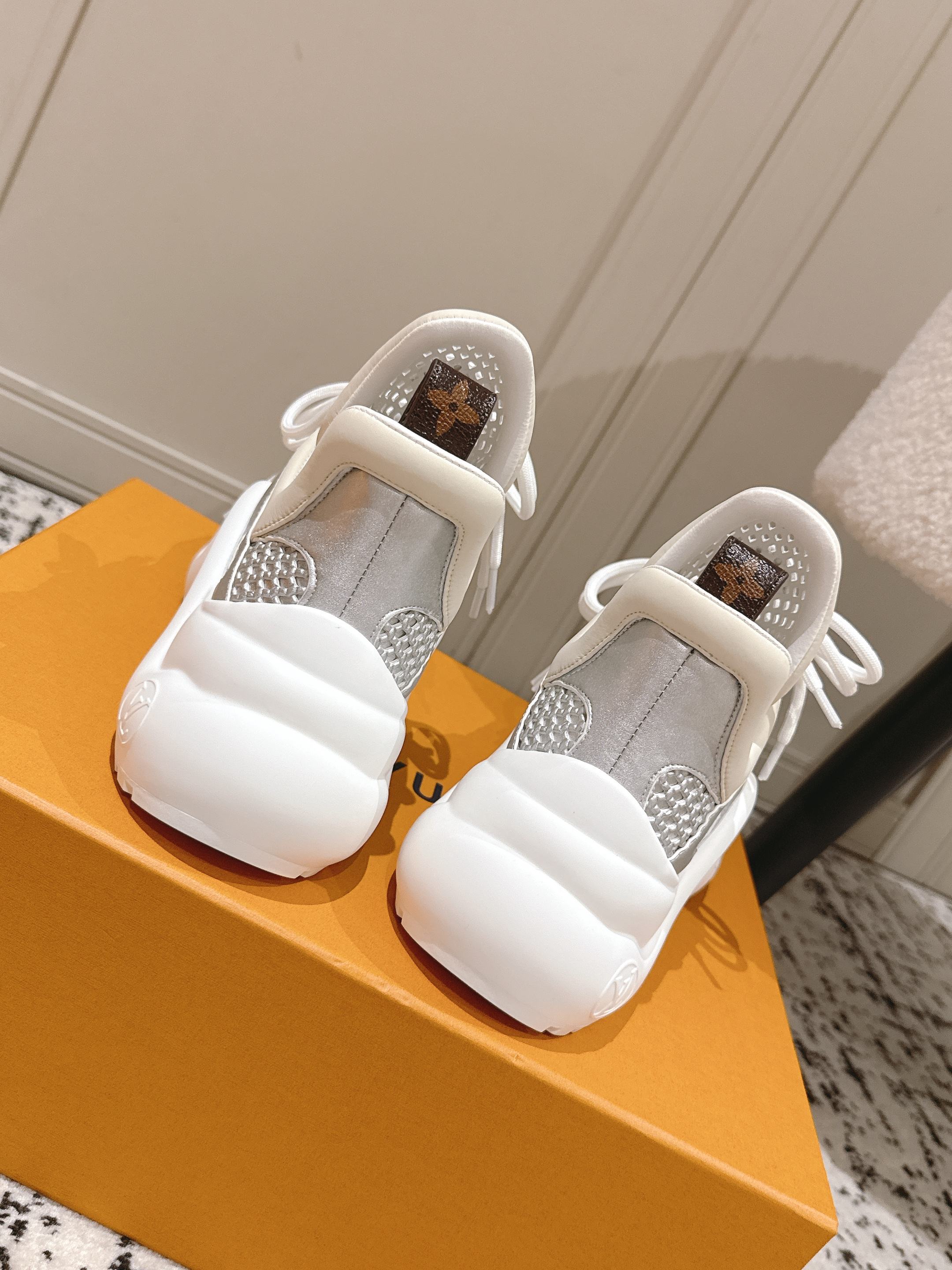 这款鞋子是AAAAA 1:1 质量 (非常棒). 使用了和原版一模一样的材料. 商标部分也保持了和路易威登/Louis Vuitton一样. 图片拍摄是实物鞋子拍摄, 您所收到的实物保证和我们图片一模一样.