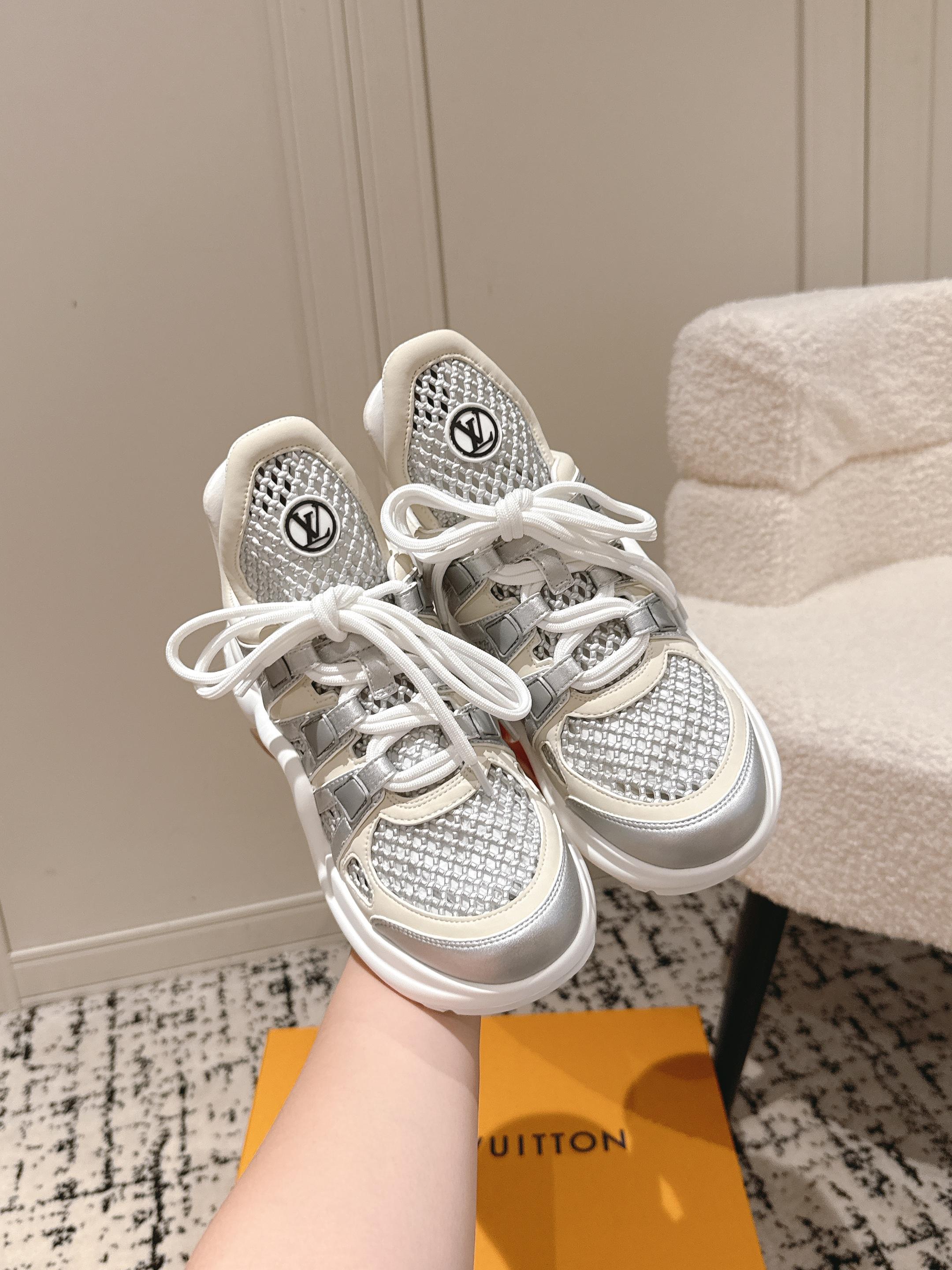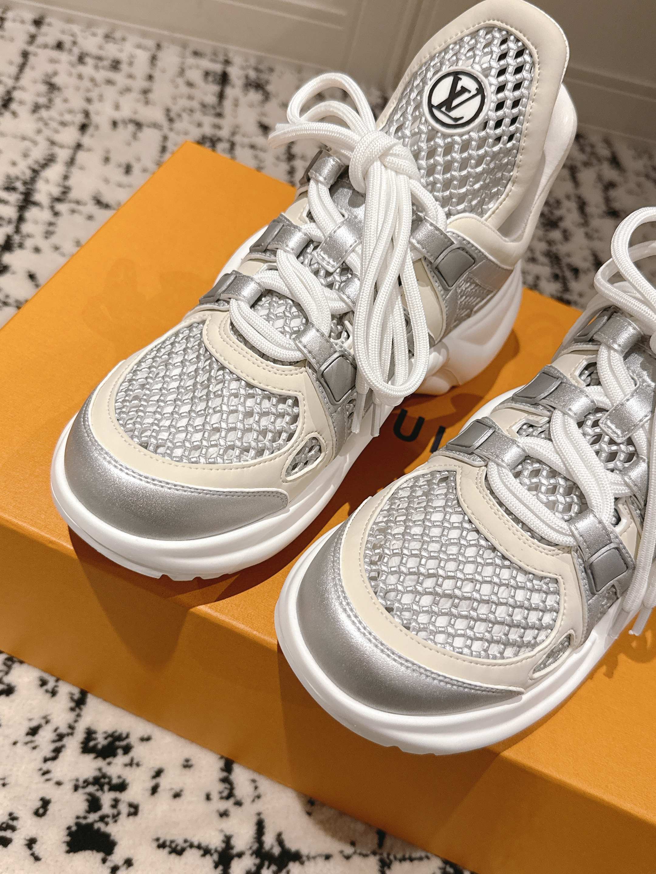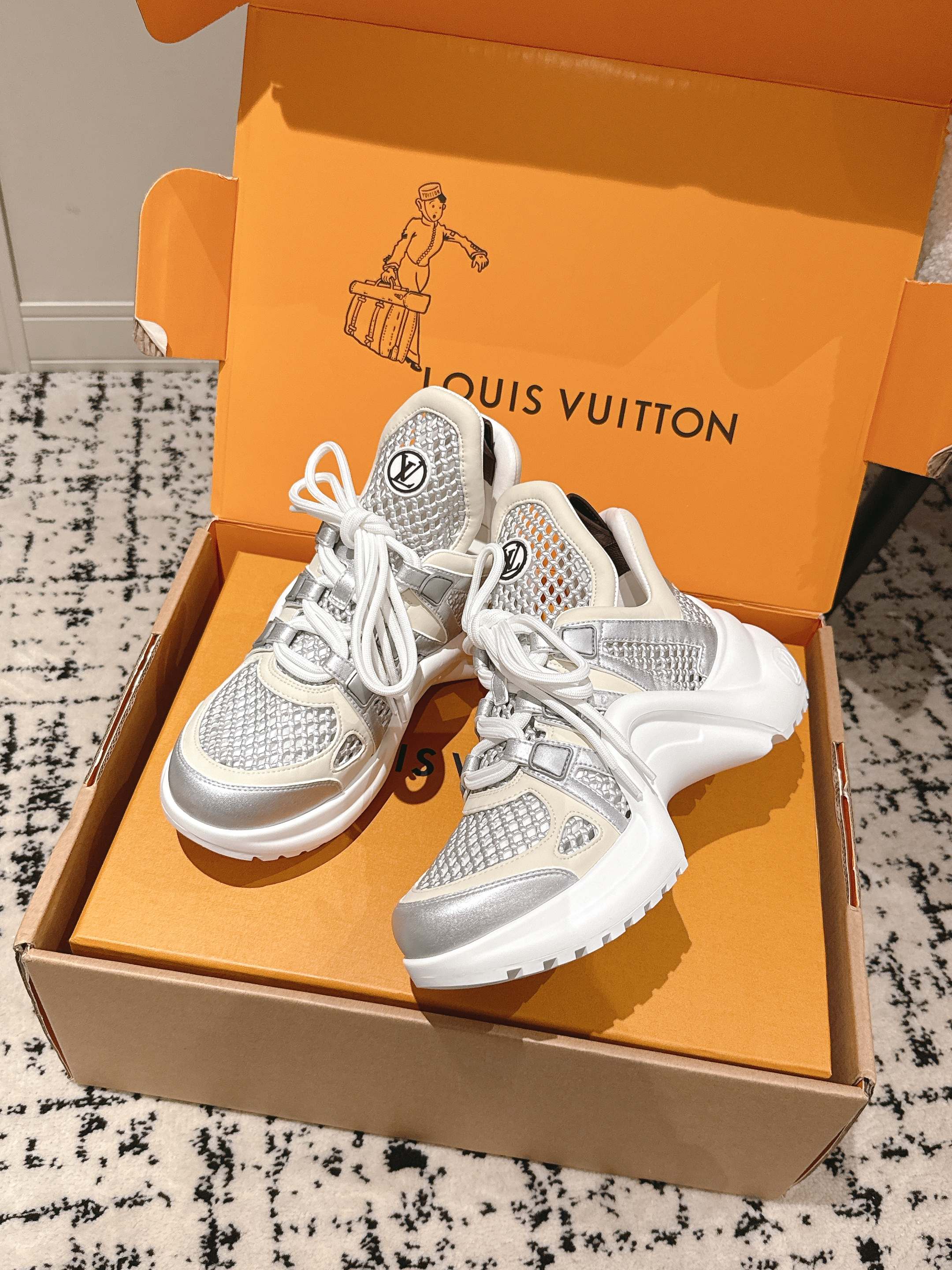 这款鞋子是AAAAA 1:1 质量 (非常棒). 使用了和原版一模一样的材料. 商标部分也保持了和路易威登/Louis Vuitton一样. 图片拍摄是实物鞋子拍摄, 您所收到的实物保证和我们图片一模一样.