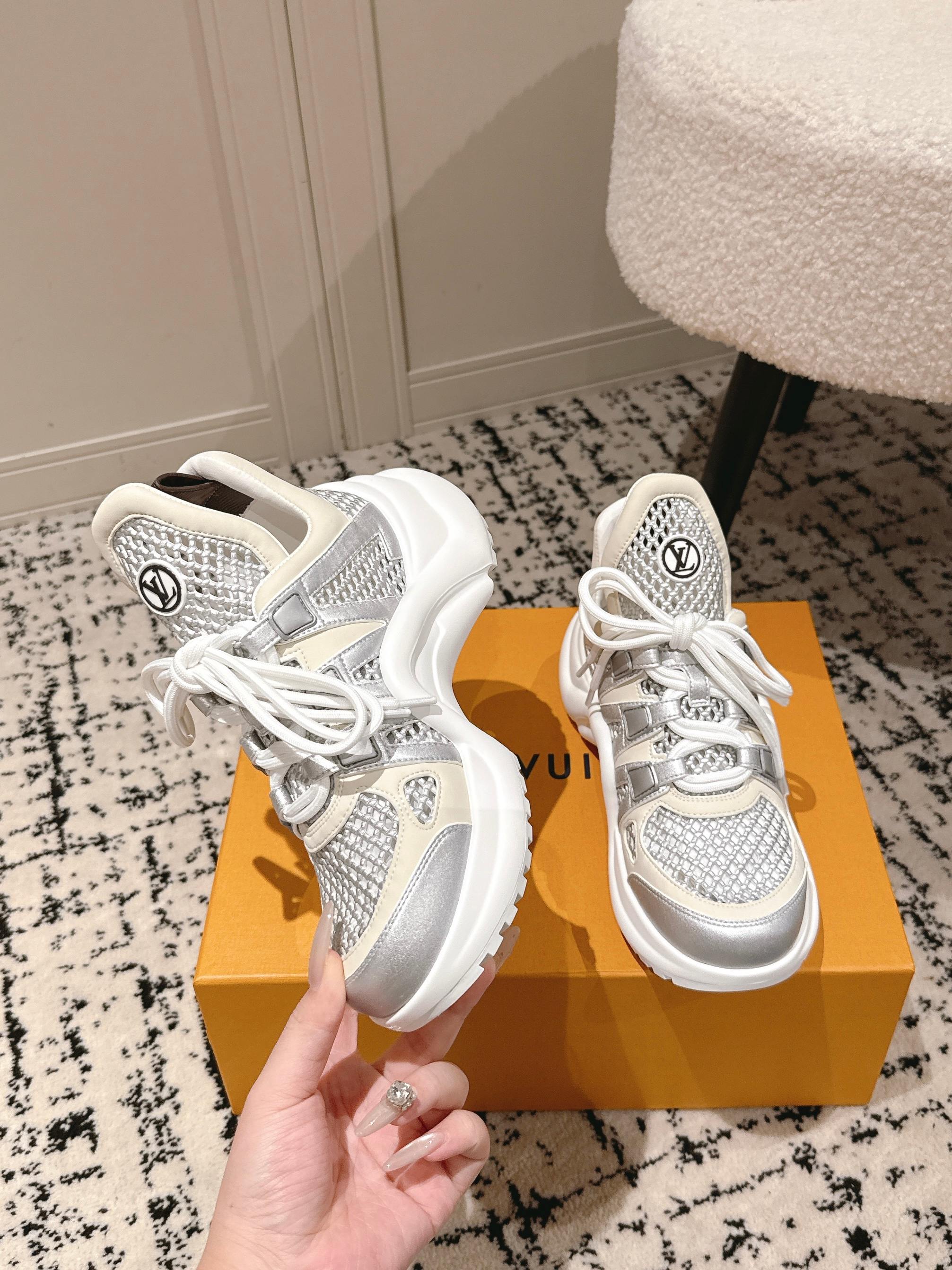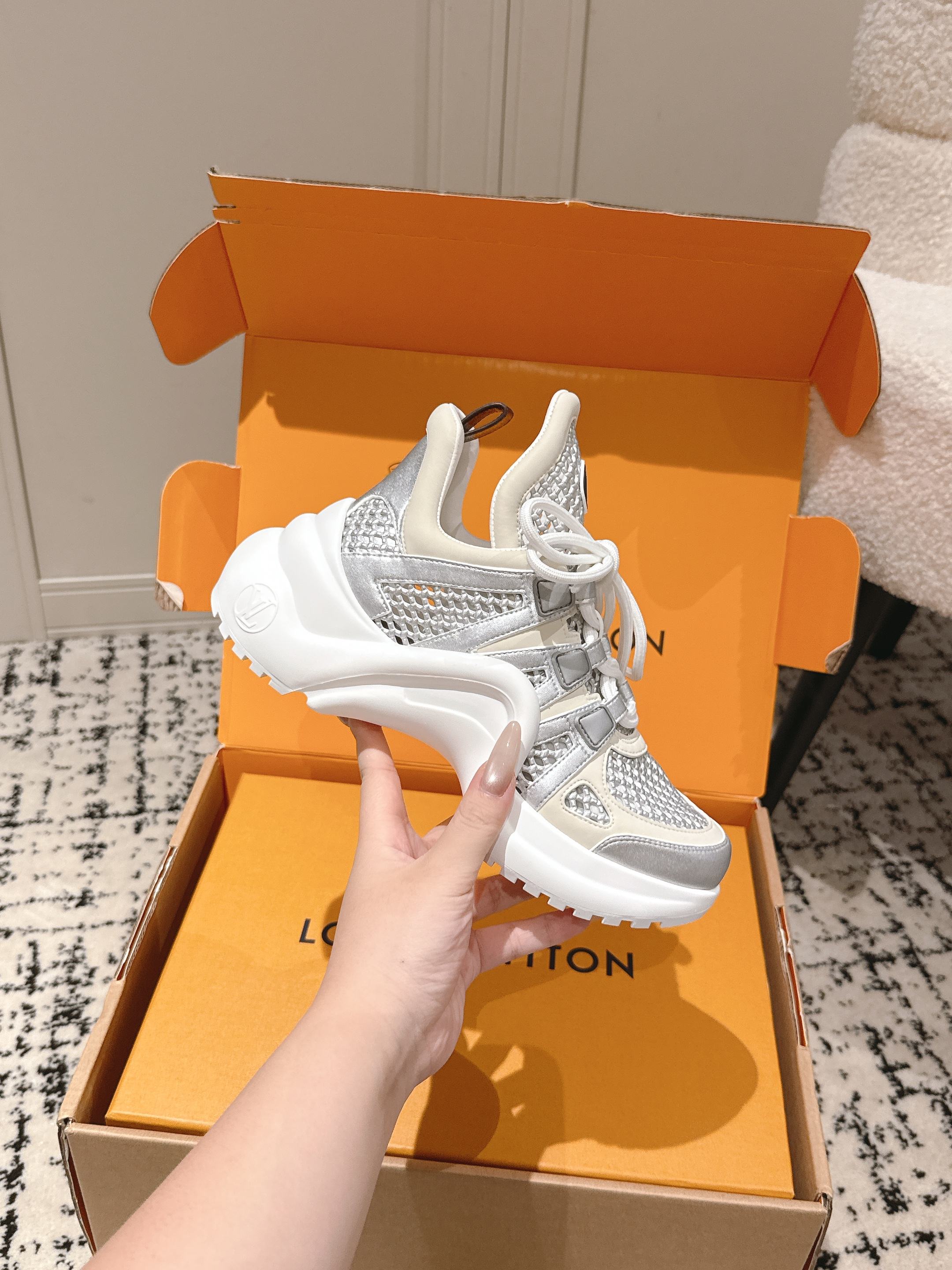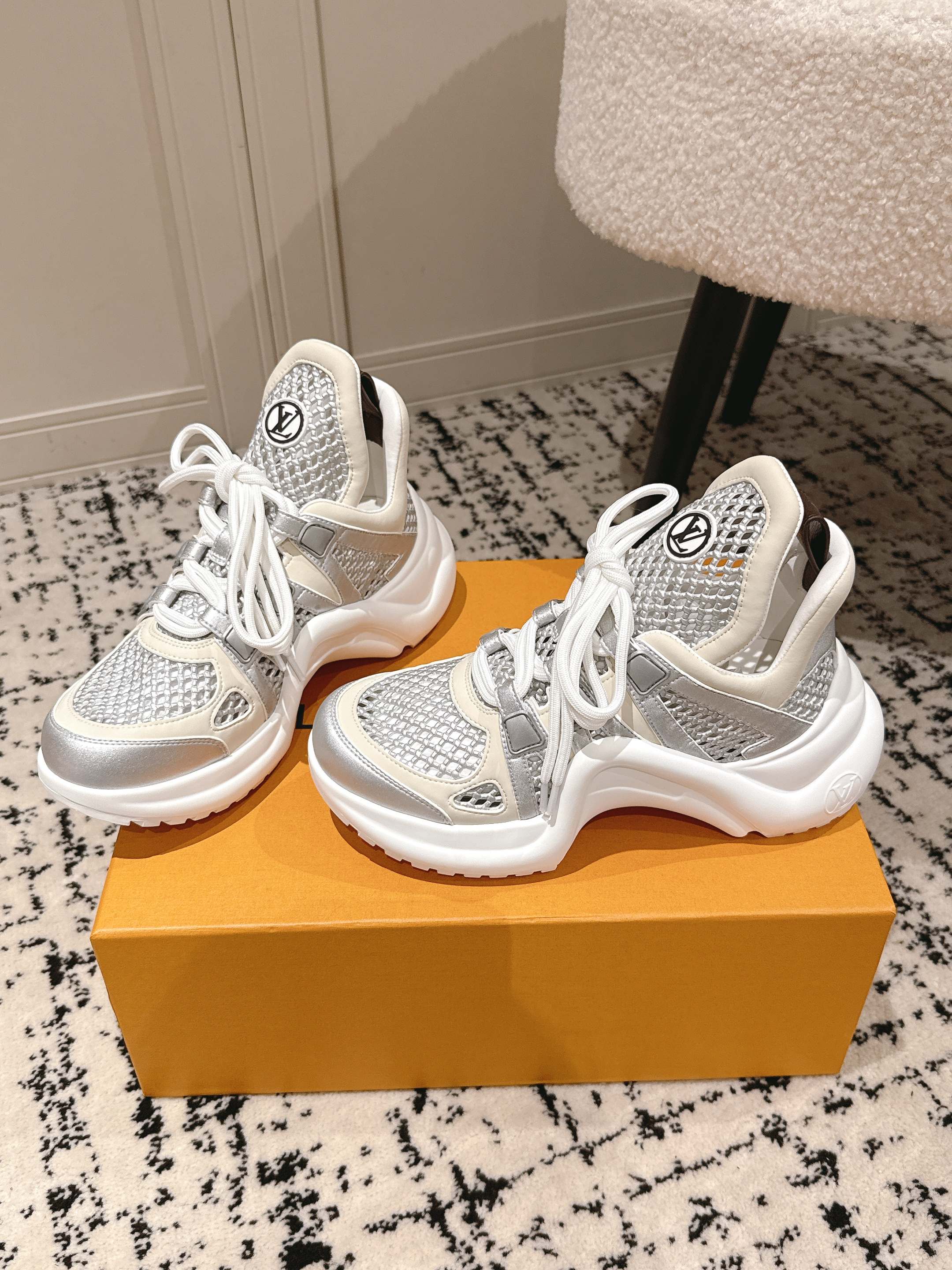 这款鞋子是AAAAA 1:1 质量 (非常棒). 使用了和原版一模一样的材料. 商标部分也保持了和路易威登/Louis Vuitton一样. 图片拍摄是实物鞋子拍摄, 您所收到的实物保证和我们图片一模一样.