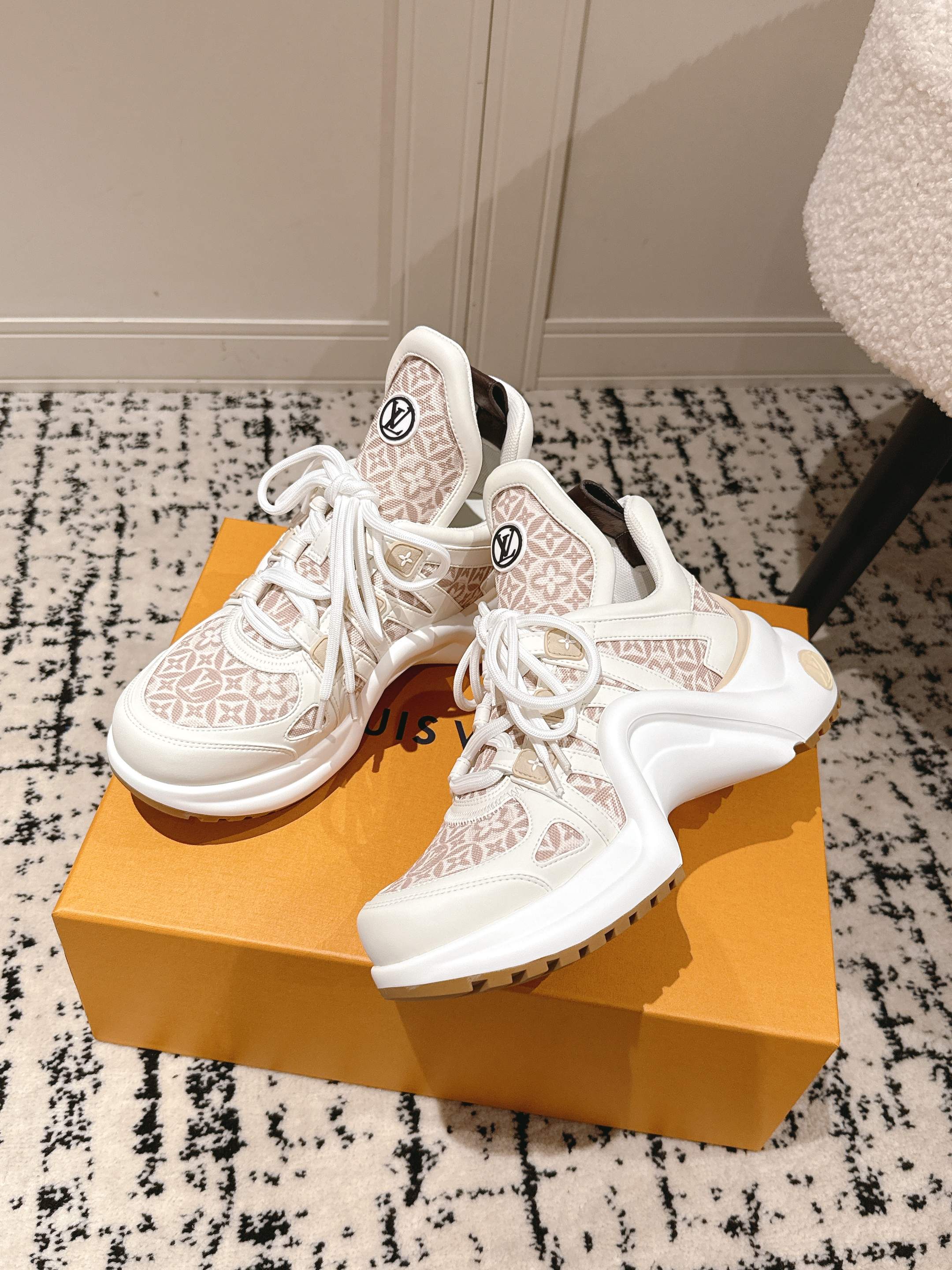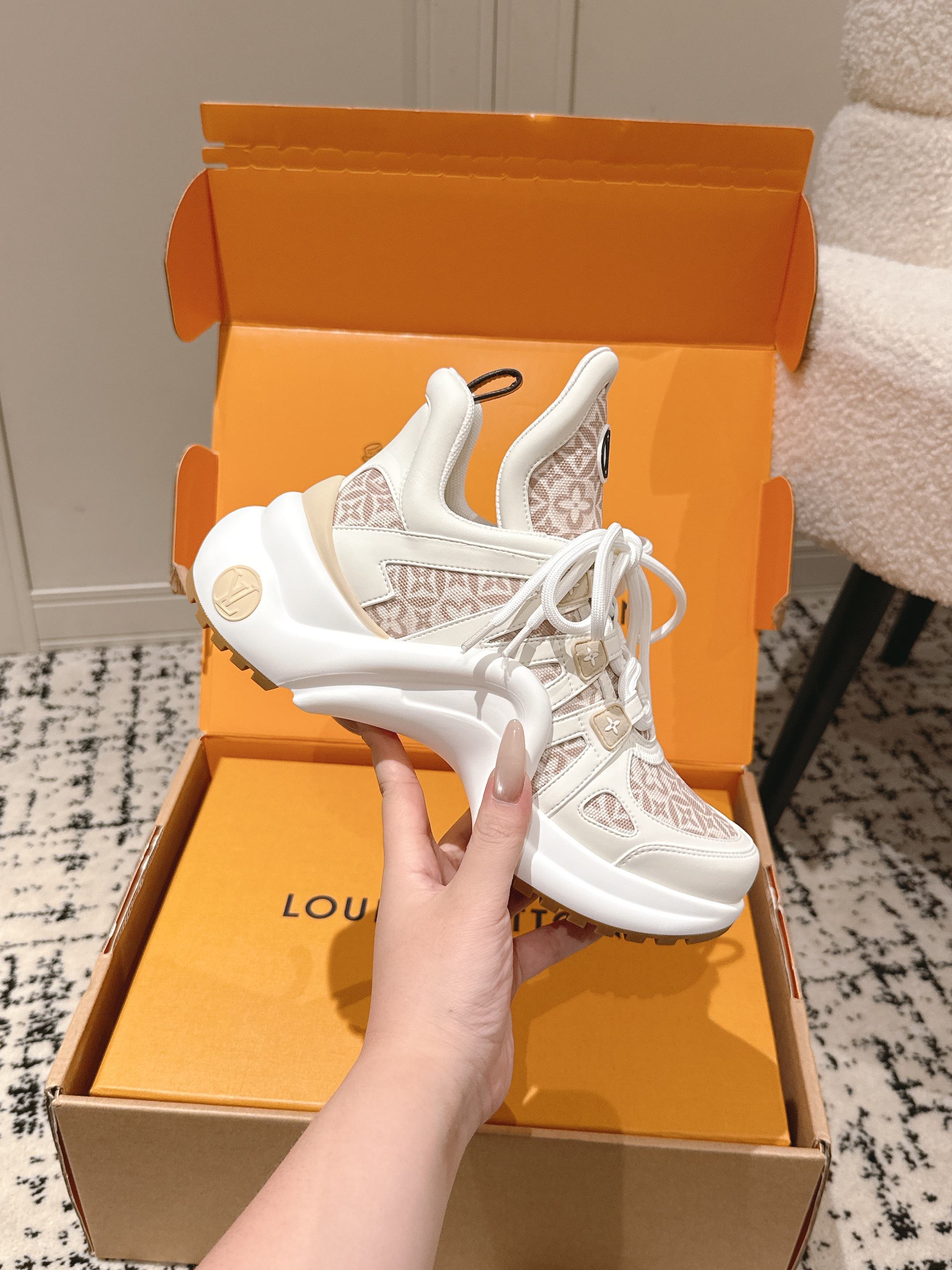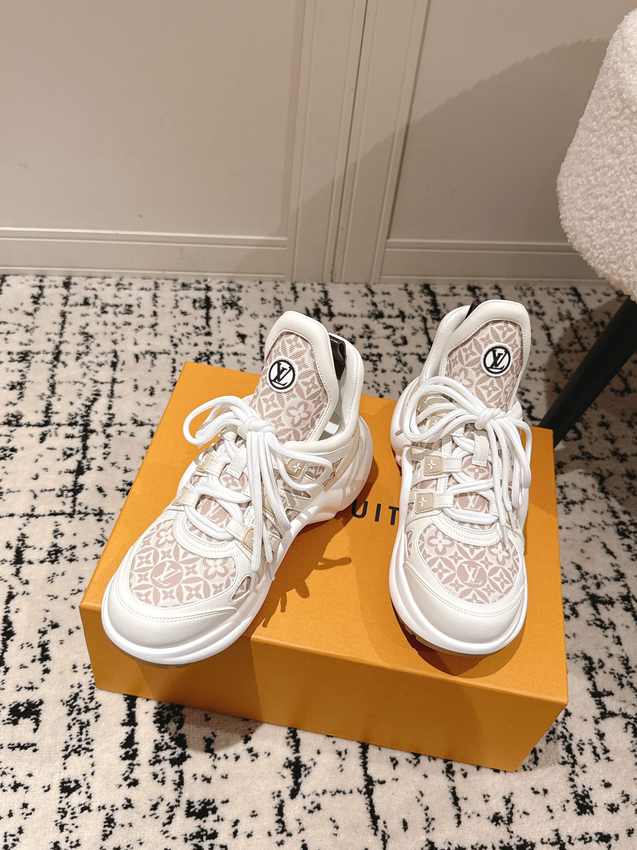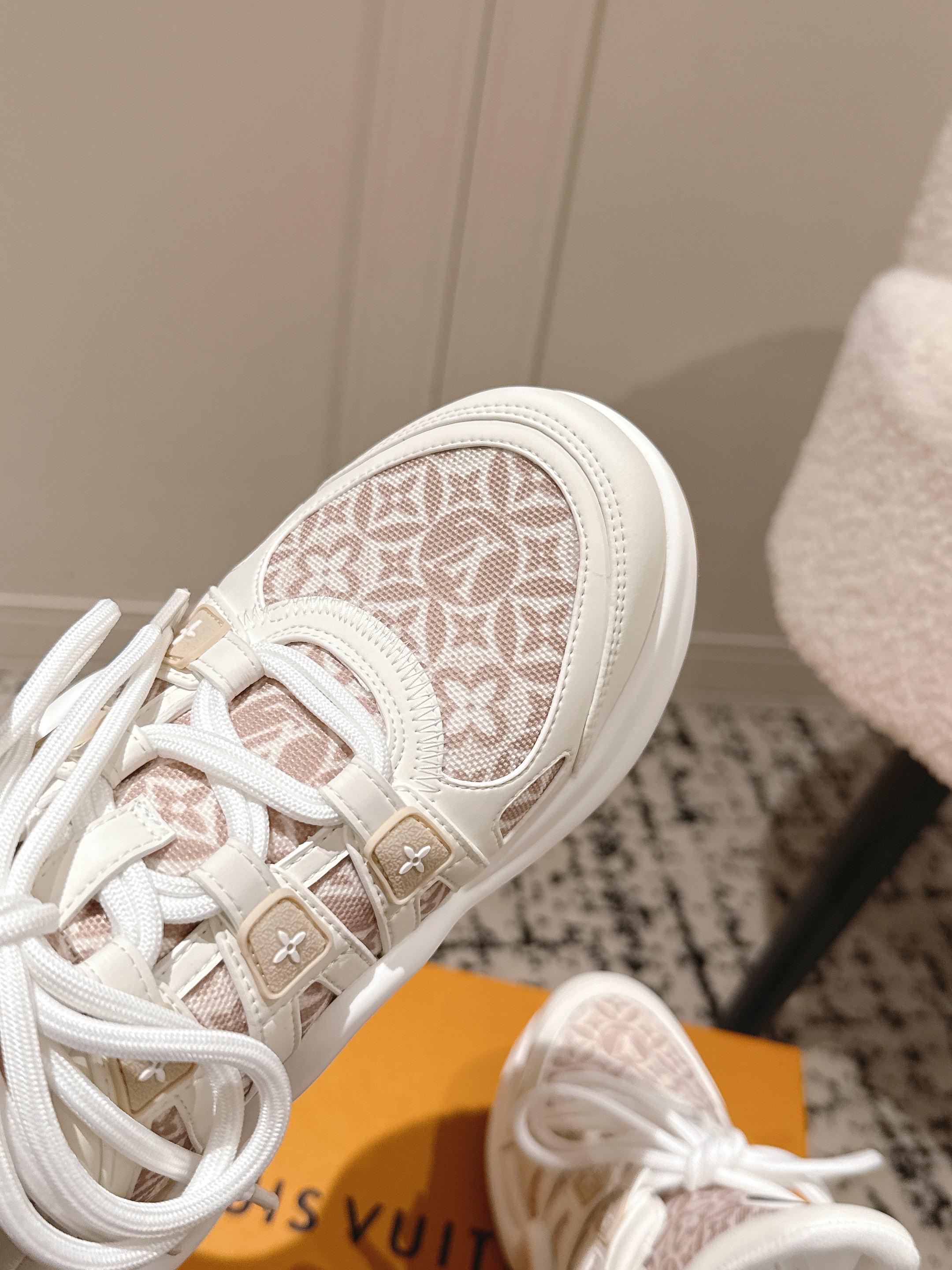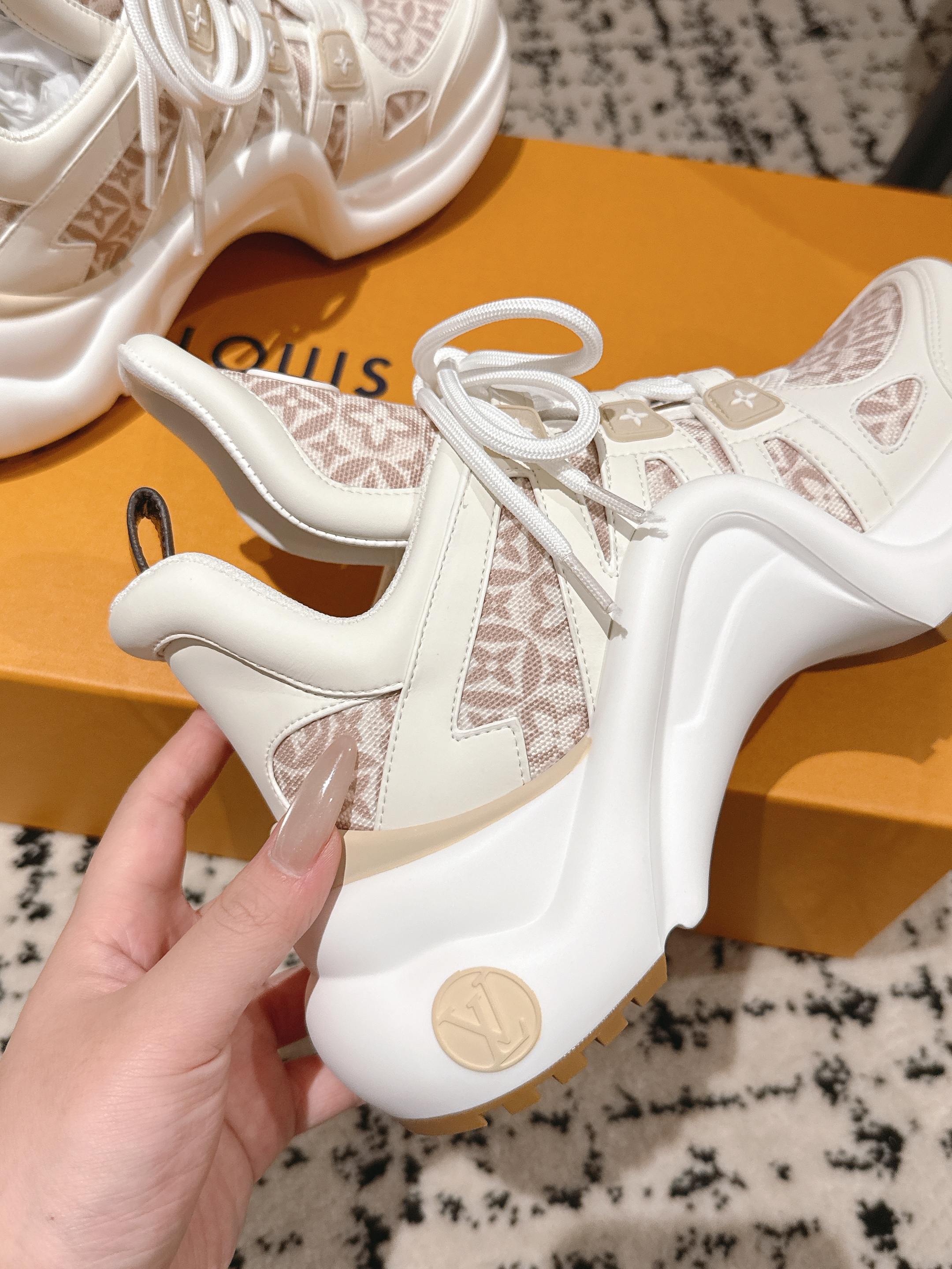 这款鞋子是AAAAA 1:1 质量 (非常棒). 使用了和原版一模一样的材料. 商标部分也保持了和路易威登/Louis Vuitton一样. 图片拍摄是实物鞋子拍摄, 您所收到的实物保证和我们图片一模一样.