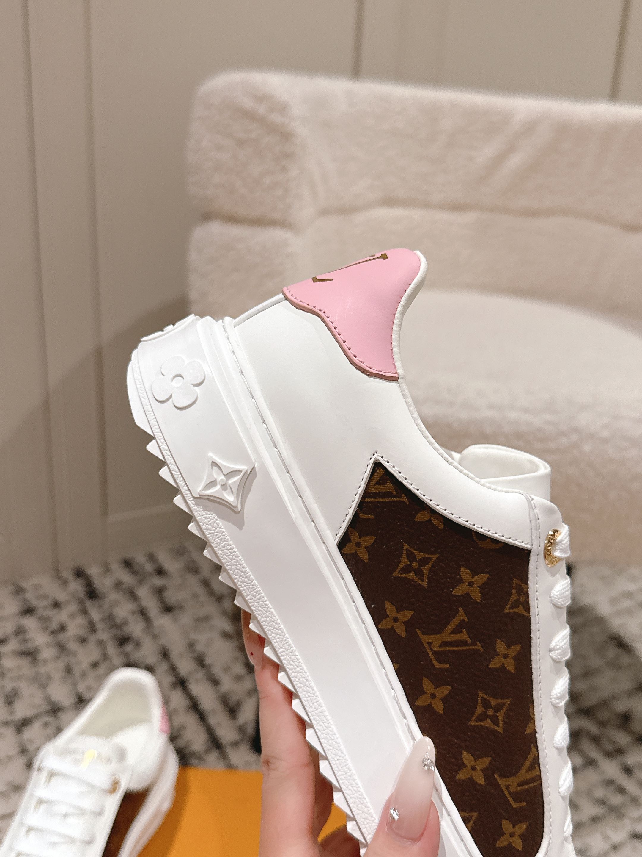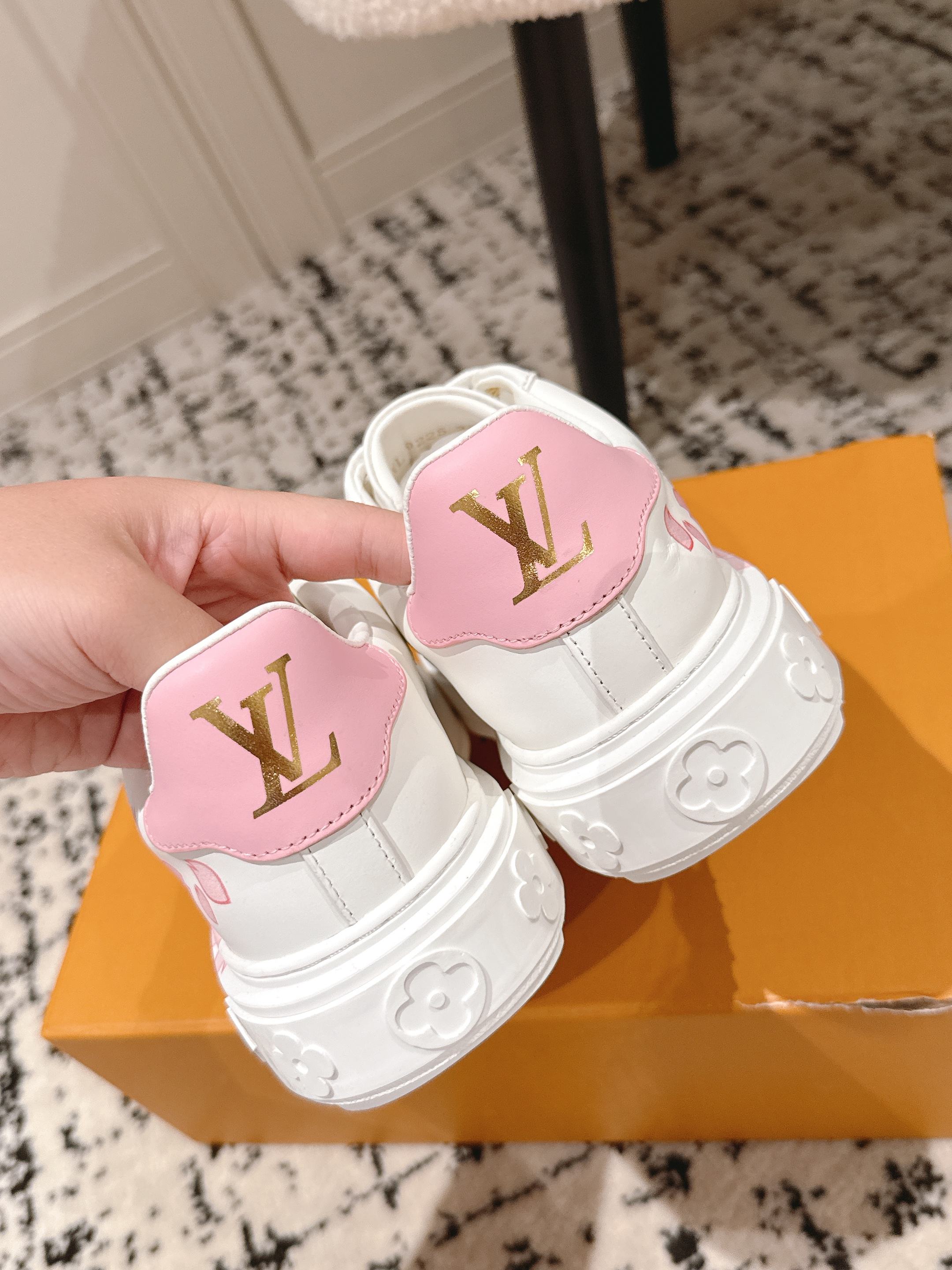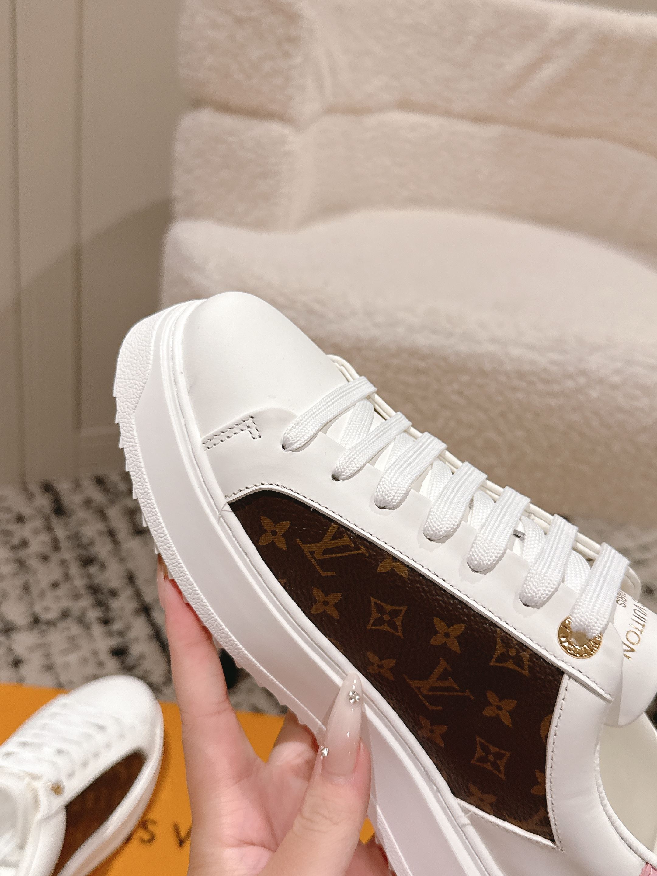 这款鞋子是AAAAA 1:1 质量 (非常棒). 使用了和原版一模一样的材料. 商标部分也保持了和路易威登/Louis Vuitton一样. 图片拍摄是实物鞋子拍摄, 您所收到的实物保证和我们图片一模一样.